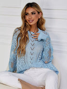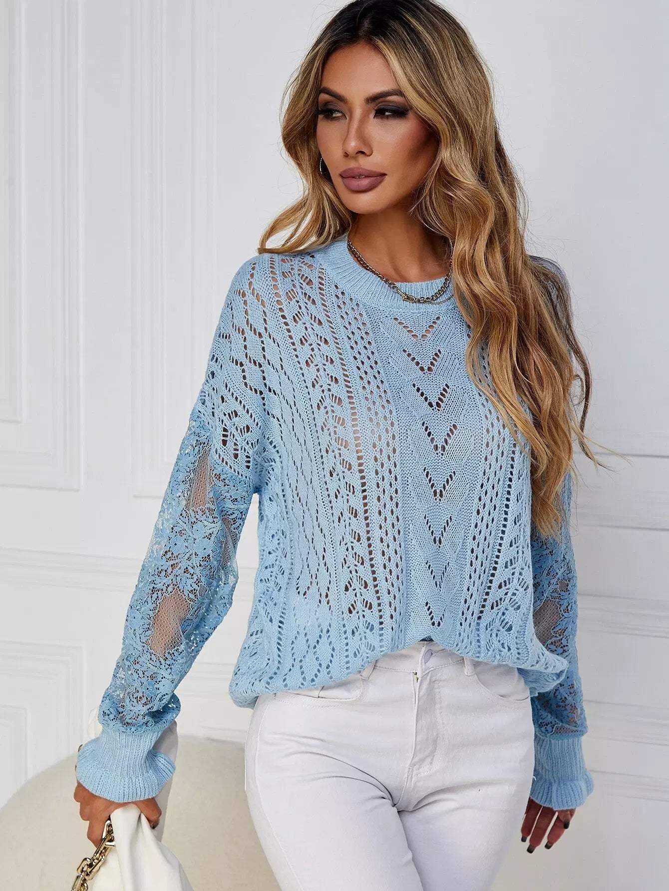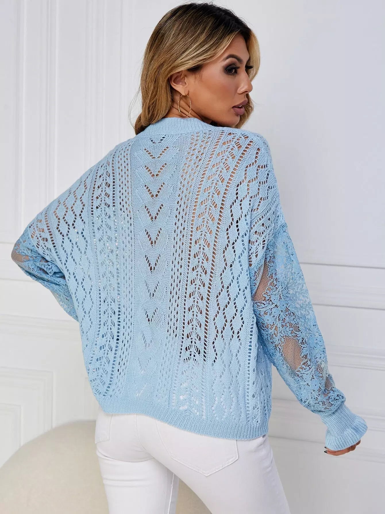سترة منسدلة الأكتاف محبوكة من الدانتيل بلون مغاير من الدانتيل