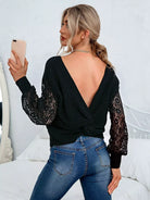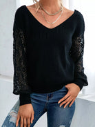 كنزة بياقة على شكل V دانتيل بلون مغاير