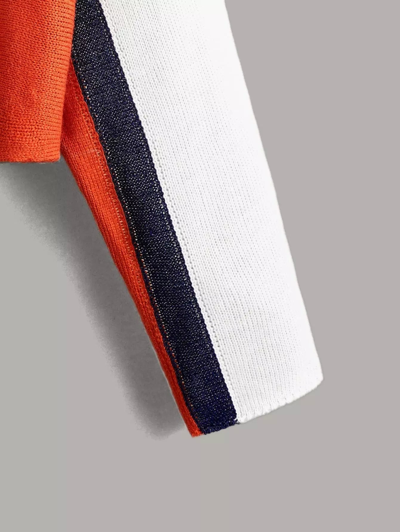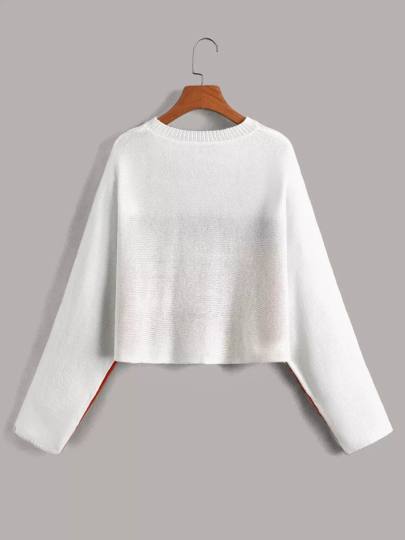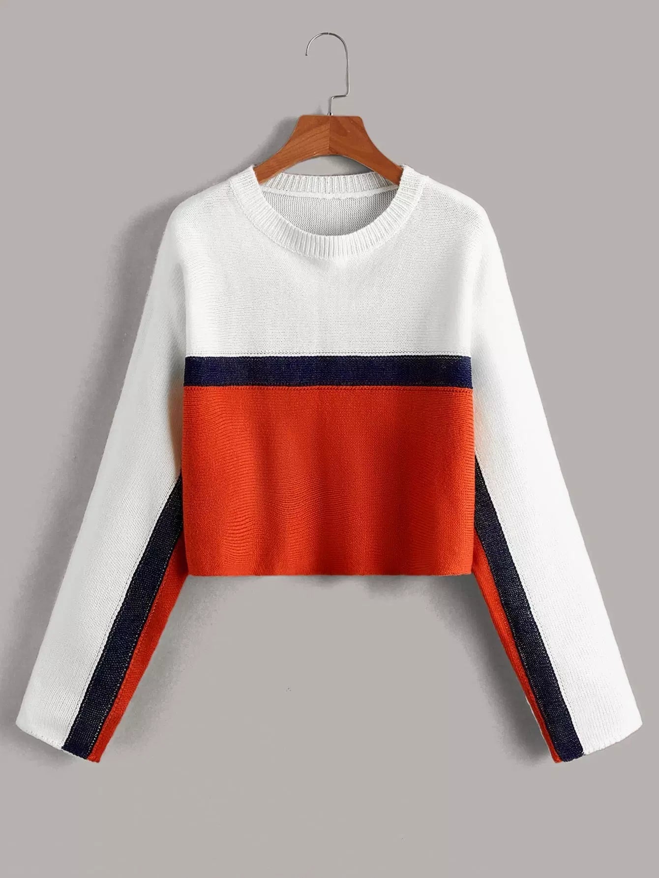 للنساء - سترة بياقة دائرية ولوحة متباينة