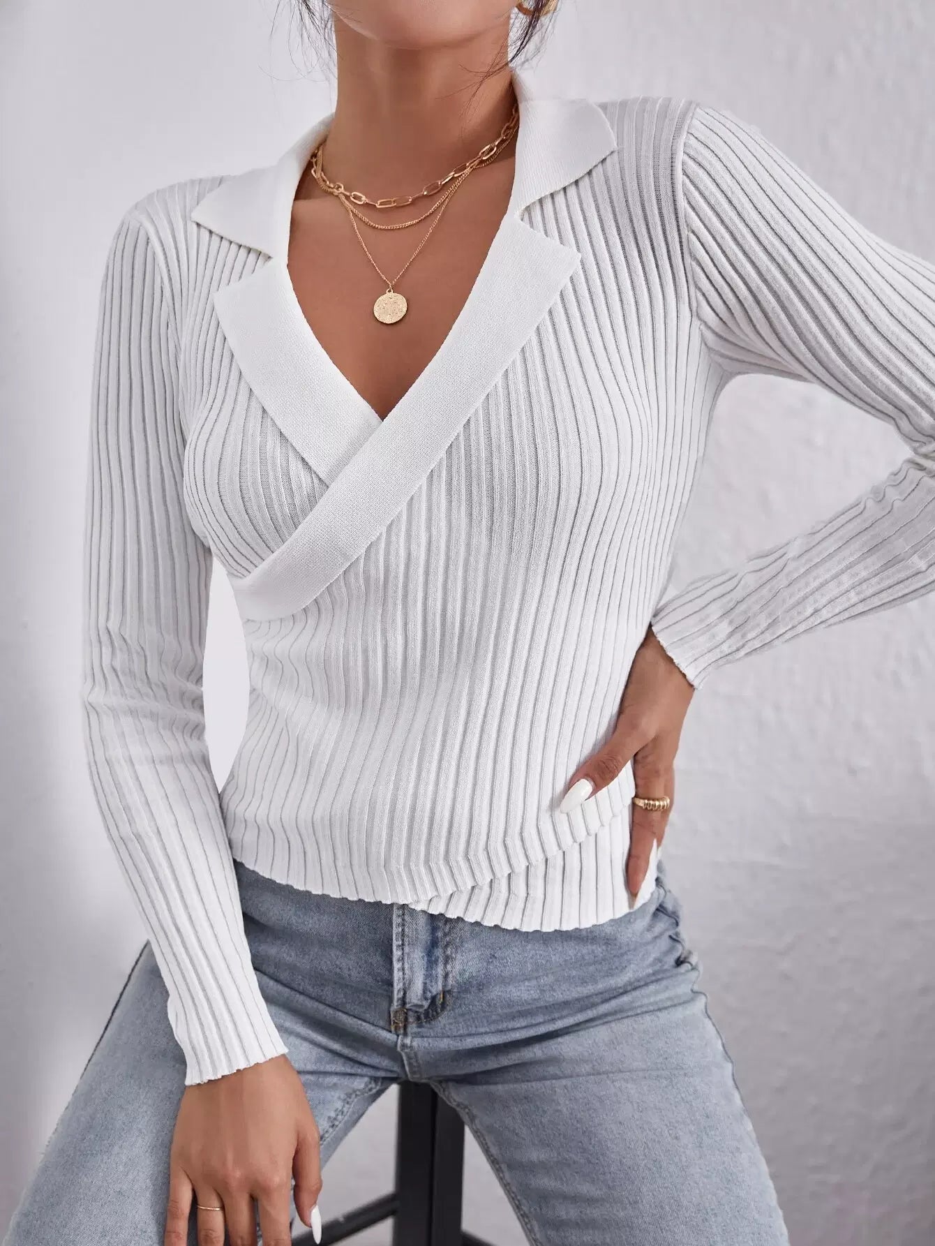 سترة محبوكة مضلعة مضلعة على شكل لفات متقاطعة