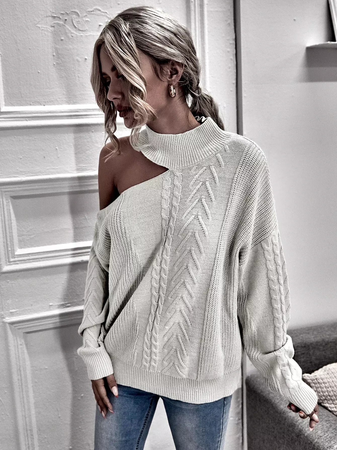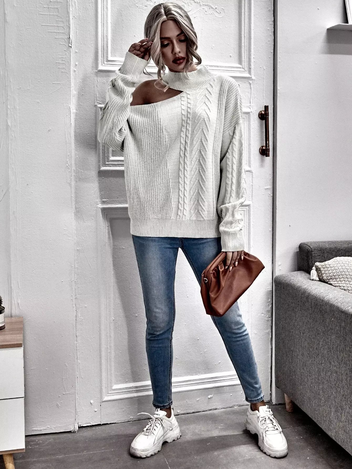 سترة كابل محبوكة بفتحة كتف مقطوعة