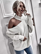 للنساء - سترة متماسكة ذات كتف مكشوف