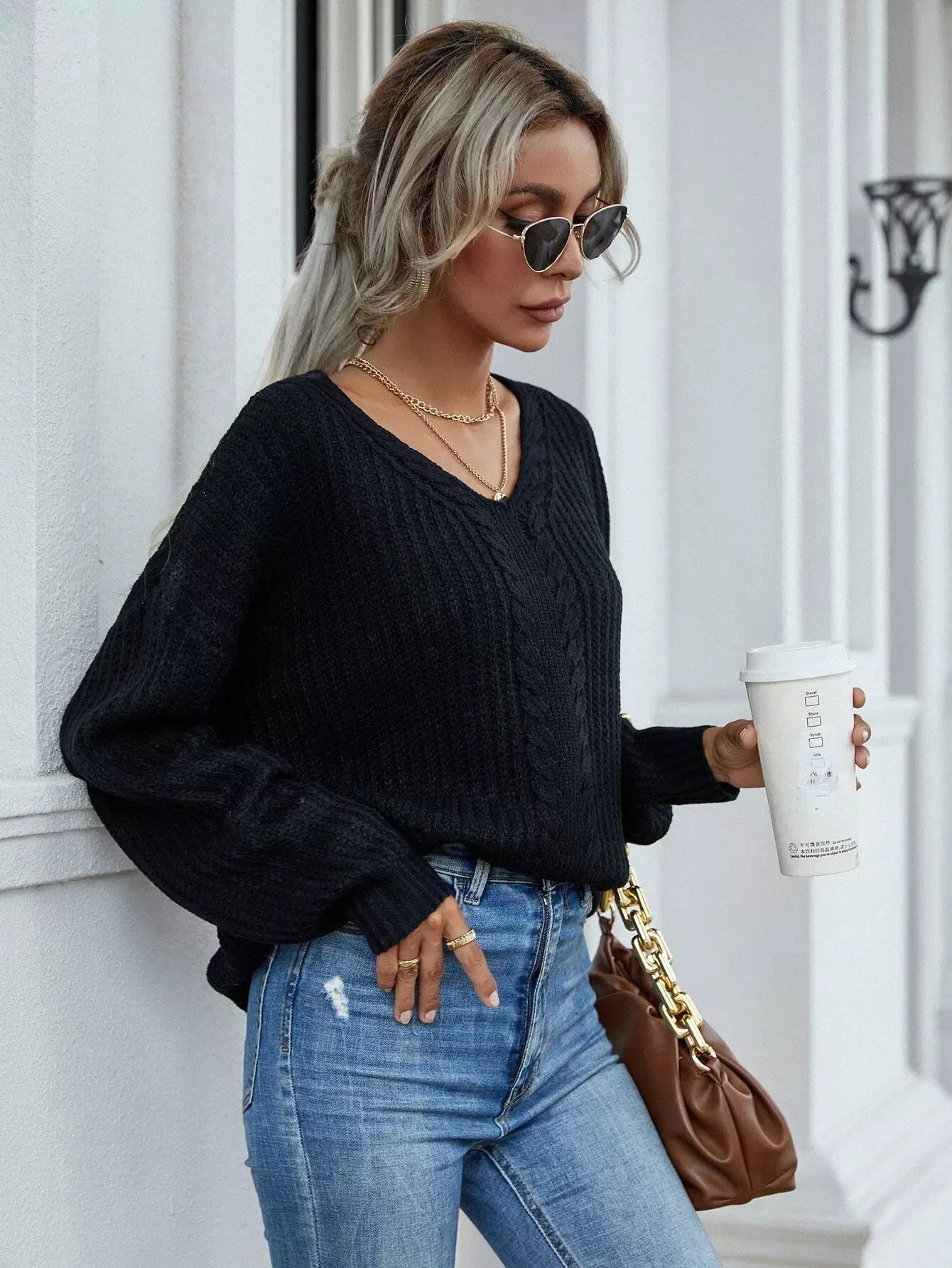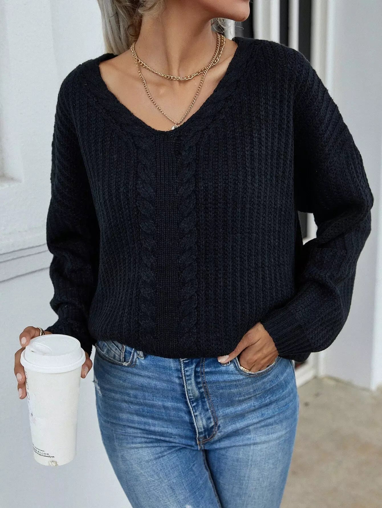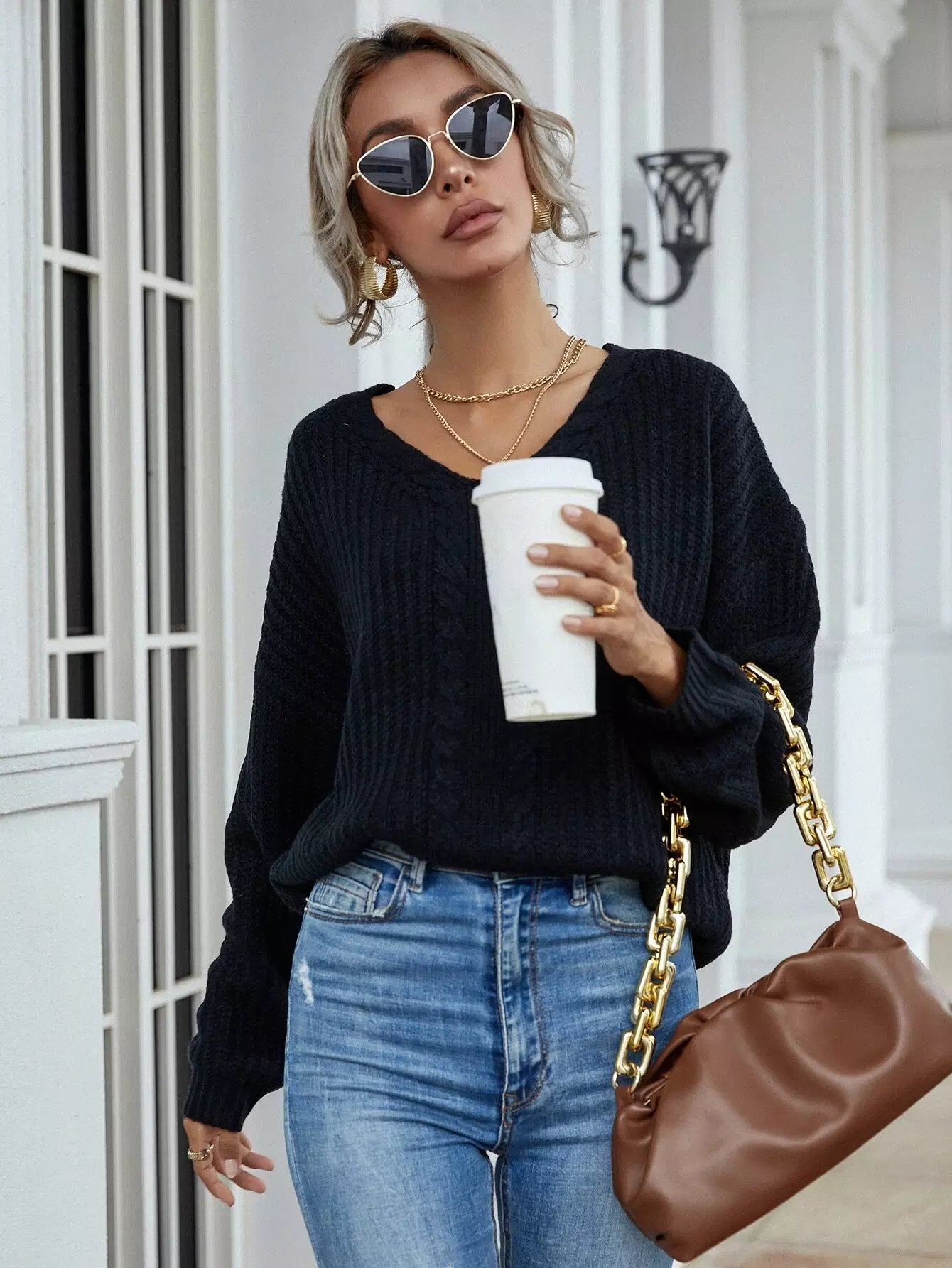 كنزة منسدلة الكتفين محبوكة بكابل محبوكة