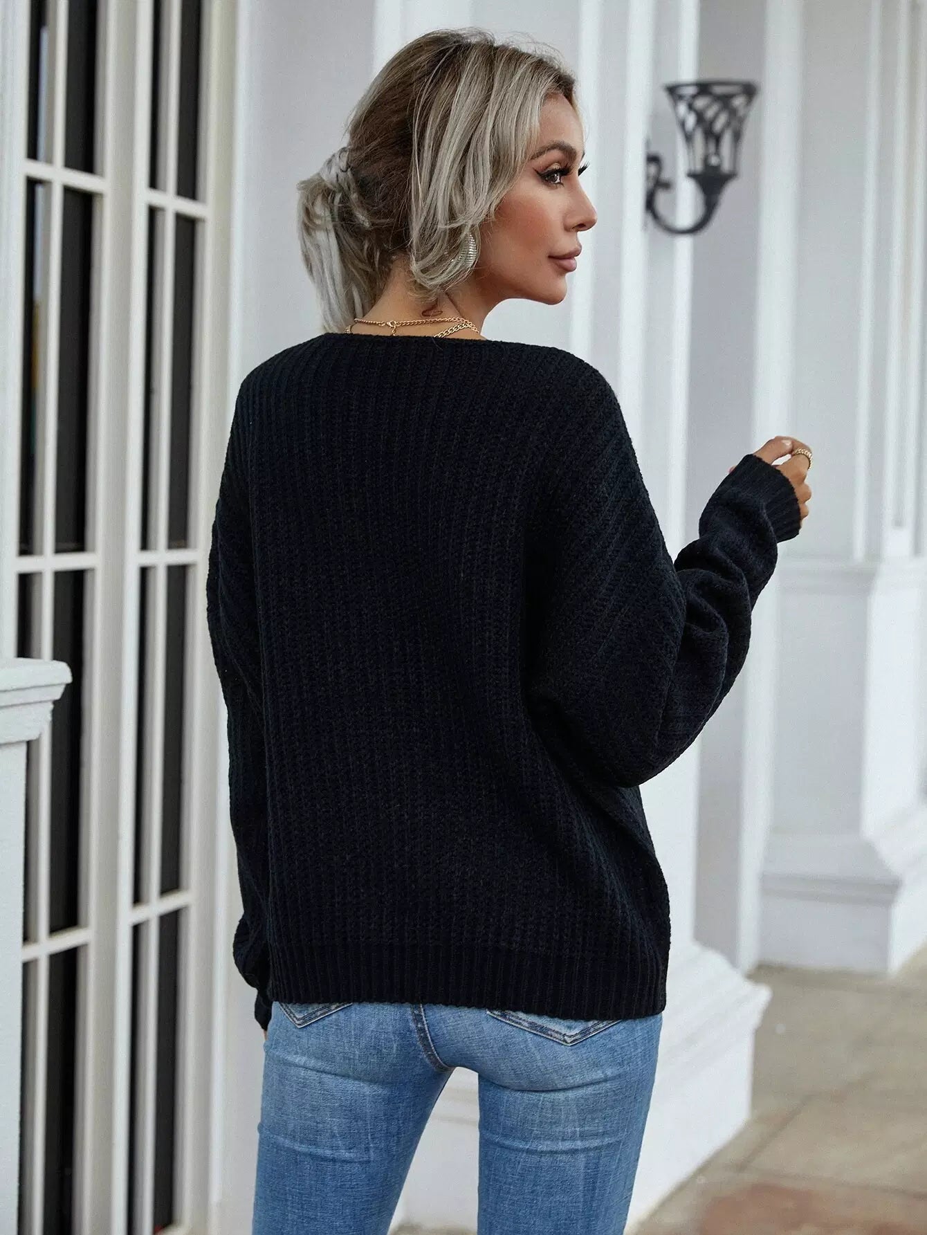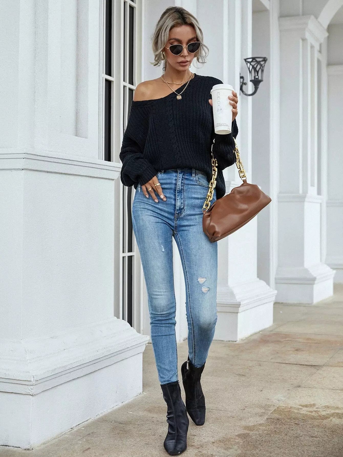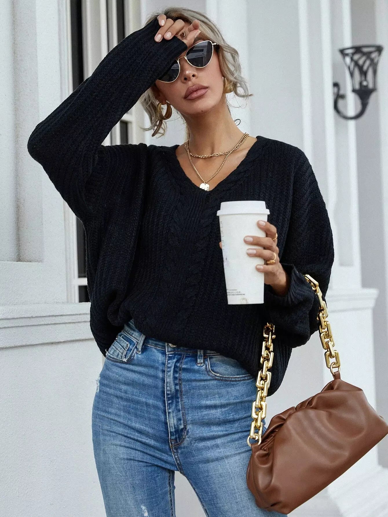 كنزة منسدلة الكتفين محبوكة بكابل محبوكة