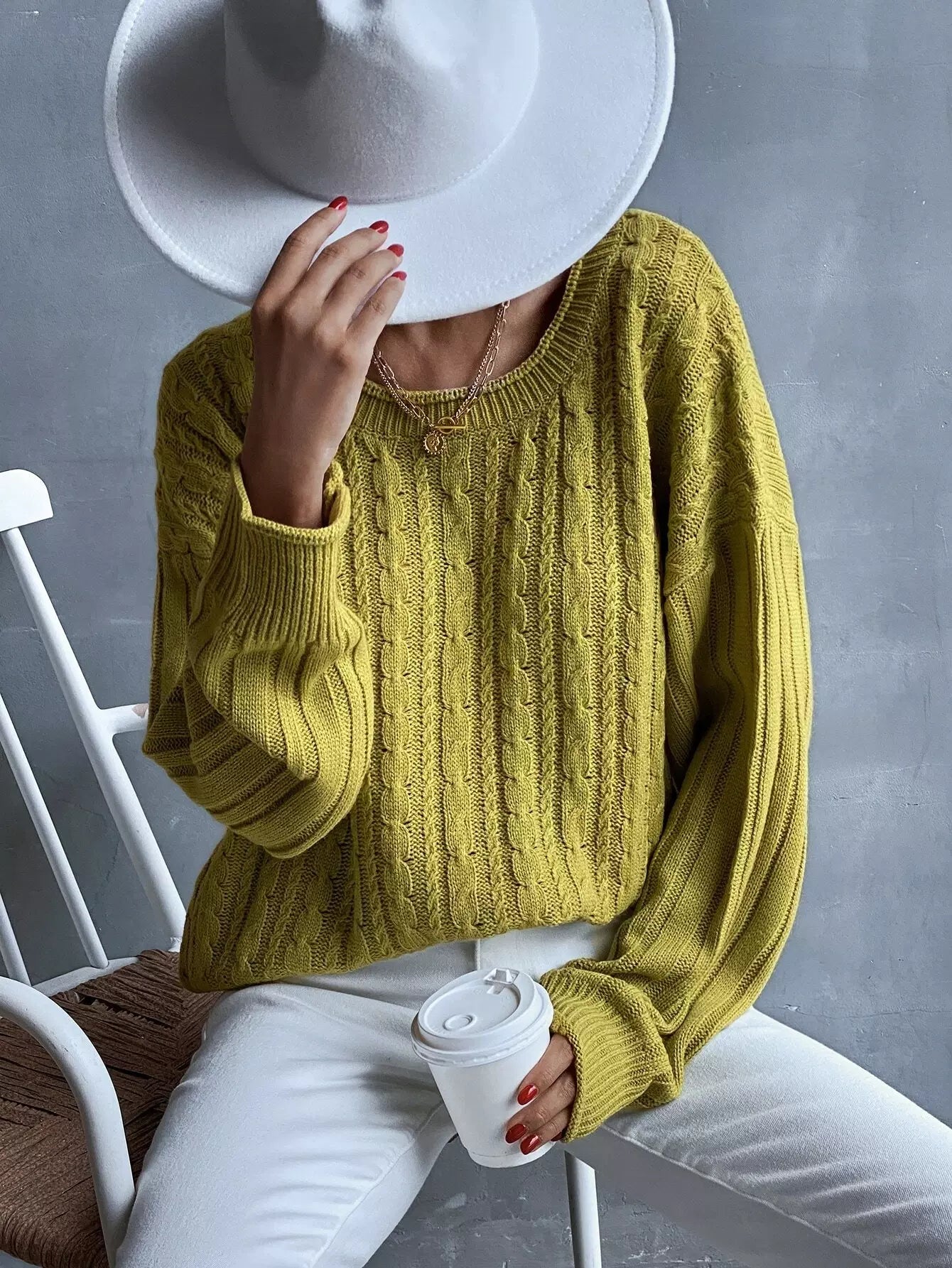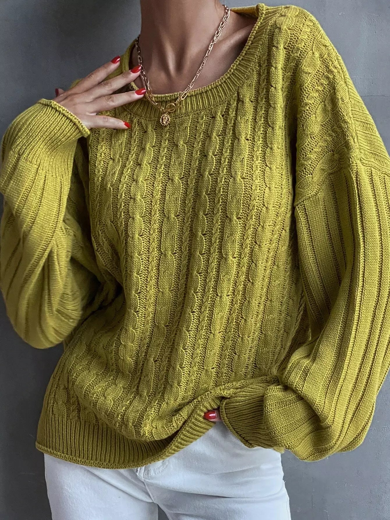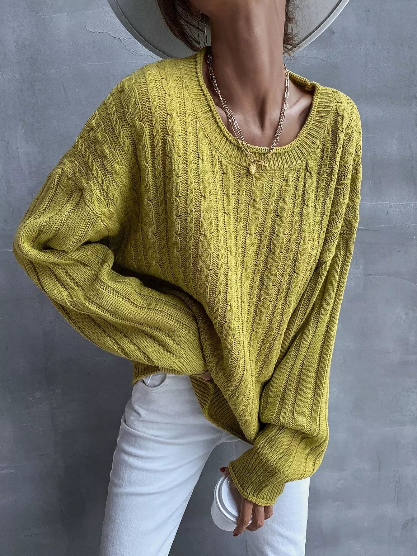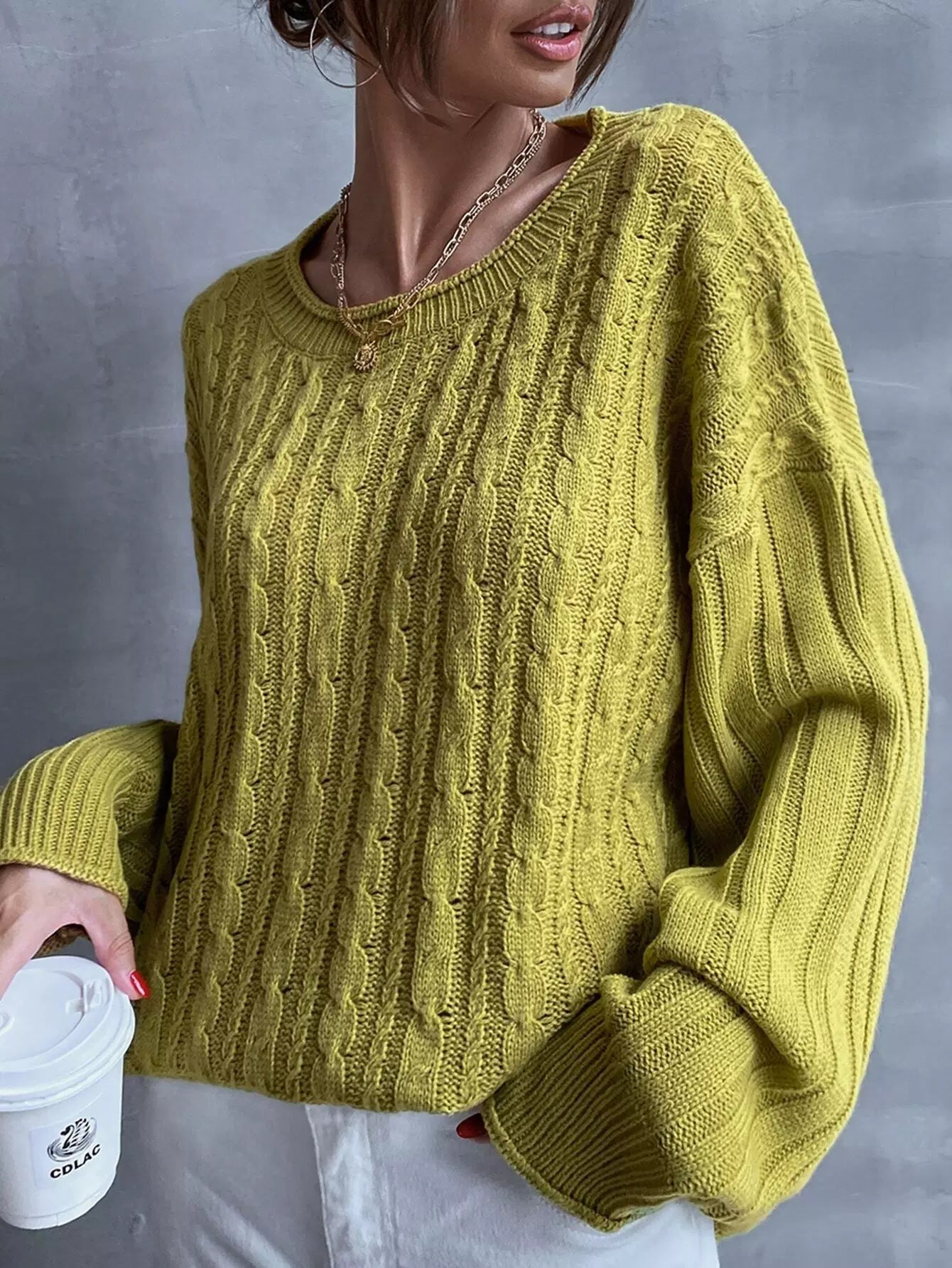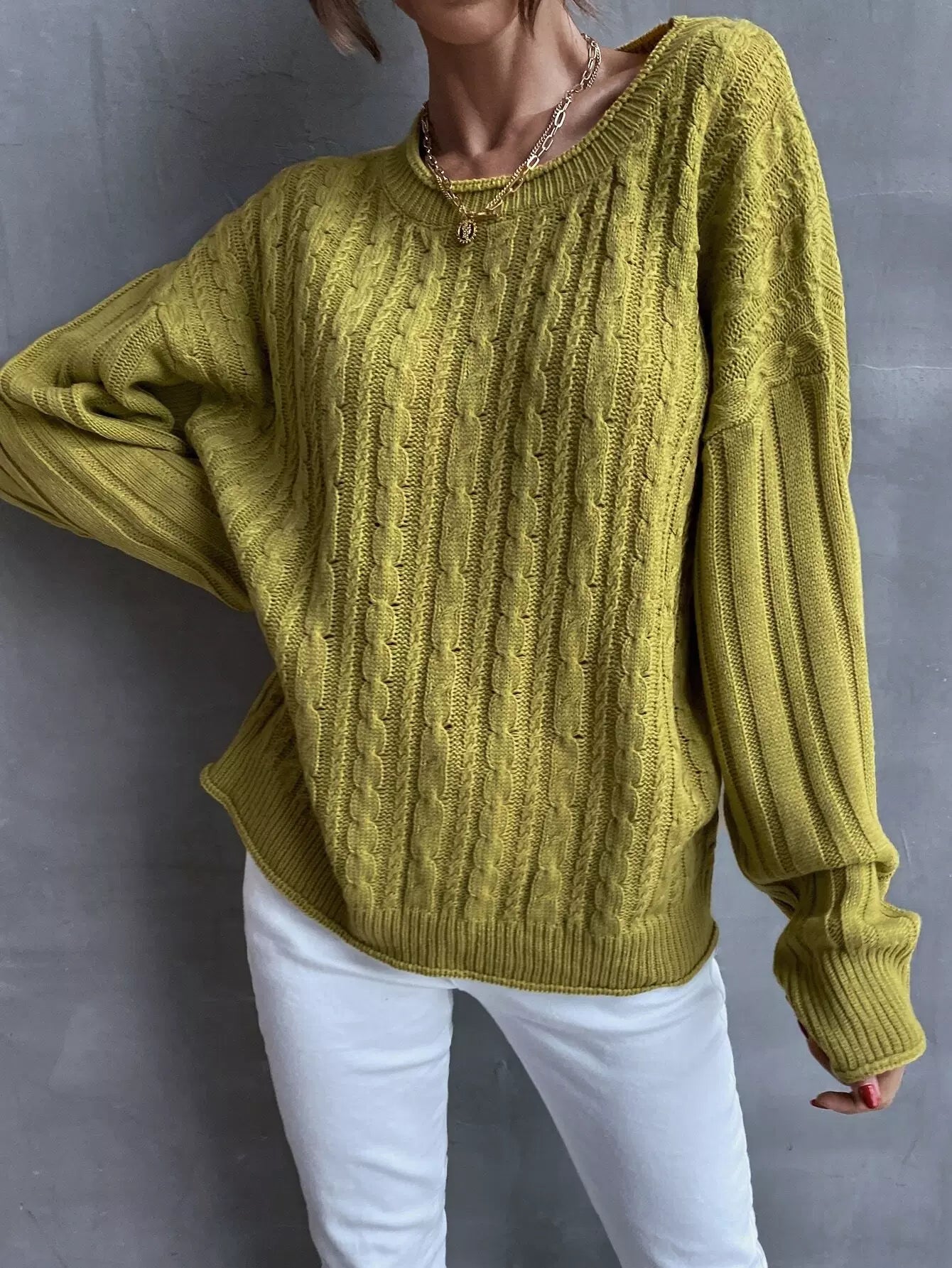 كنزة منسدلة الكتفين محبوكة بكابل محبوكة