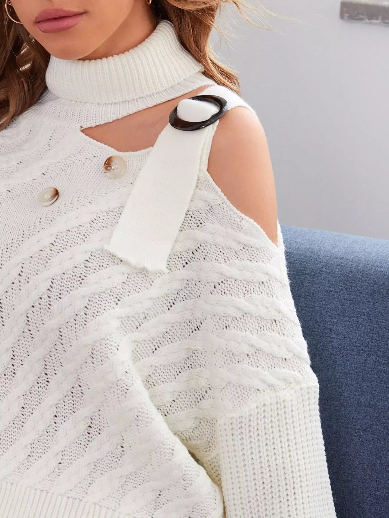 كنزة بكتف منسدلة بفتحة منسدلة على الكتف