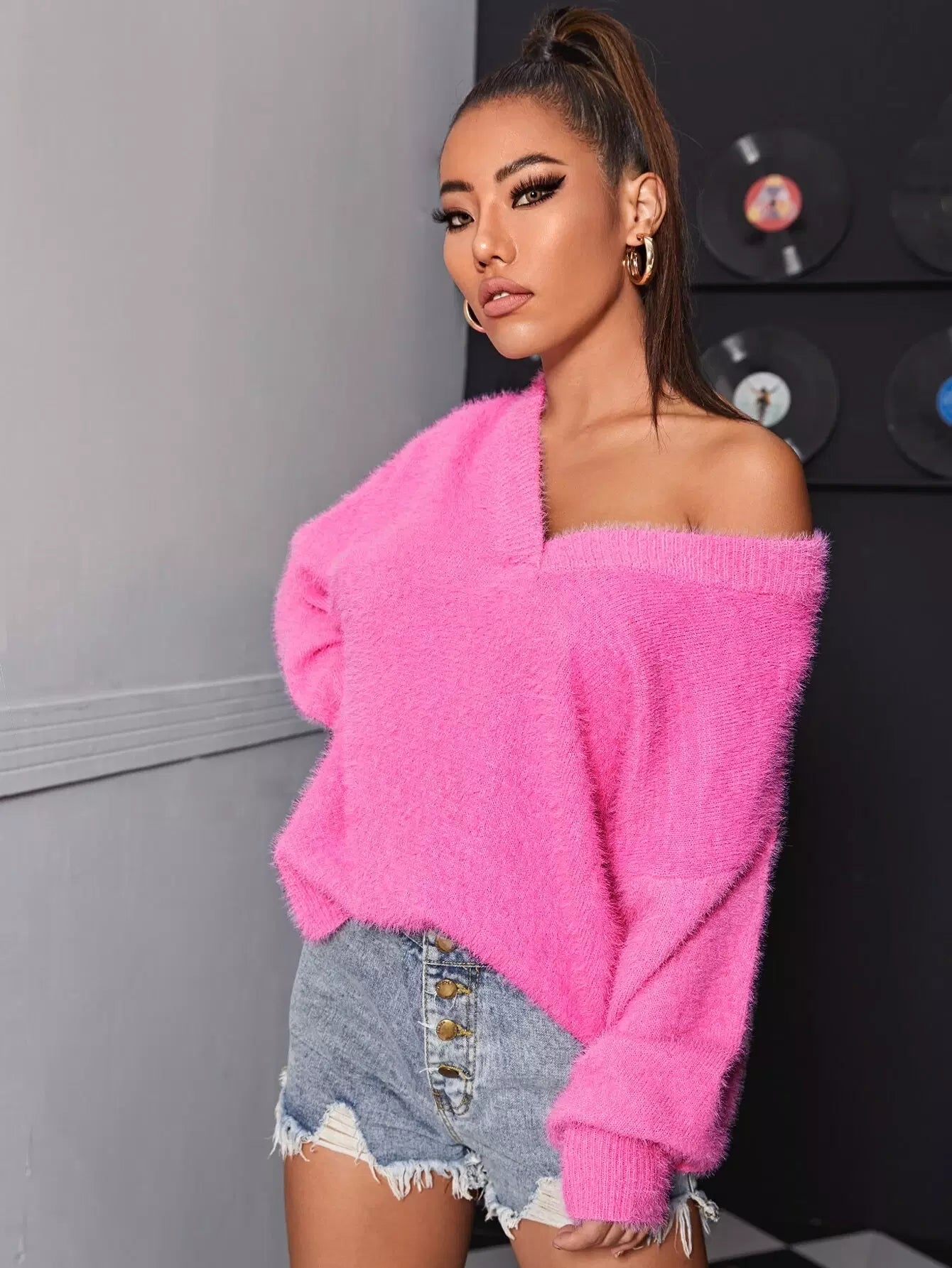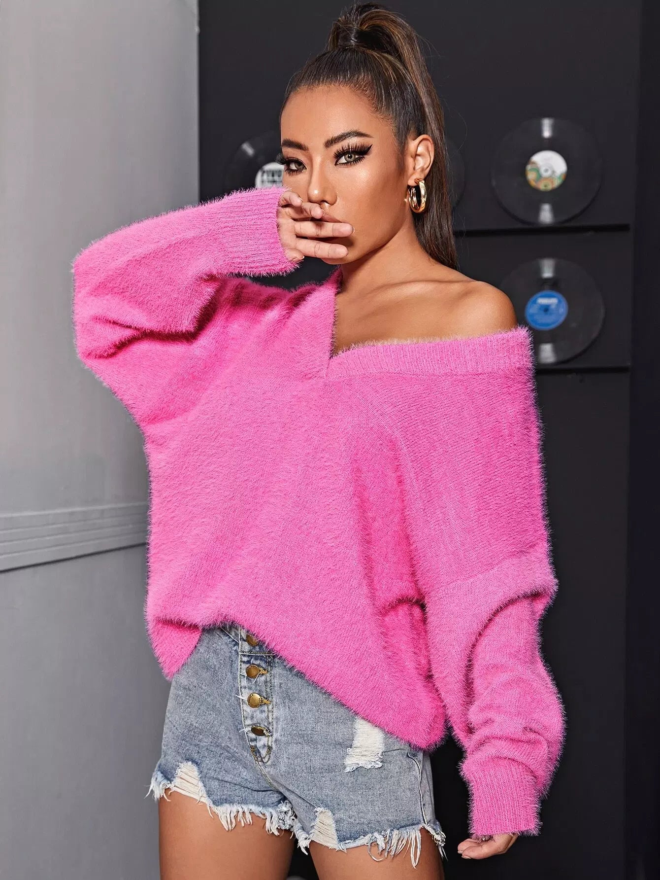 كنزة منسدلة الأكتاف محبوكة ضبابية