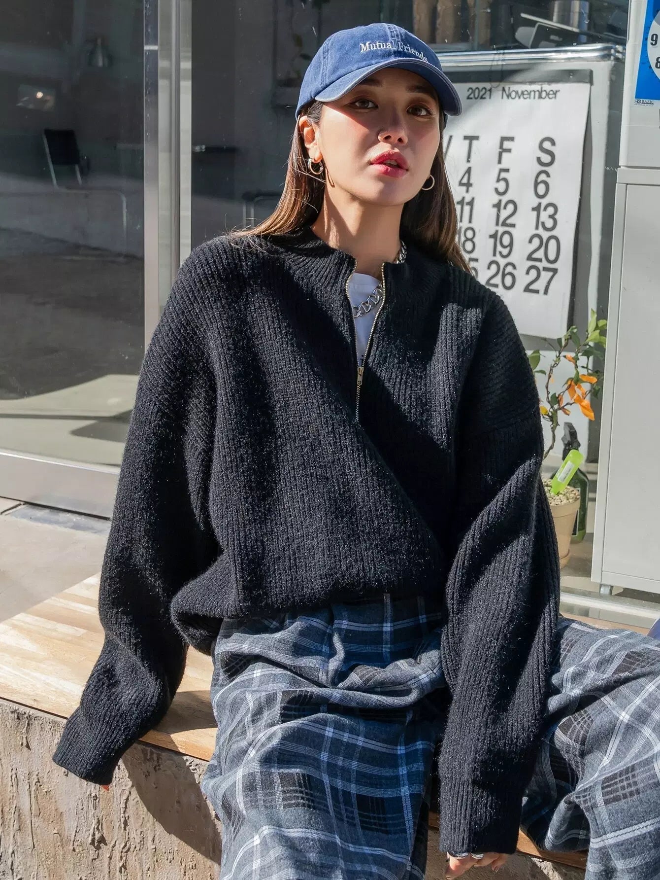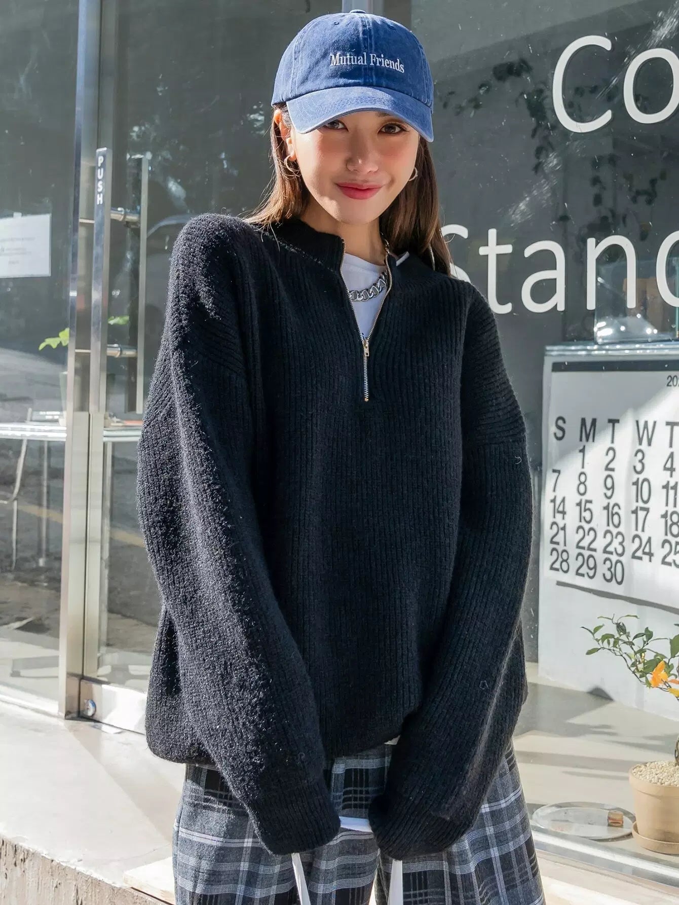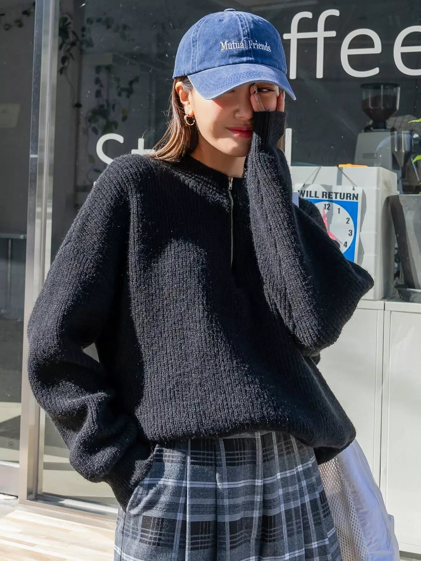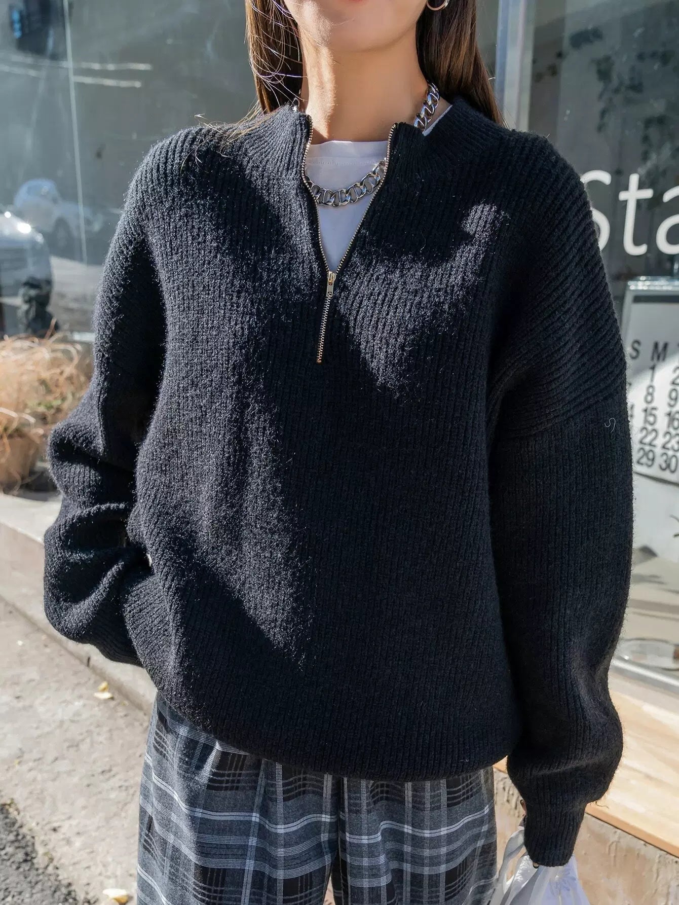 سترة نصف كتف منسدلة بنصف سحاب