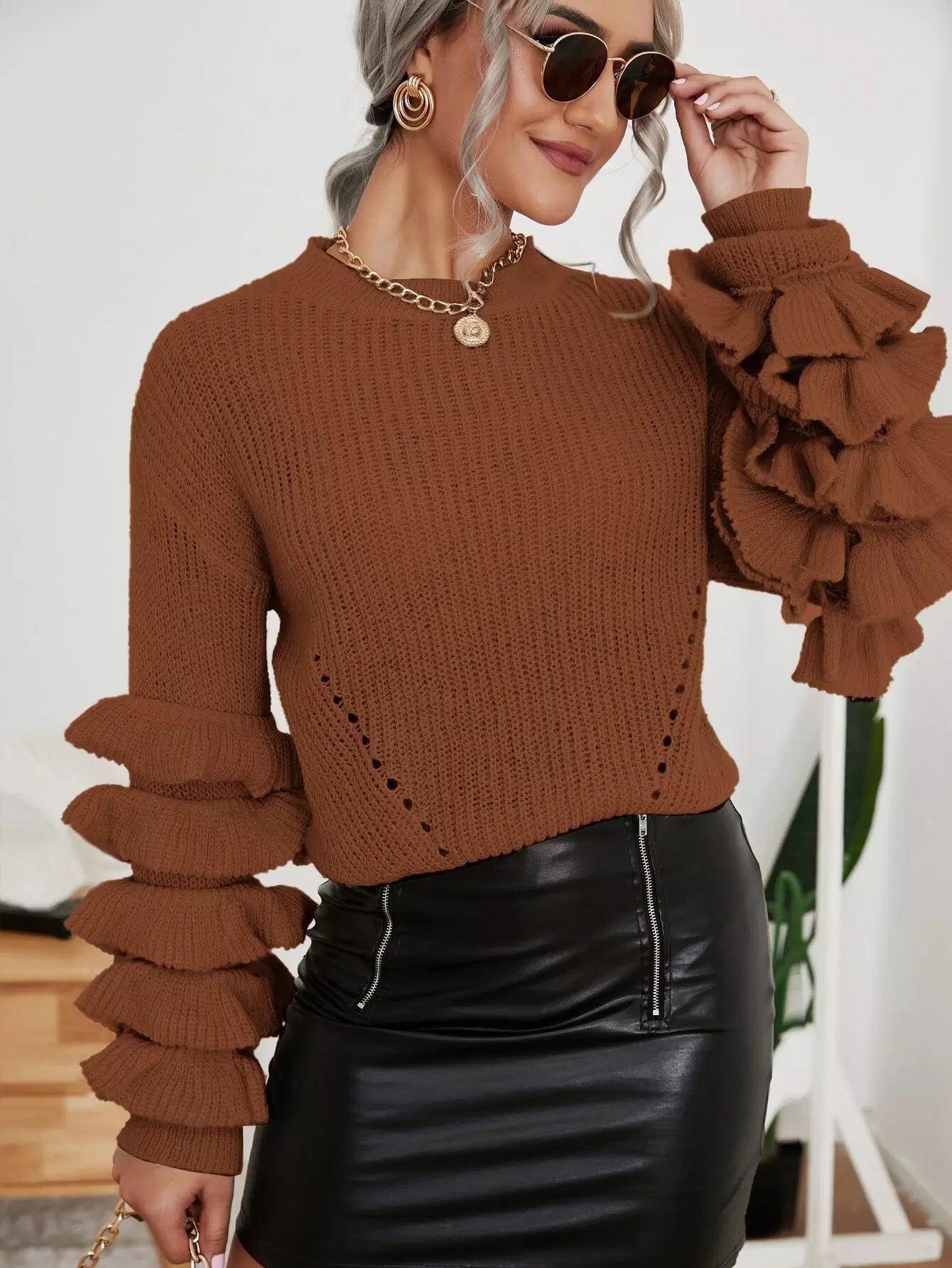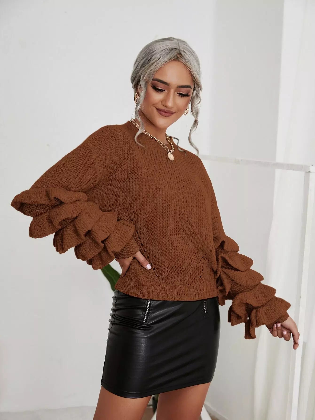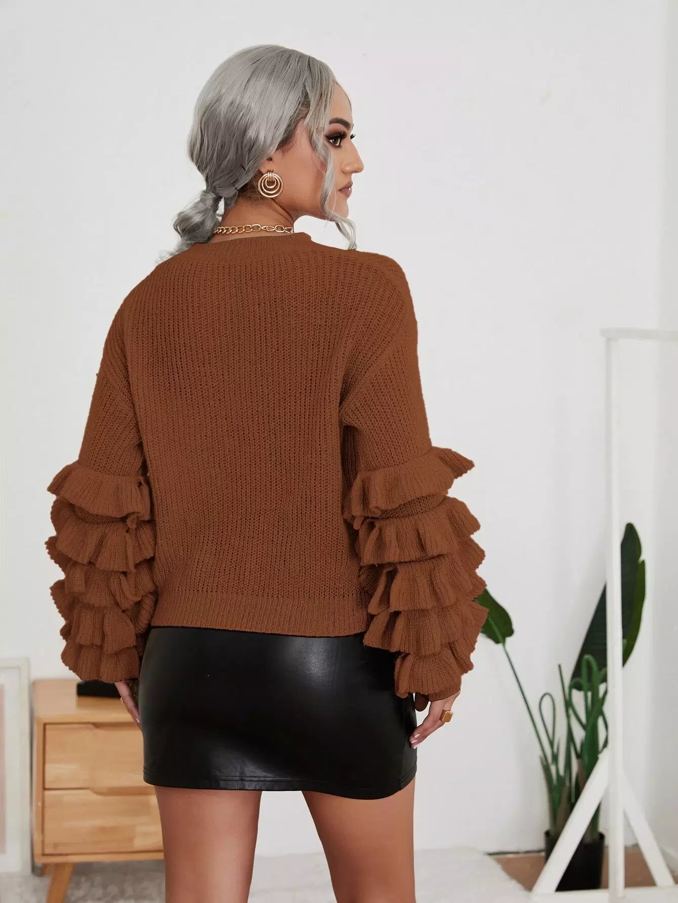 كنزة ذات أكتاف منسدلة بطبقات منسدلة ذات حواف كشكش