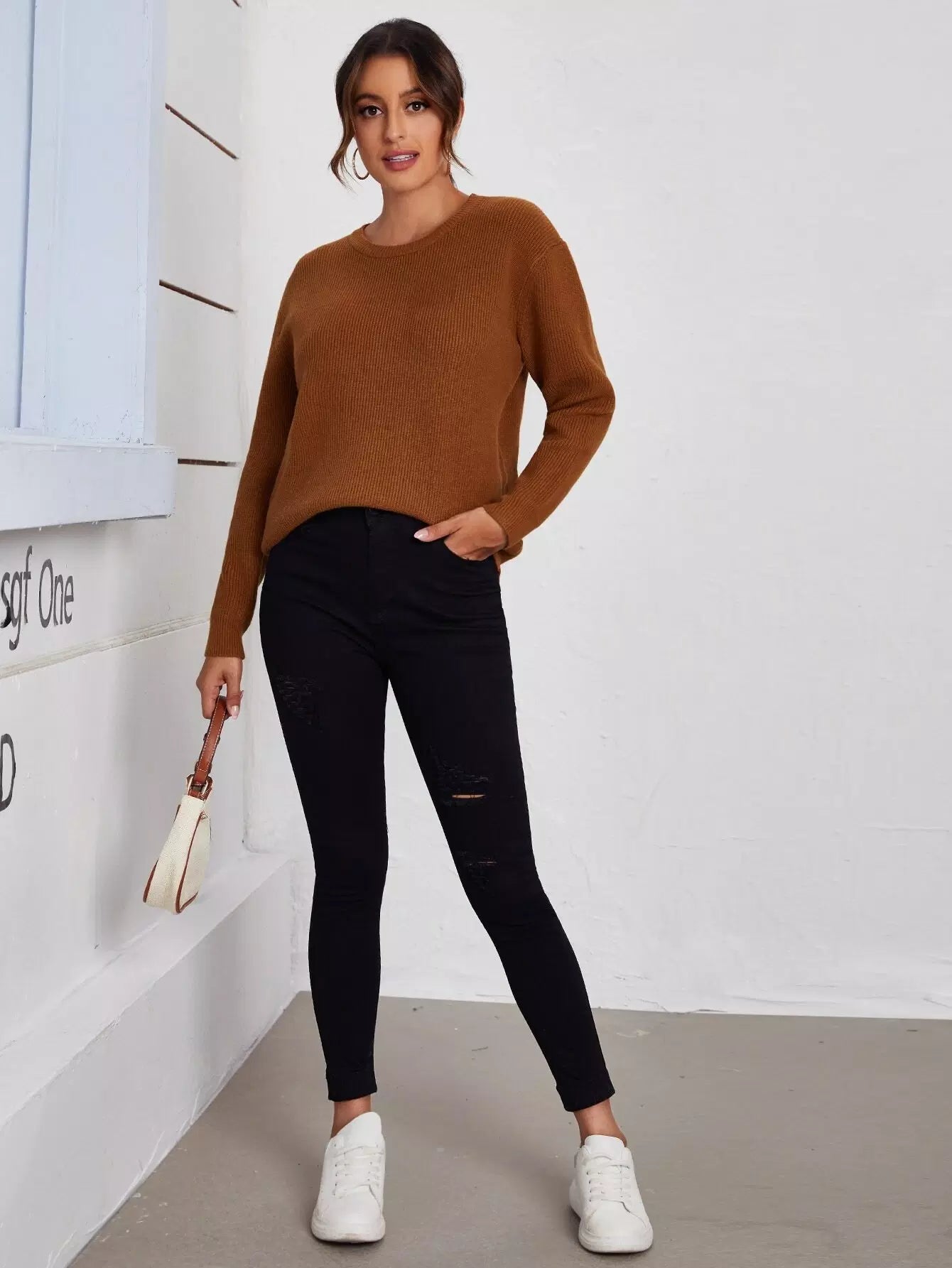 سترة منسدلة الكتفين مضلعة ومحبوكة مضلعة
