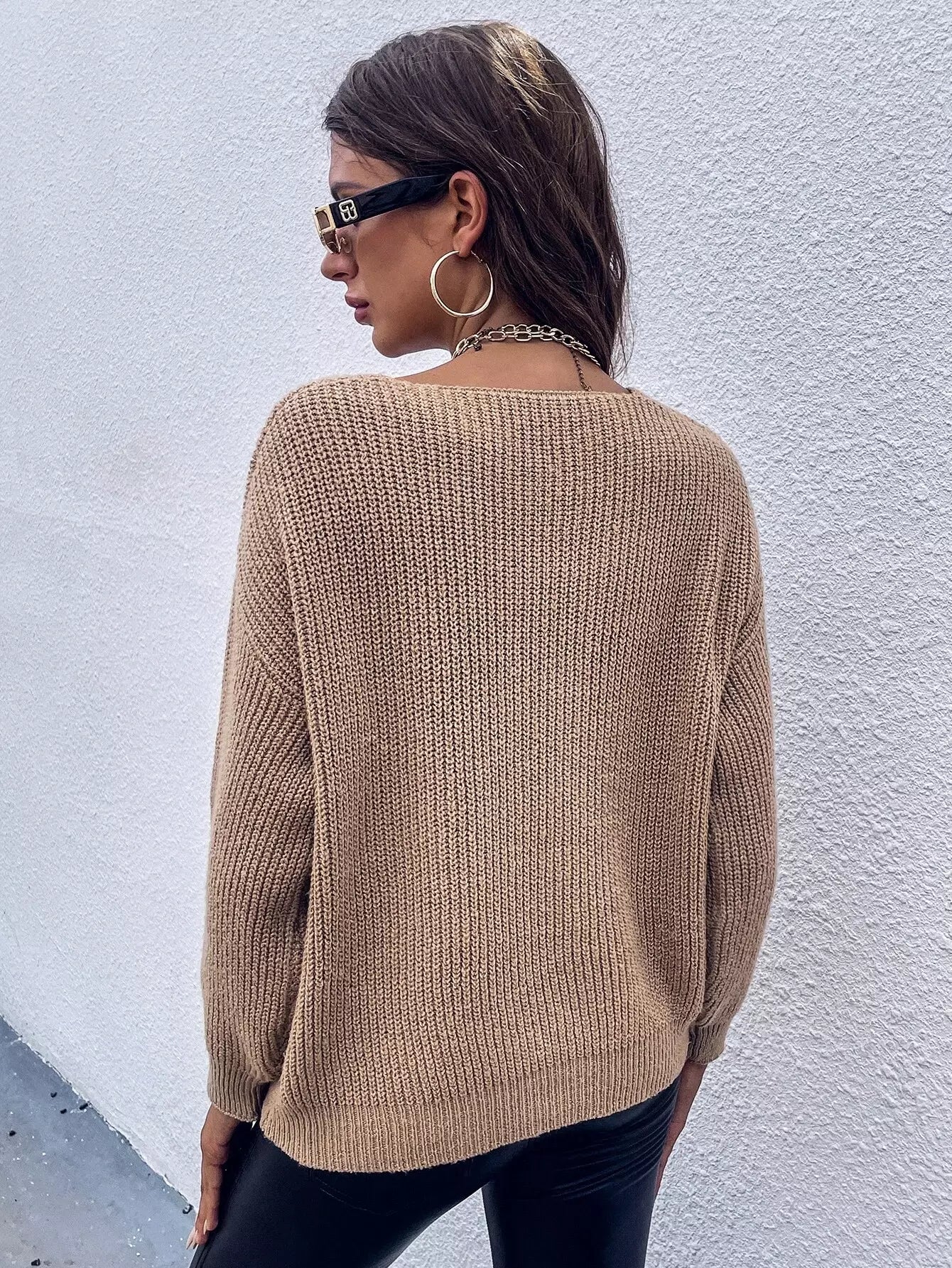 كنزة مضلعة مضلعة منسدلة الكتف مضلعة