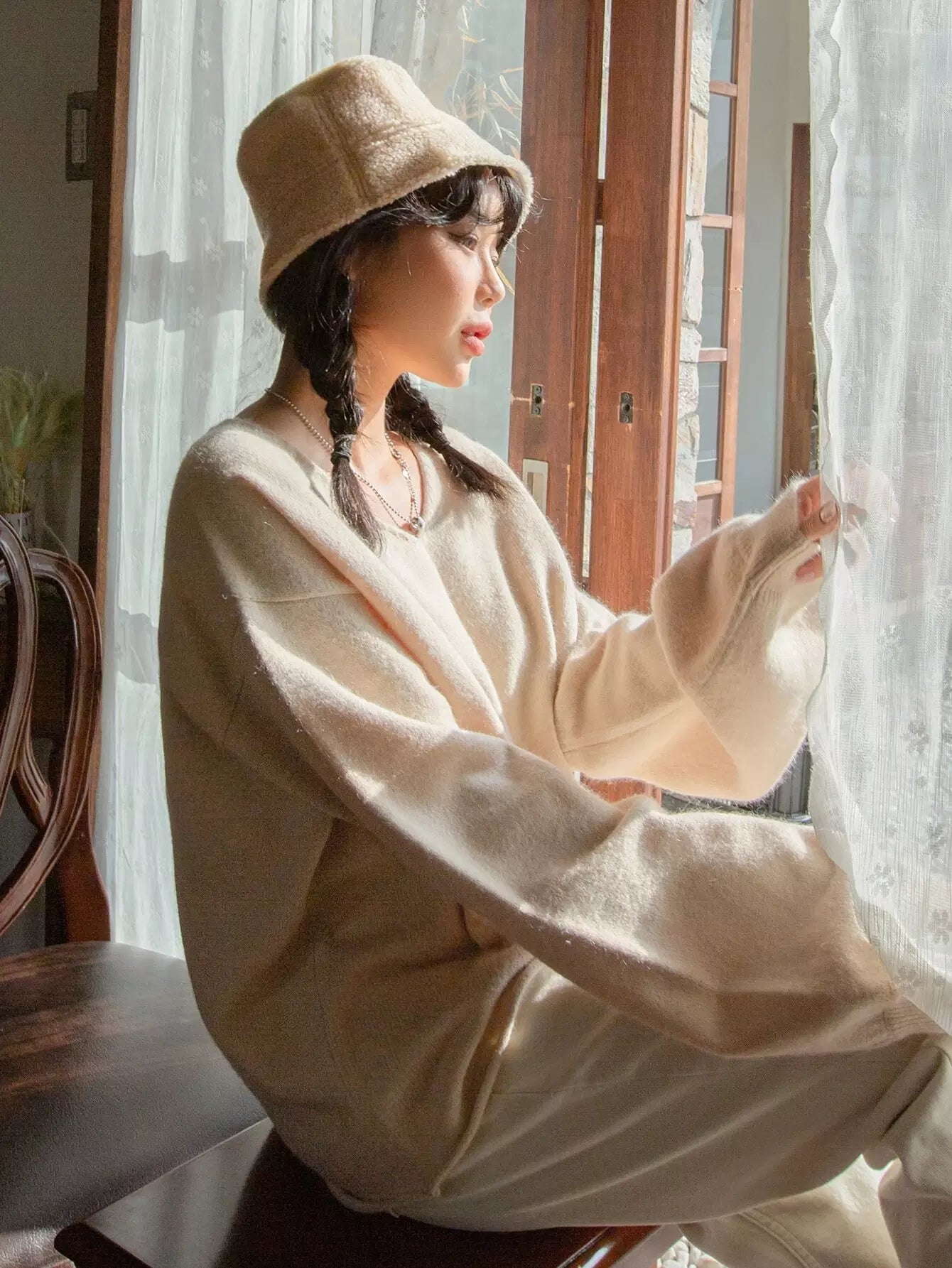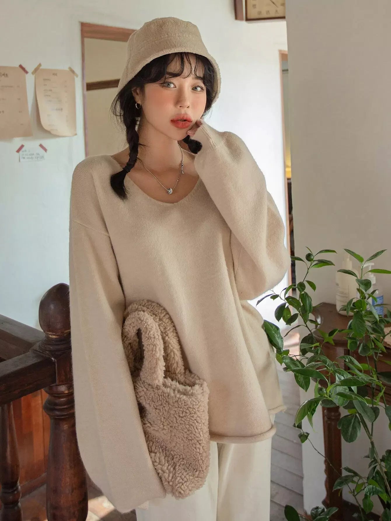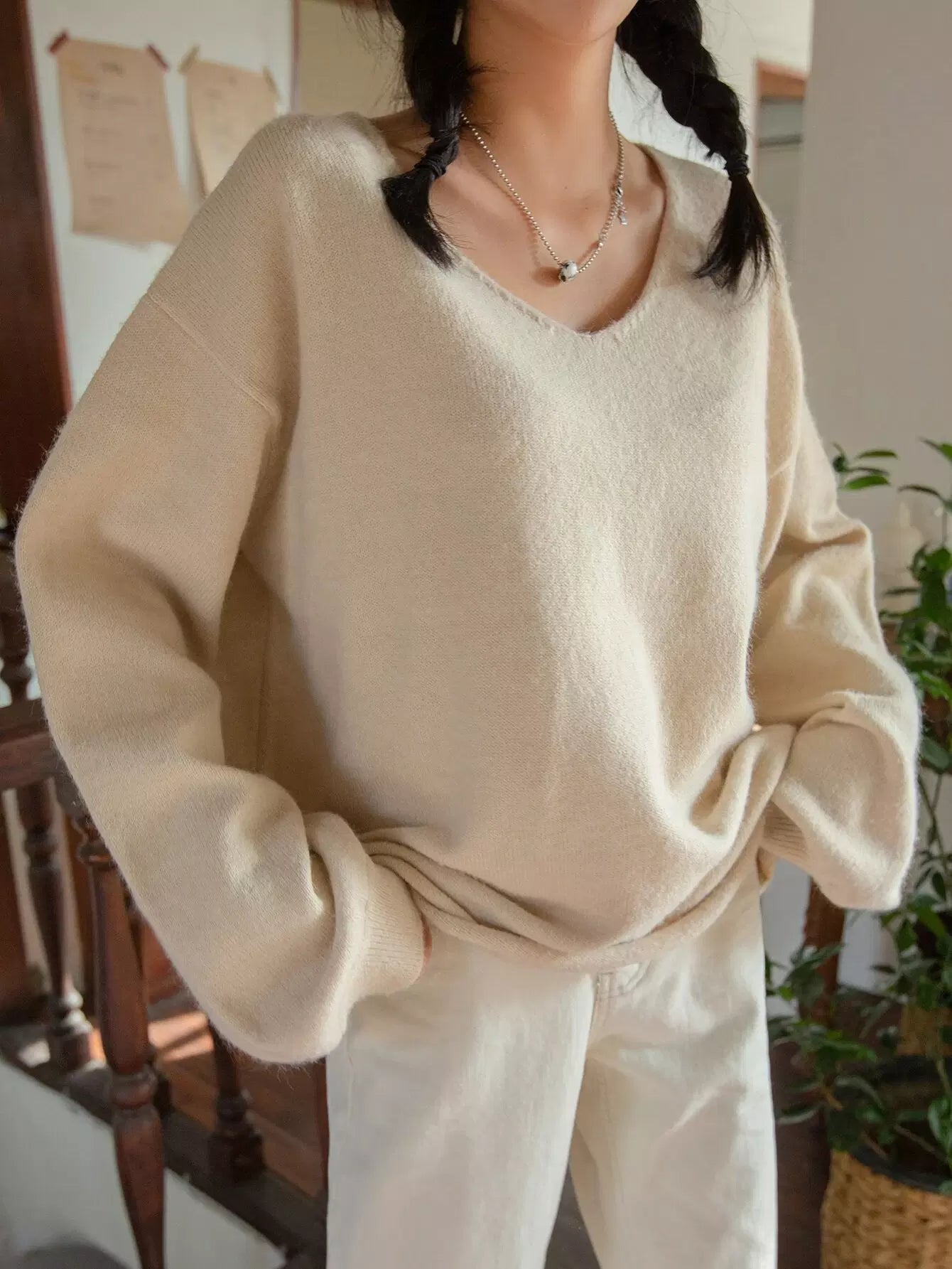كنزة بحاشية منسدلة الكتف منسدلة الكتف