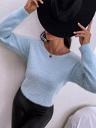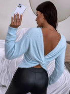 كنزة بكتف منسدلة على الكتفين بفتحة منفوشة منفوشة من الخلف