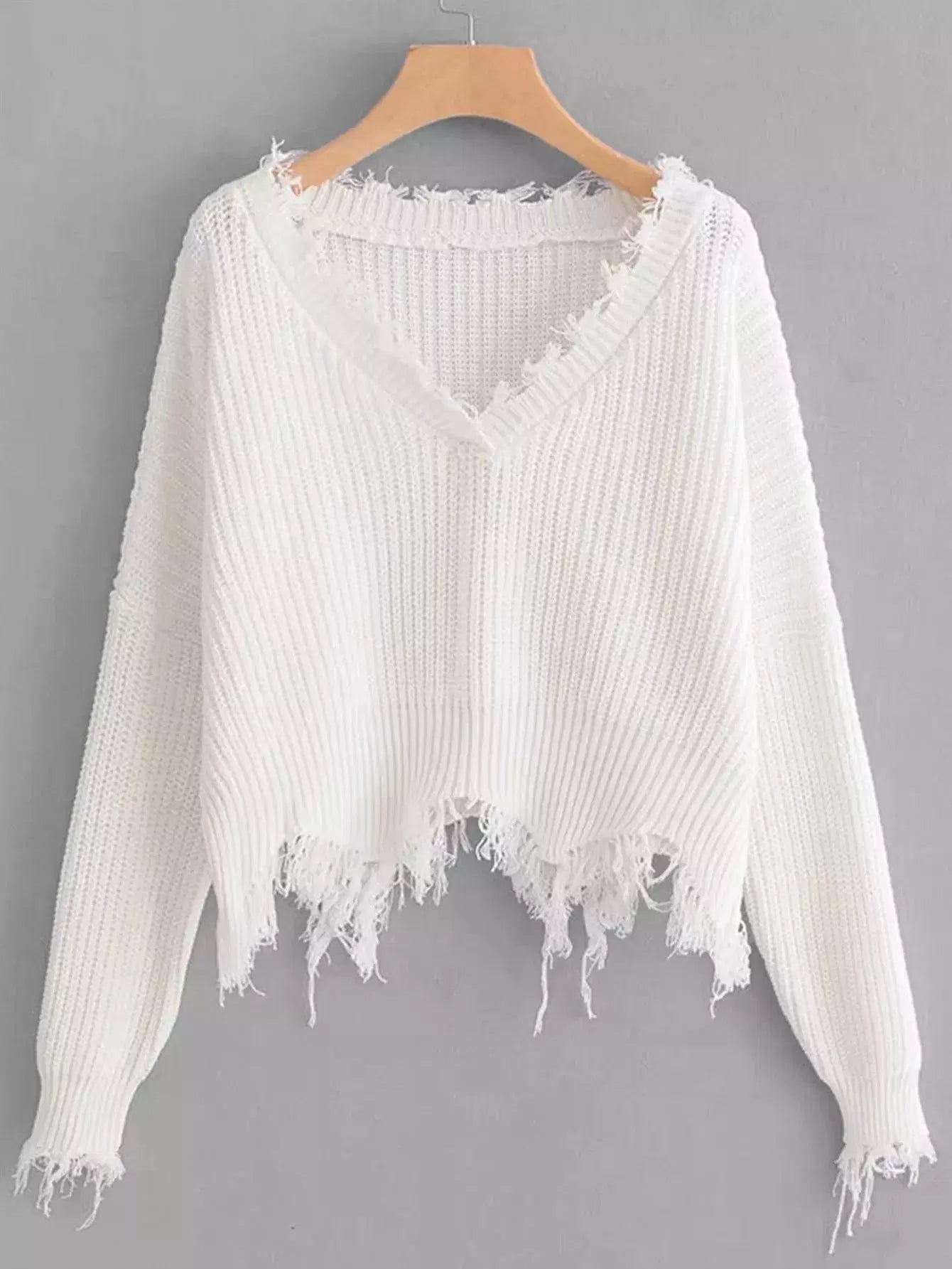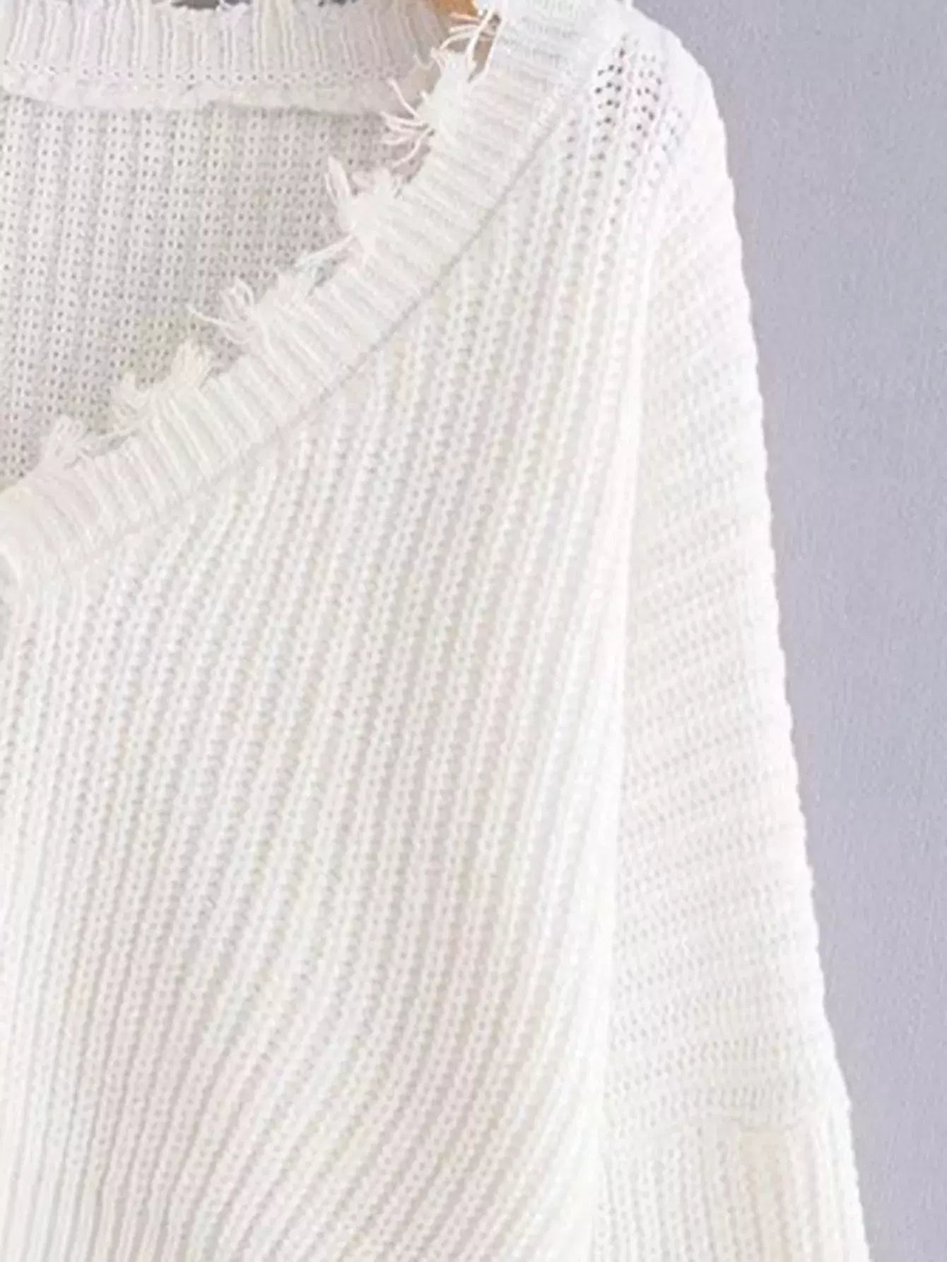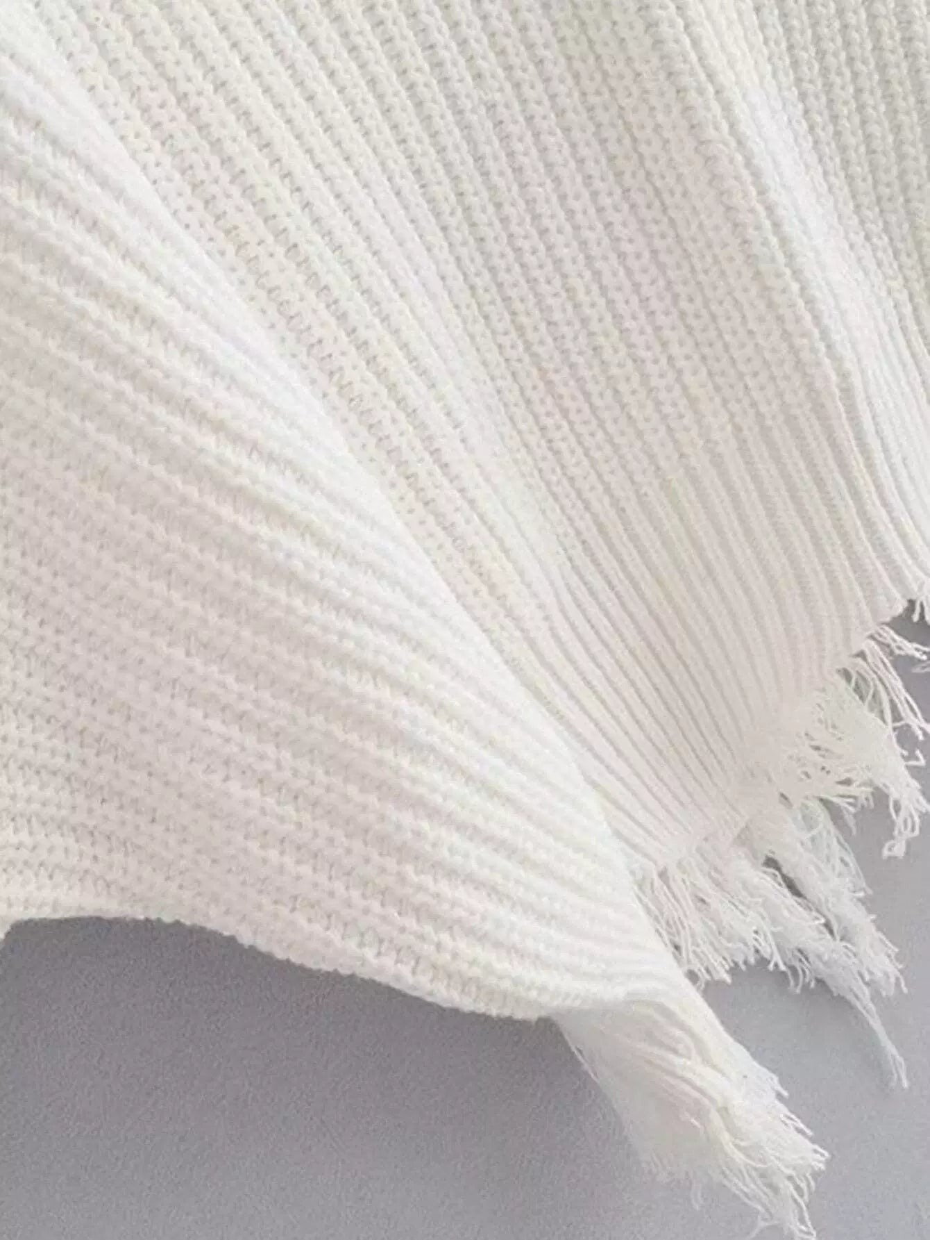 سترة ذات أكتاف منسدلة وحواف متهالكة
