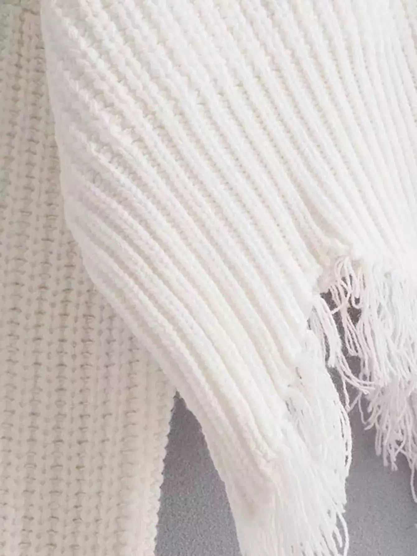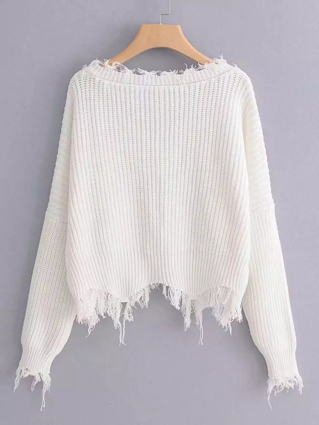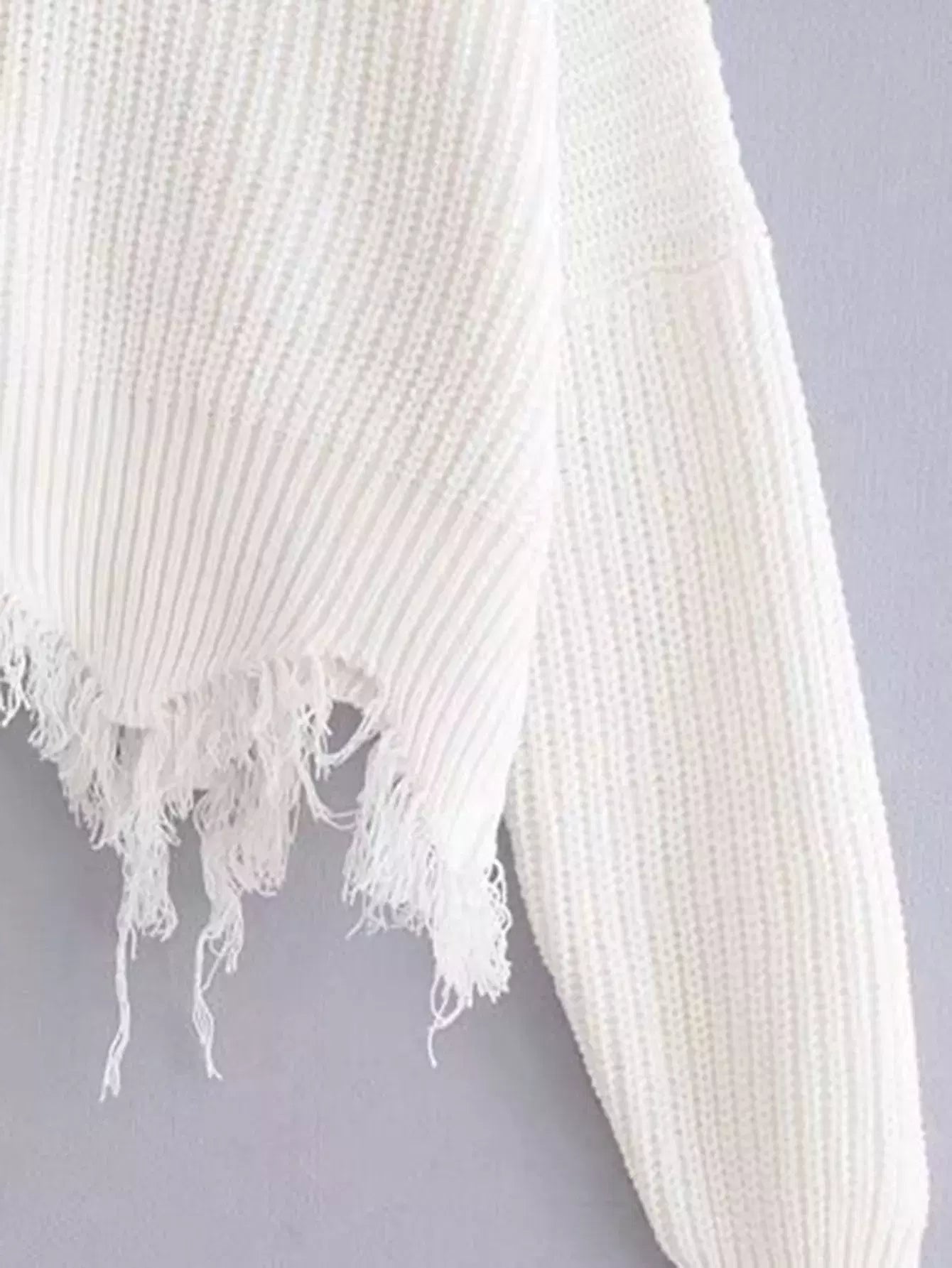 سترة ذات أكتاف منسدلة وحواف متهالكة