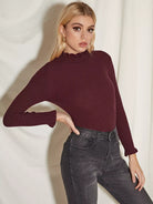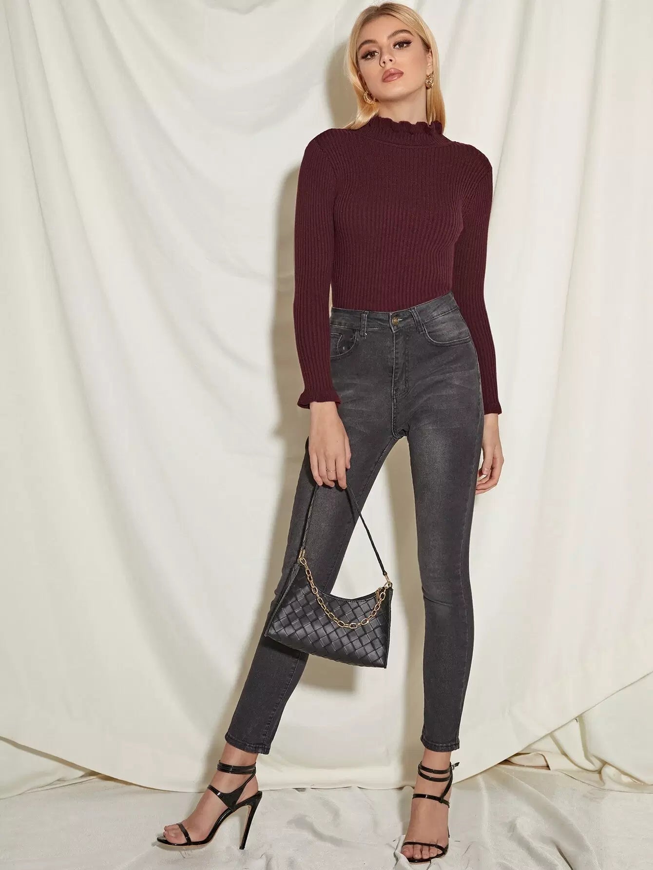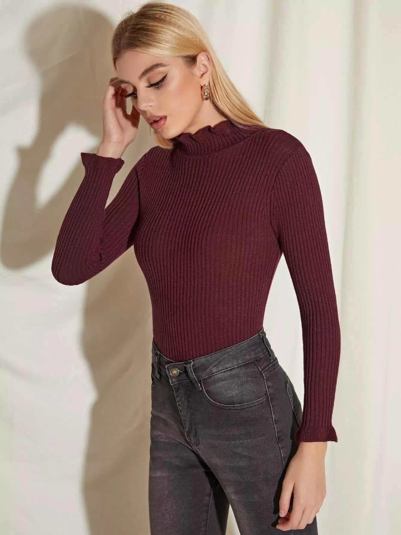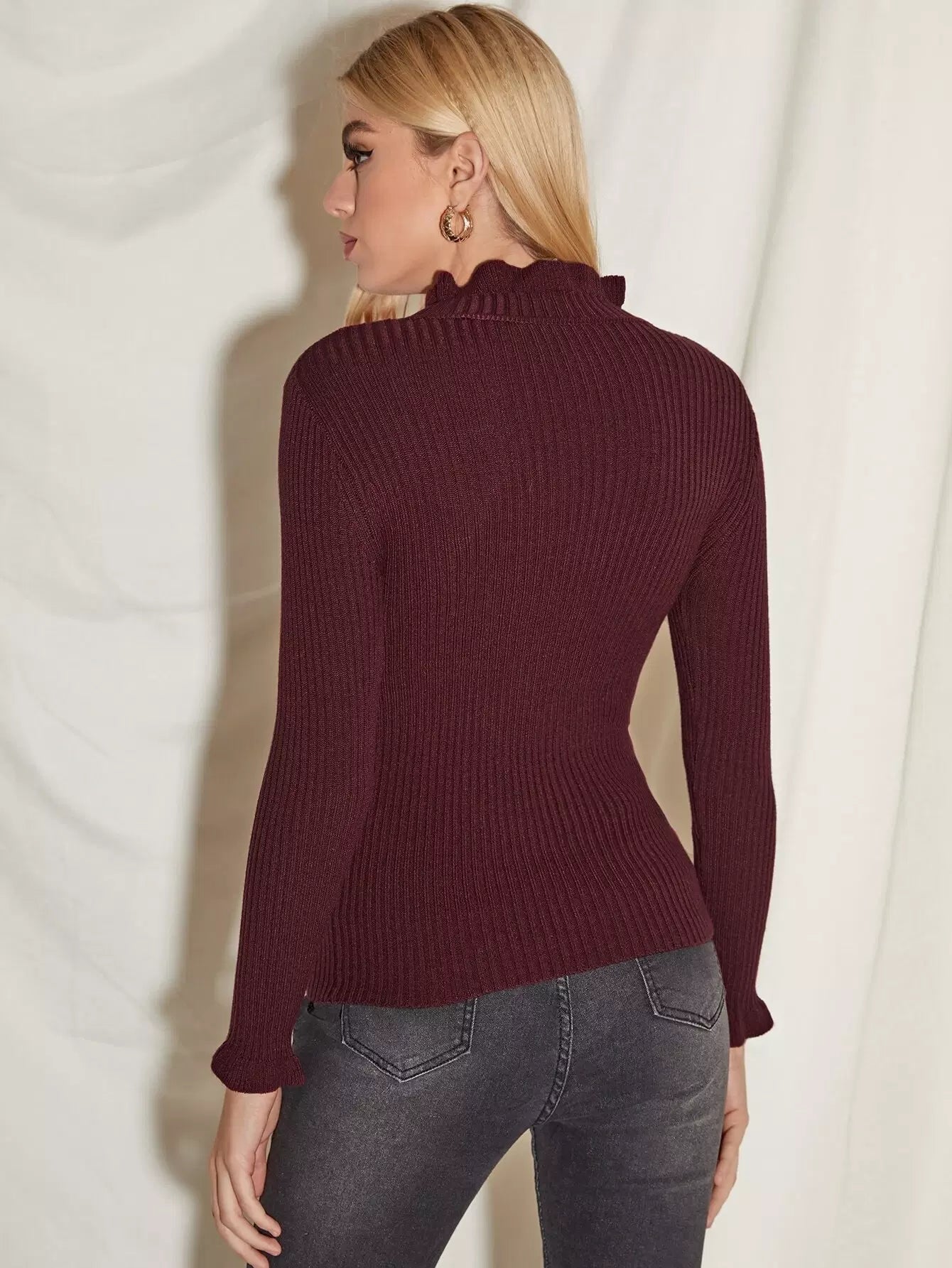 كنزة بياقة كشكش برقبة جورب محبوكة على شكل ضلع