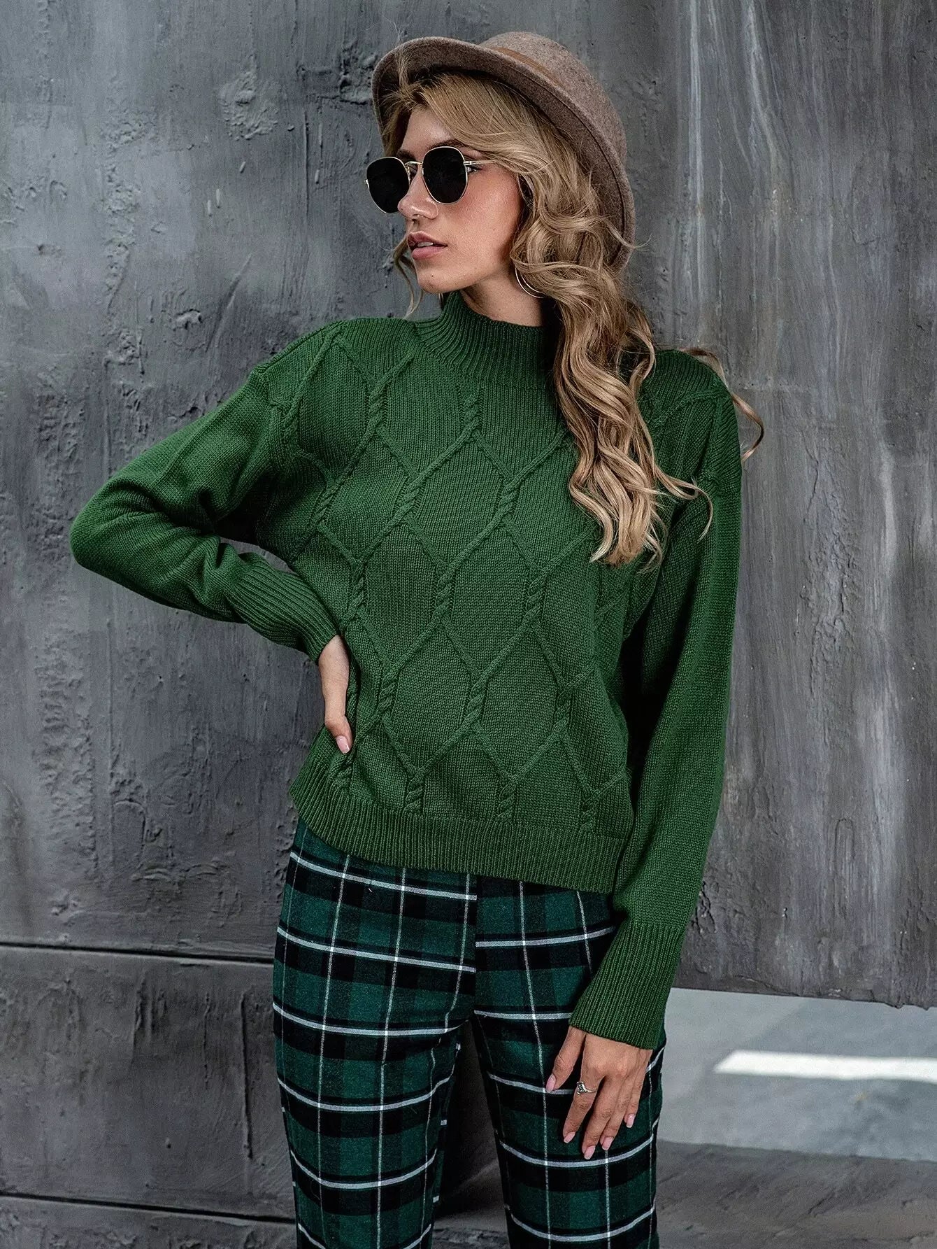 سترة محبوكة برقبة قمعية برقبة كابل محبوكة
