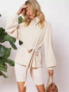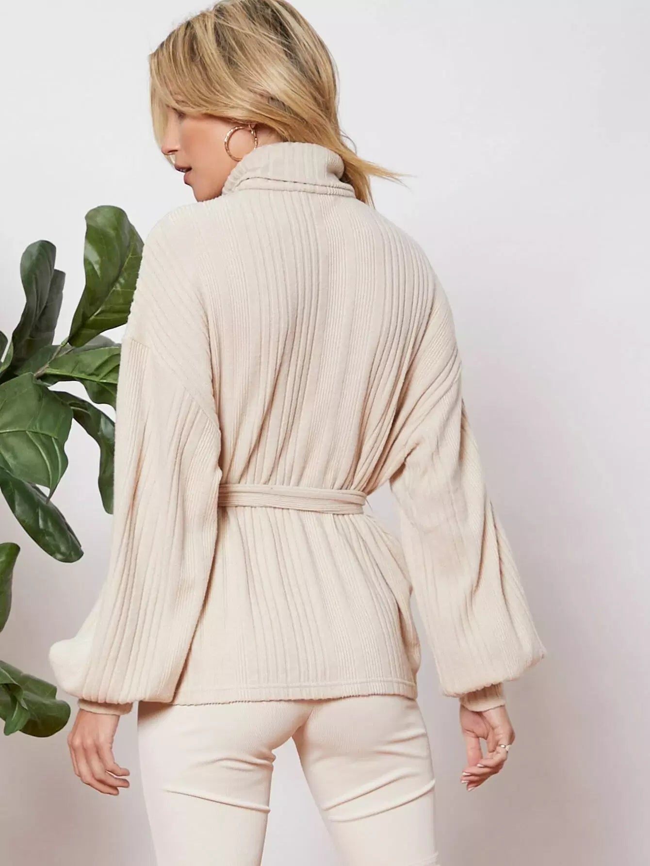 سترة مضلعة بأكمام واسعة وياقة فانوس بدون حزام
