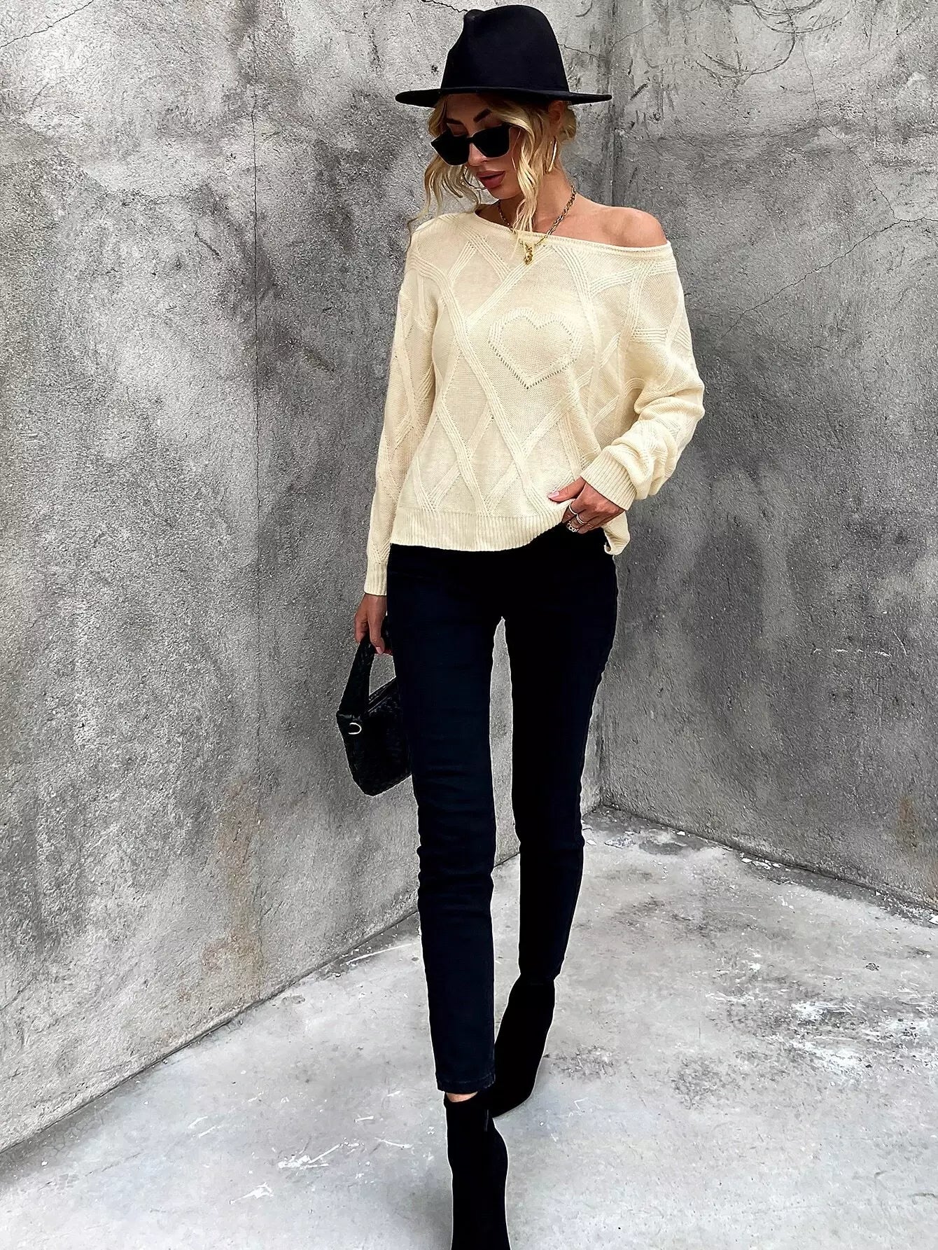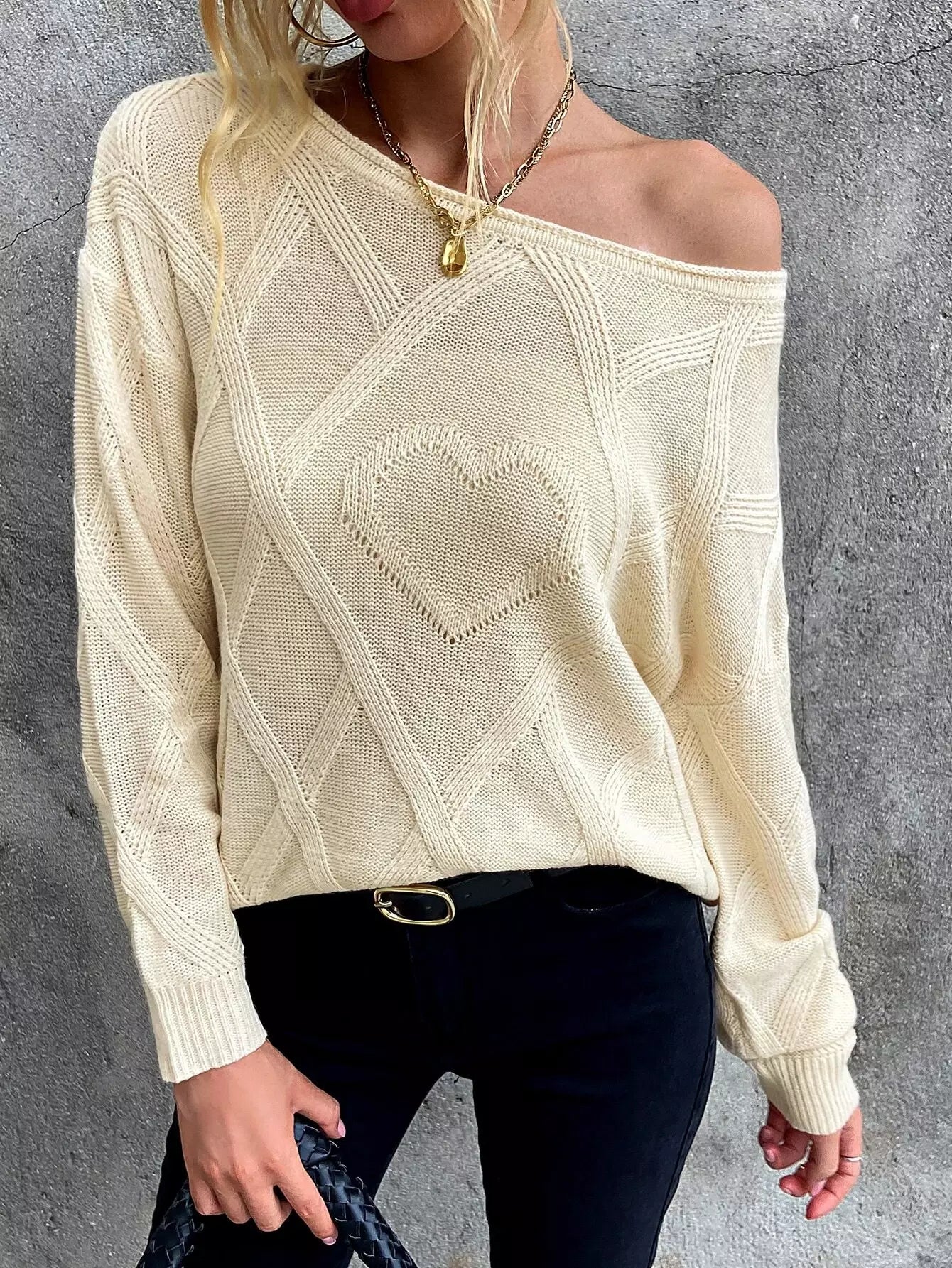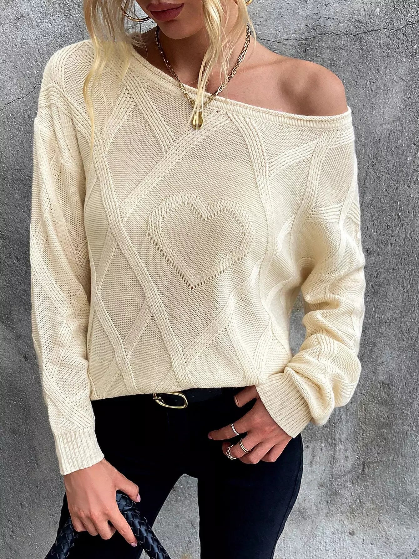 سترة منسدلة الكتفين بنقشة القلب والأرجيل