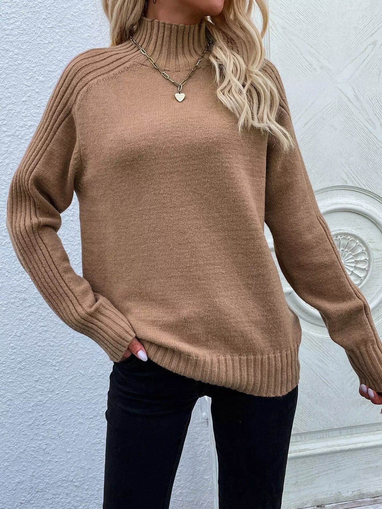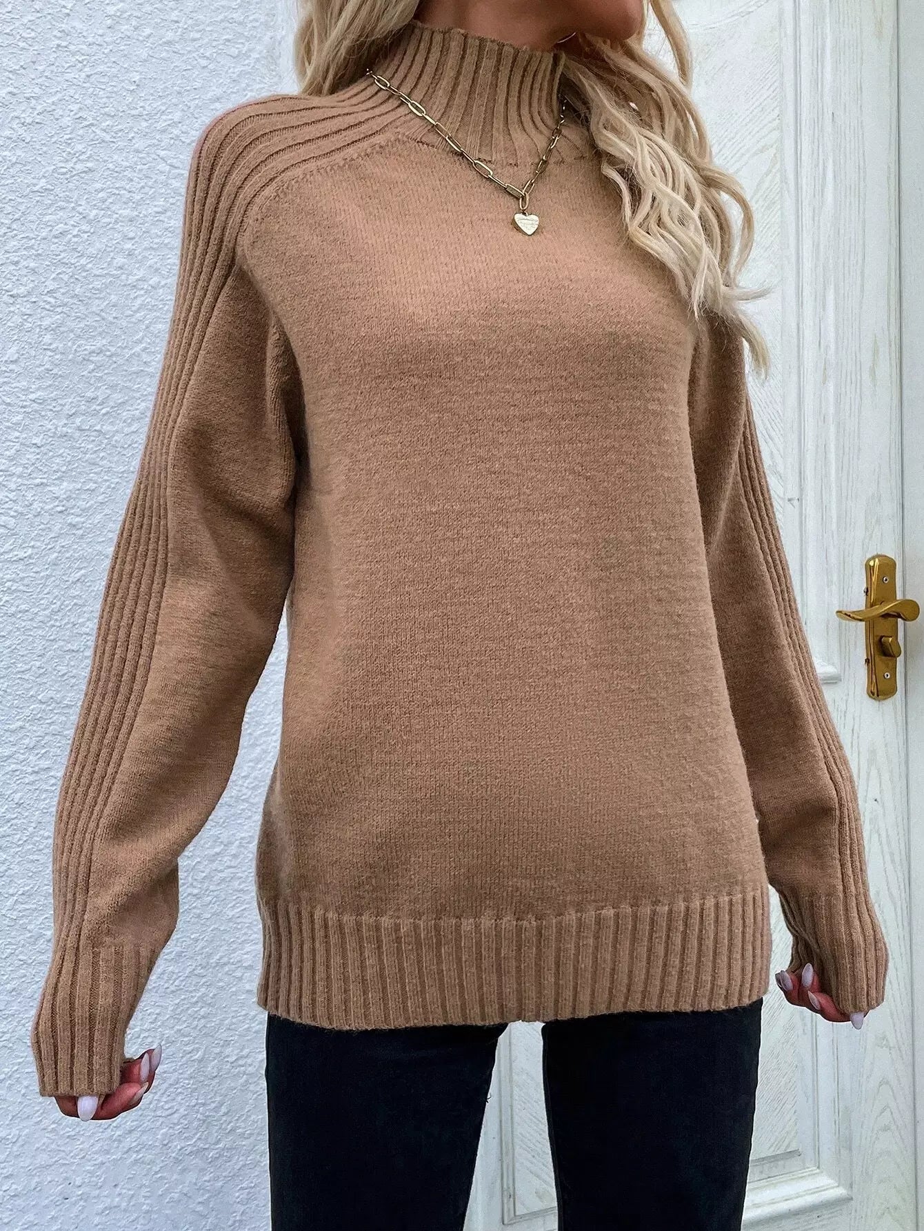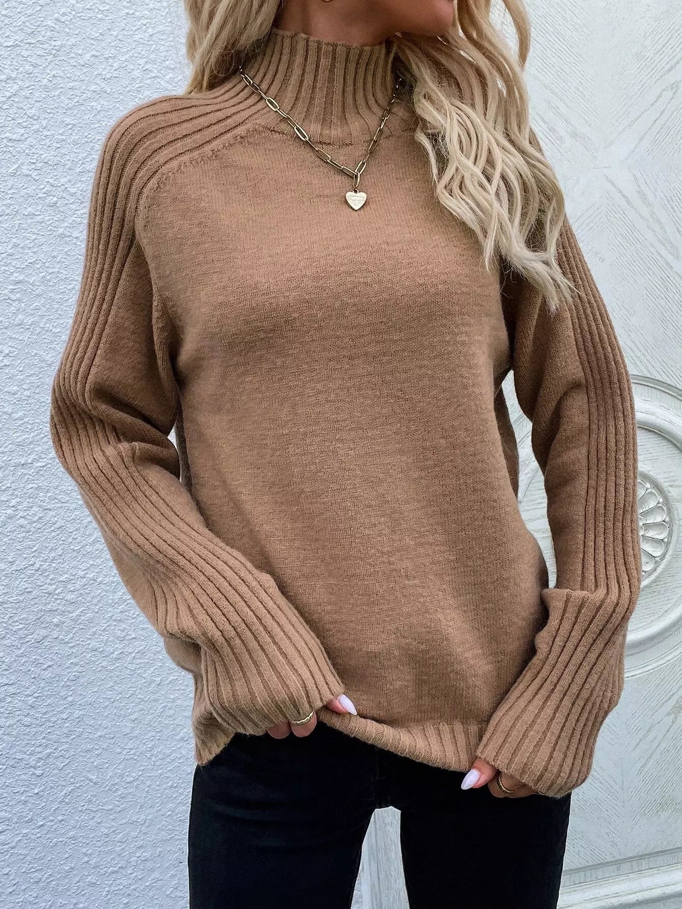 سترة بياقة عالية وأكمام راجلان