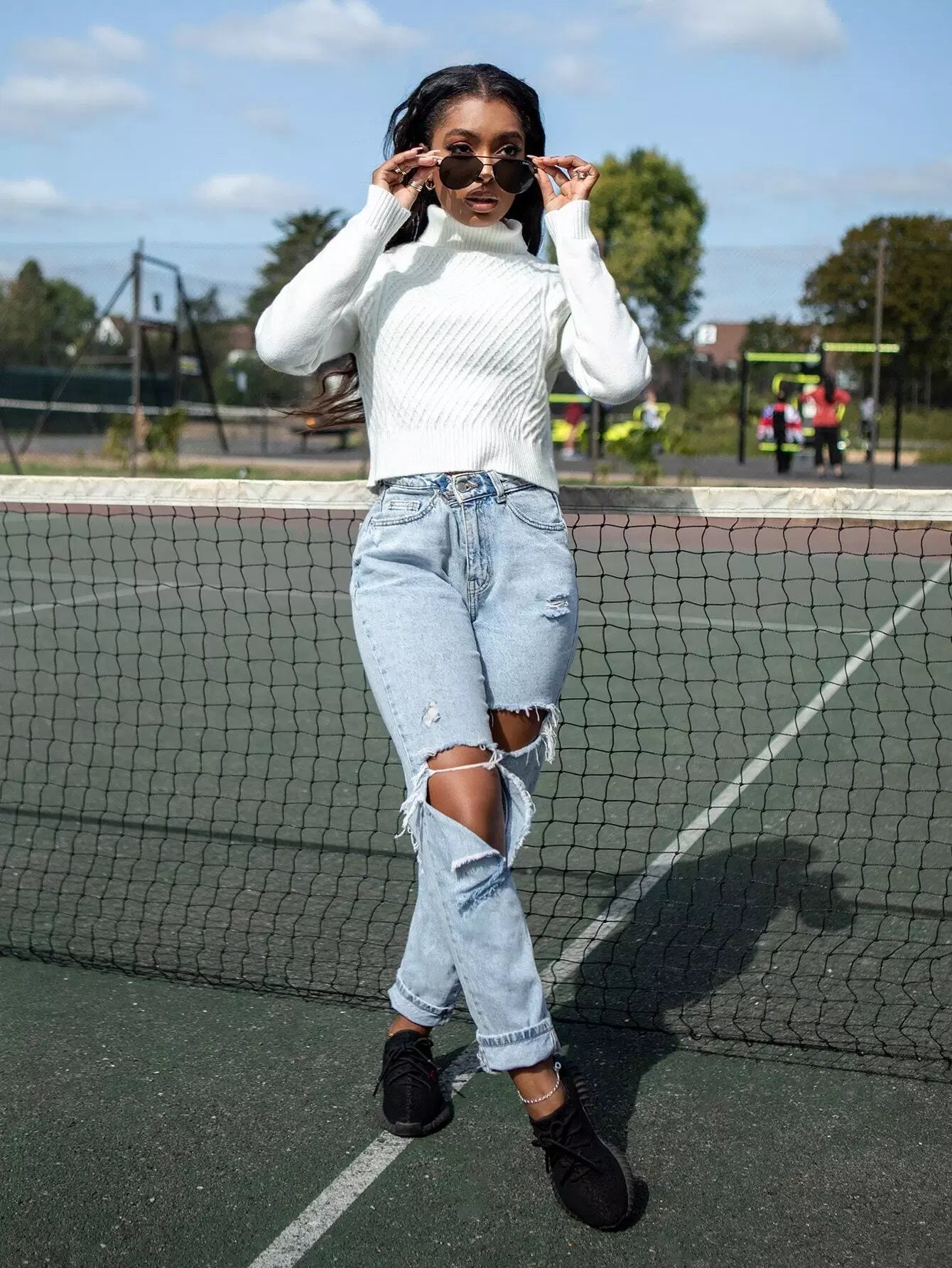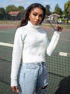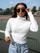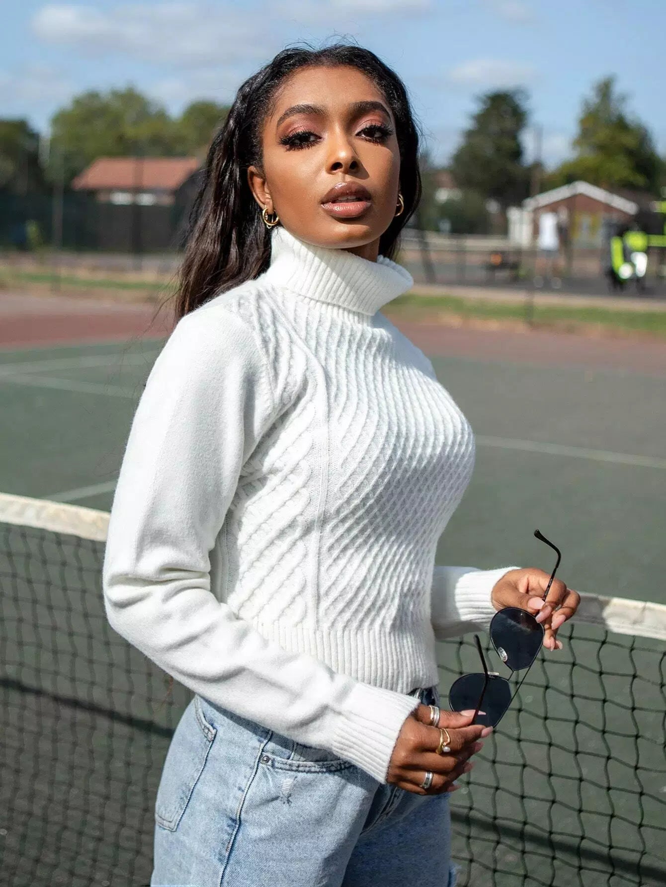 كنزة بياقة عالية الرقبة سادة متماسكة من الوافل