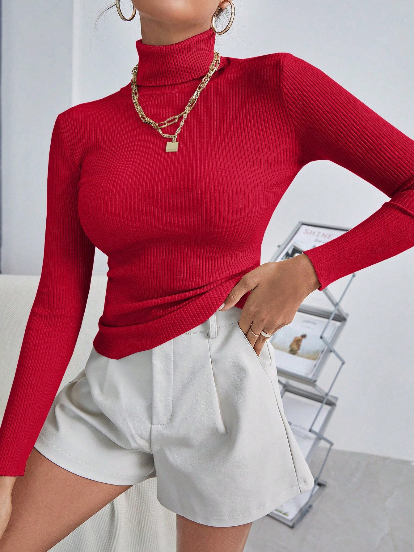 INAWLY Turtleneck Ribbed Knit Sweater,Long Sleeve Tops Knit Pullover Fall Winter Outfit