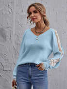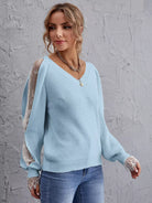 النساء - سترة منسوجة ومضلعة من الدانتيل