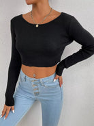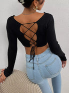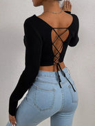 سترة قصيرة محبوكة مضلعة مضلعة بأربطة من الخلف