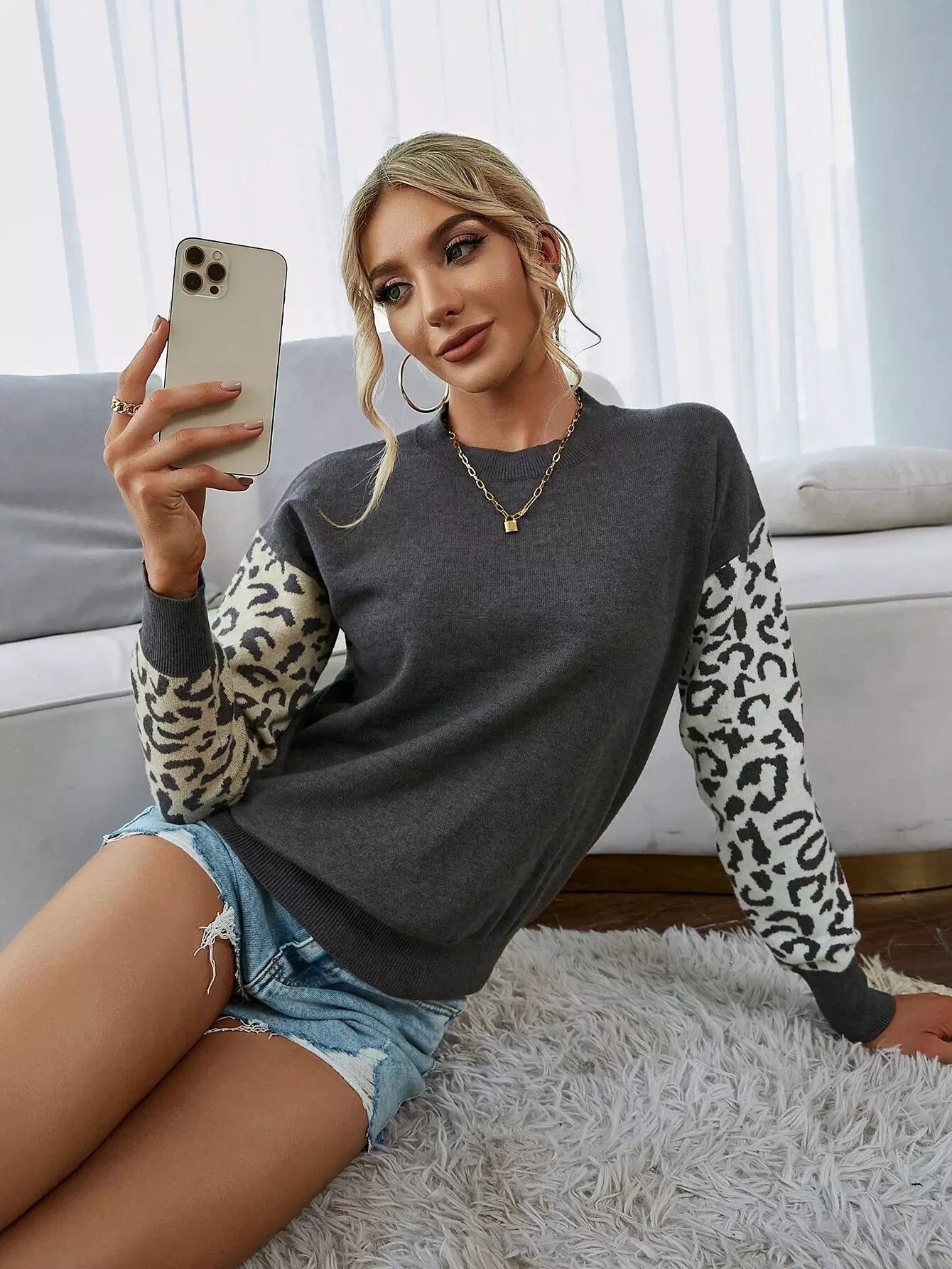 سترة منسدلة الكتفين بنقشة جلد النمر