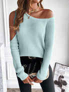 LUNE Women's Plain Asymmetric Collar Long Sleeve Casual Sweater For Autumn And Winter,Long Sleeve Tops