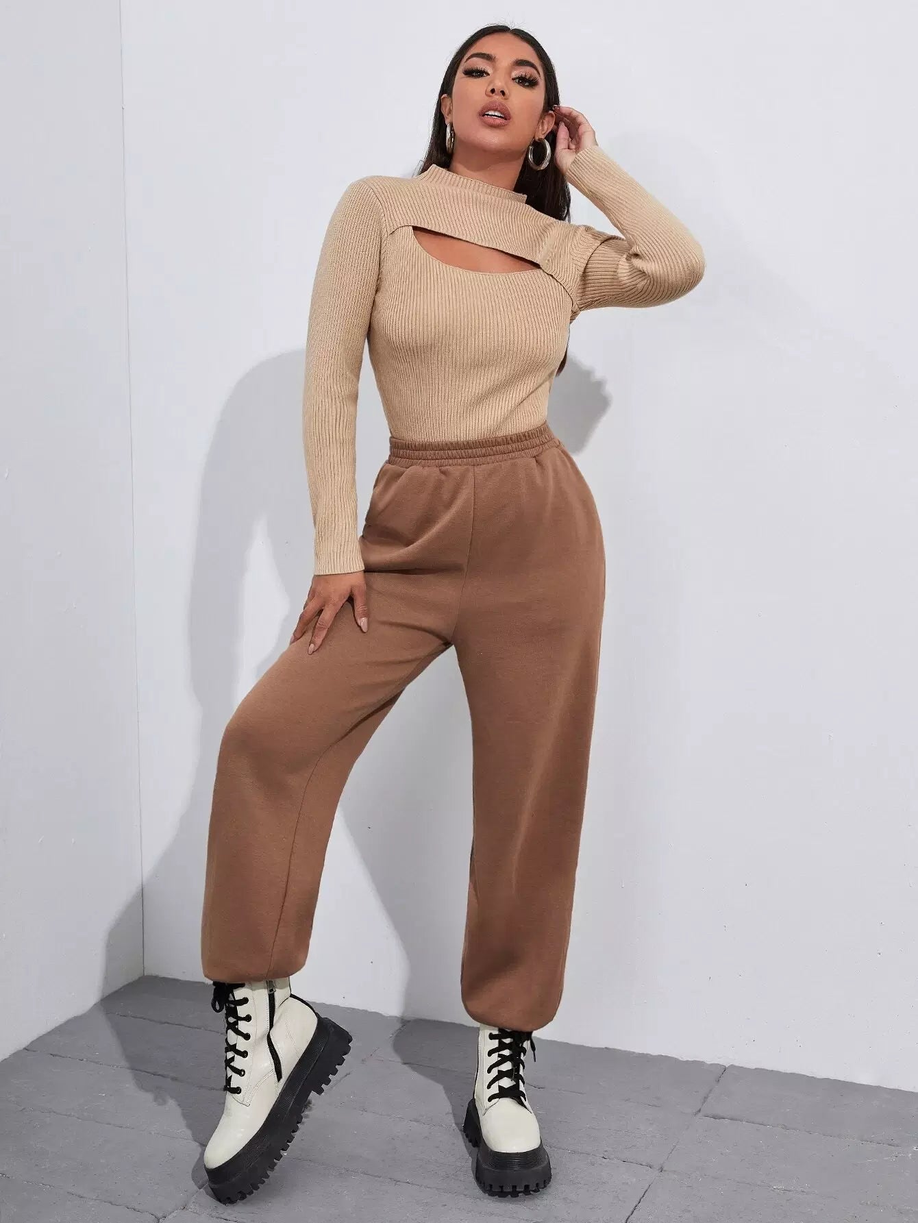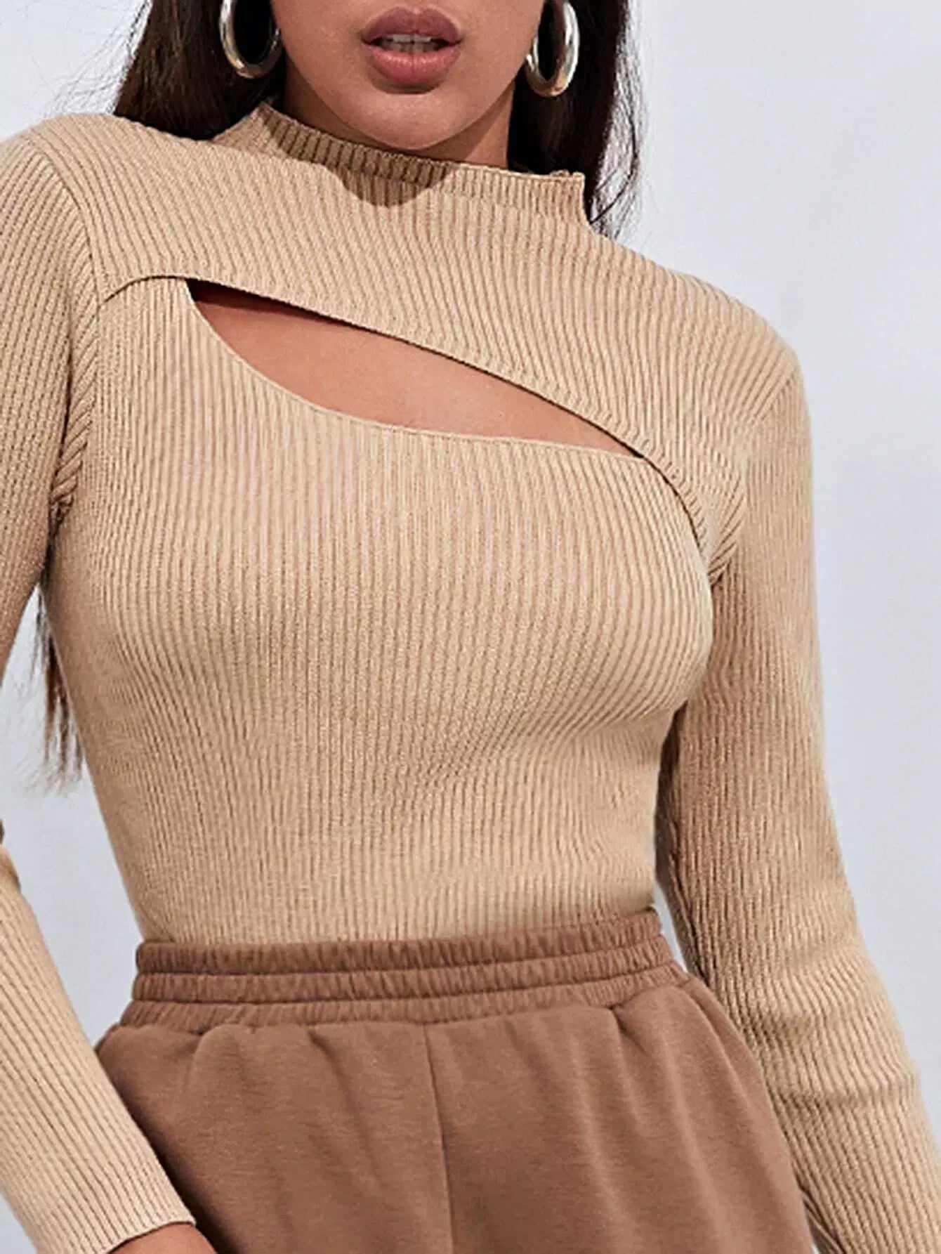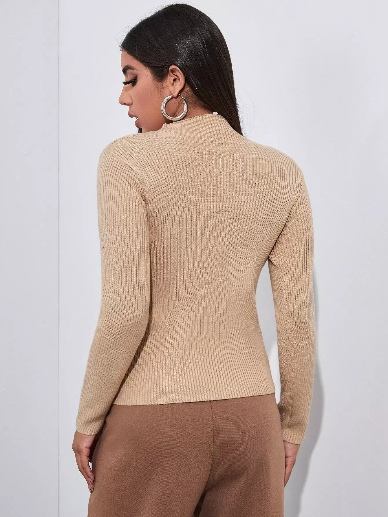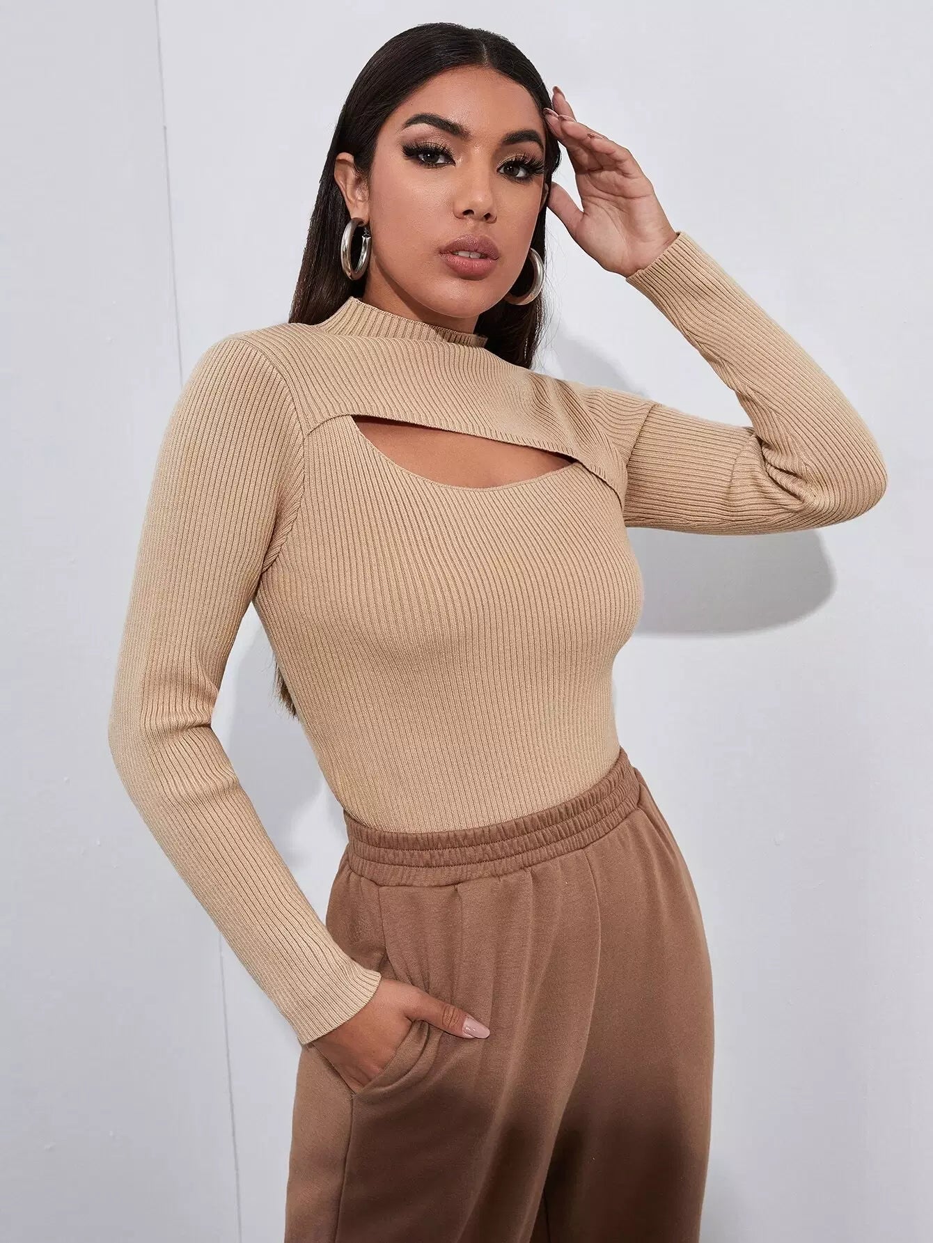 سترة بياقة مقصوصة بفتحة رقبة وهمية محبوكة على شكل ضلع