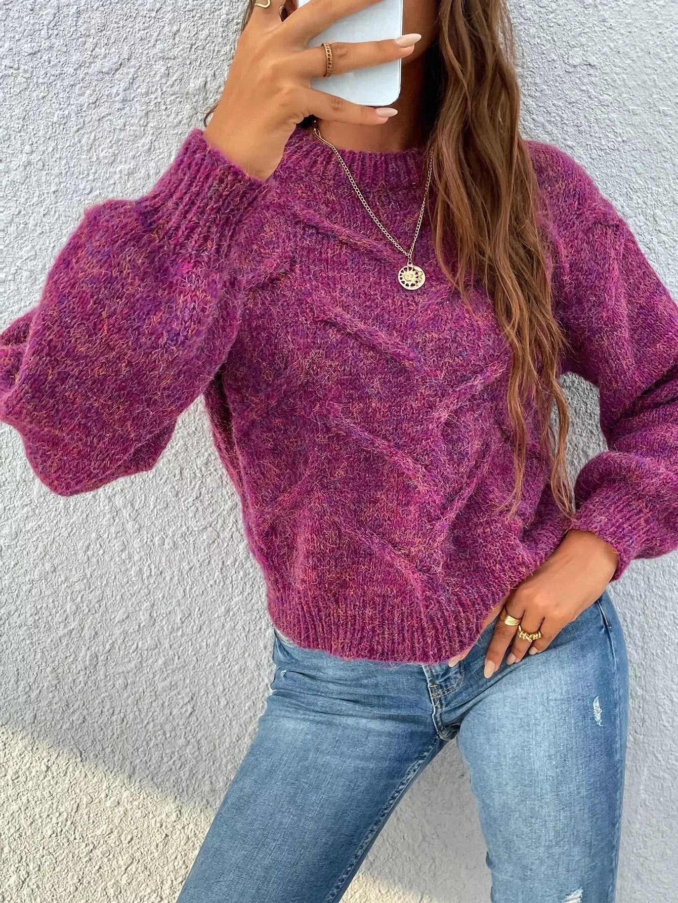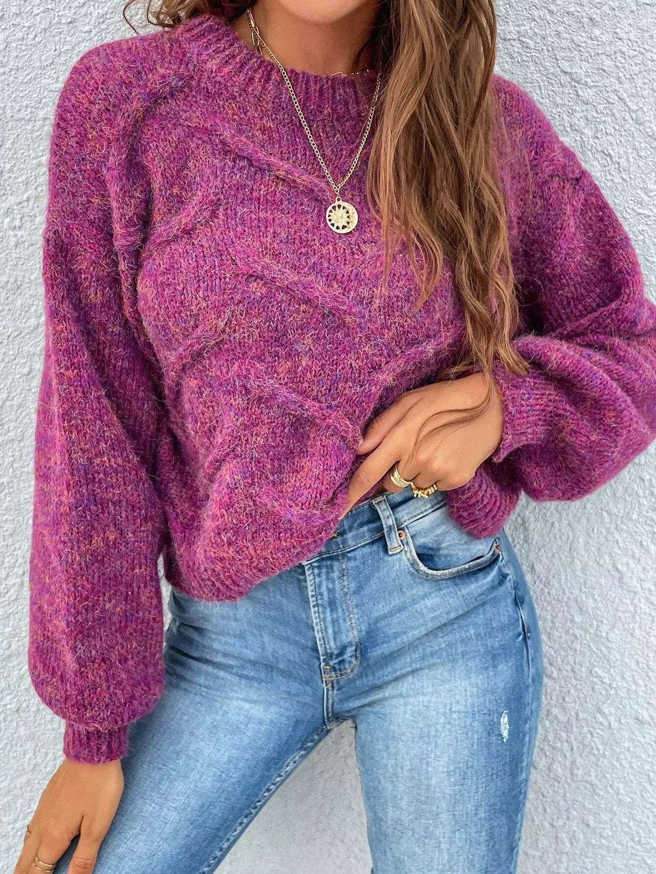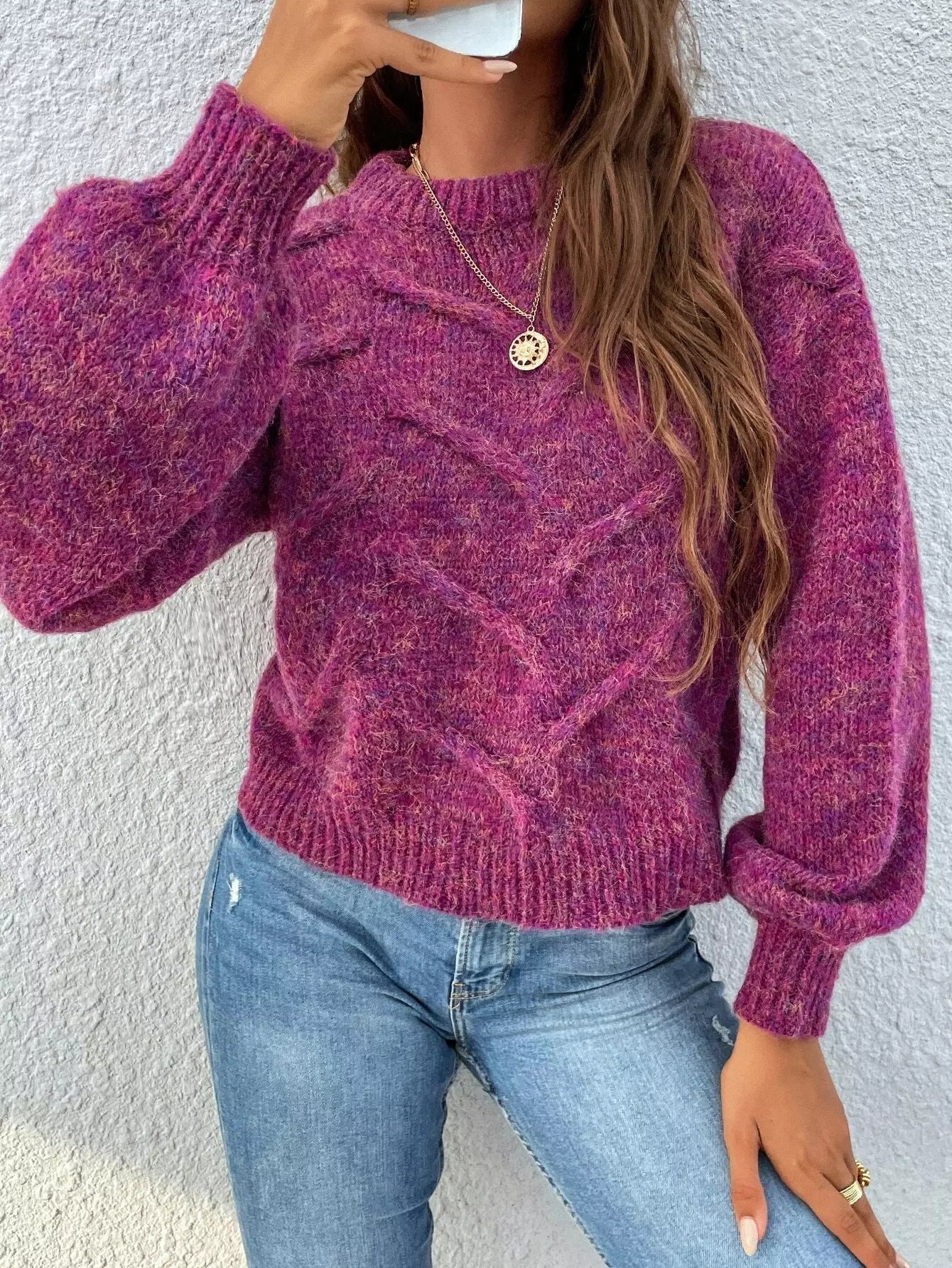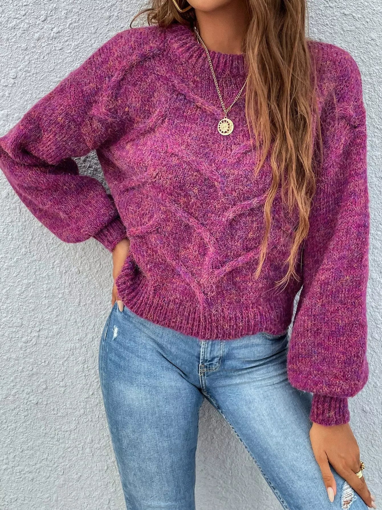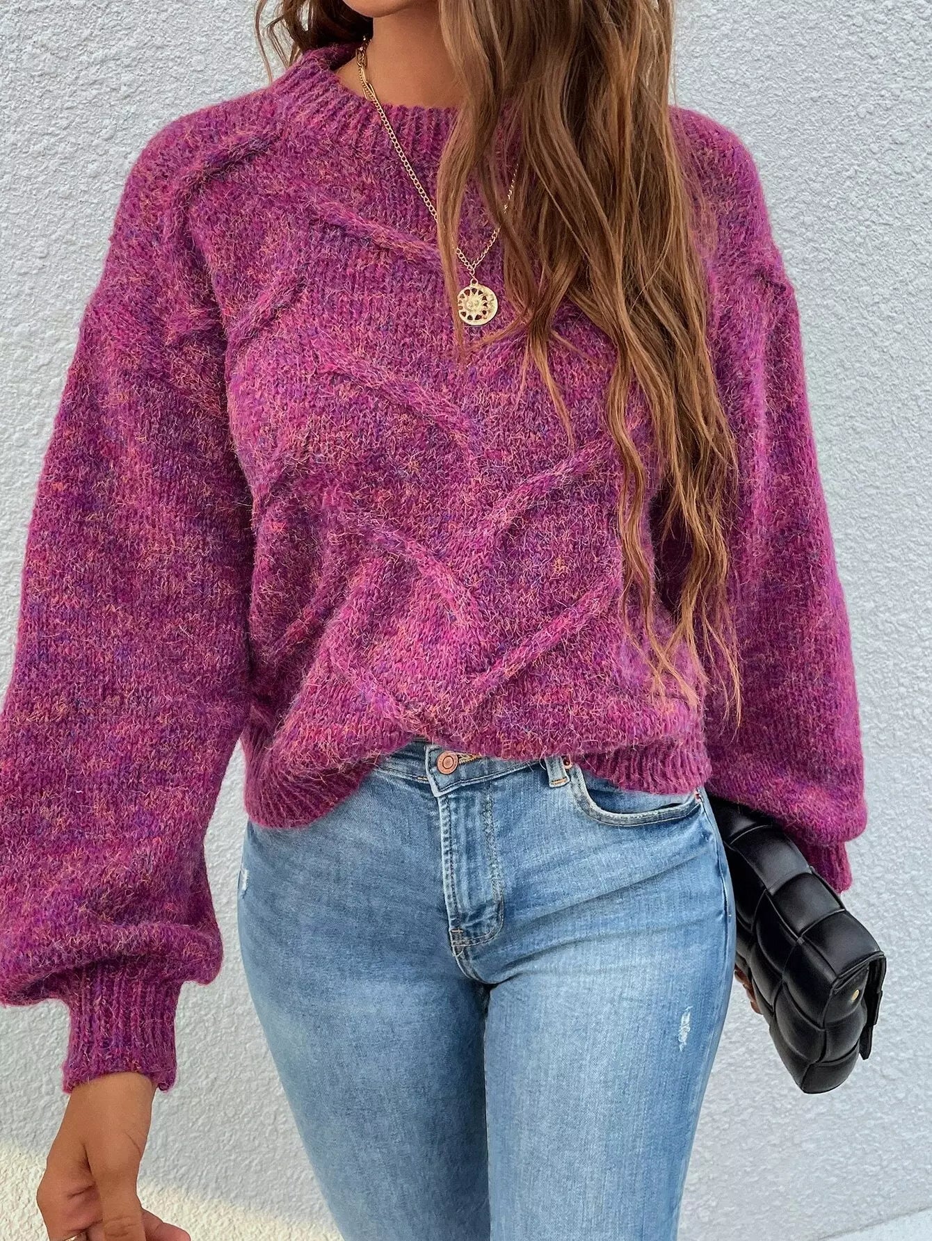 سترة بأكمام برقبة وهمية برقبة على شكل فانوس