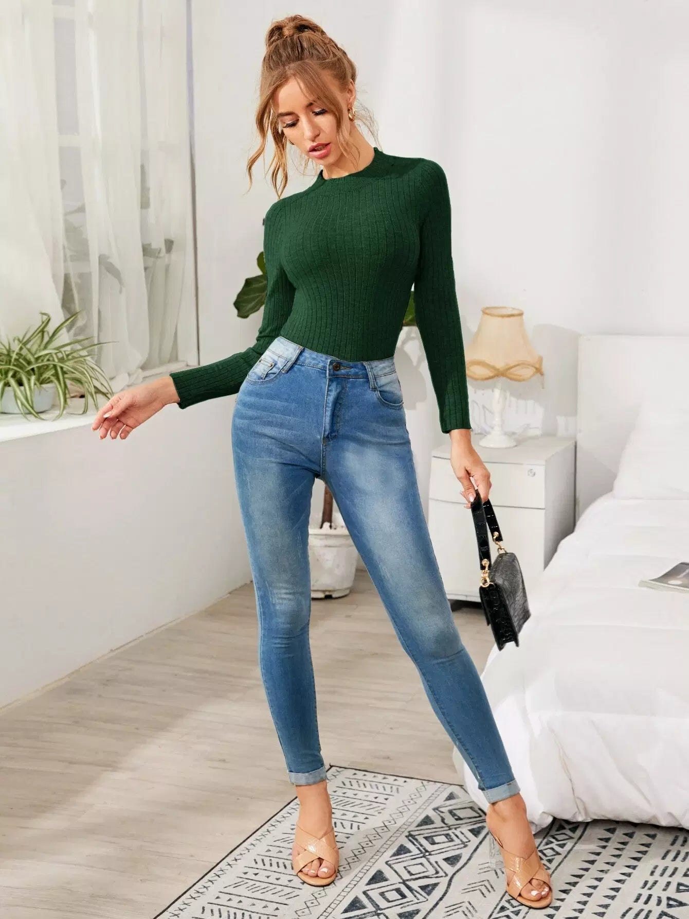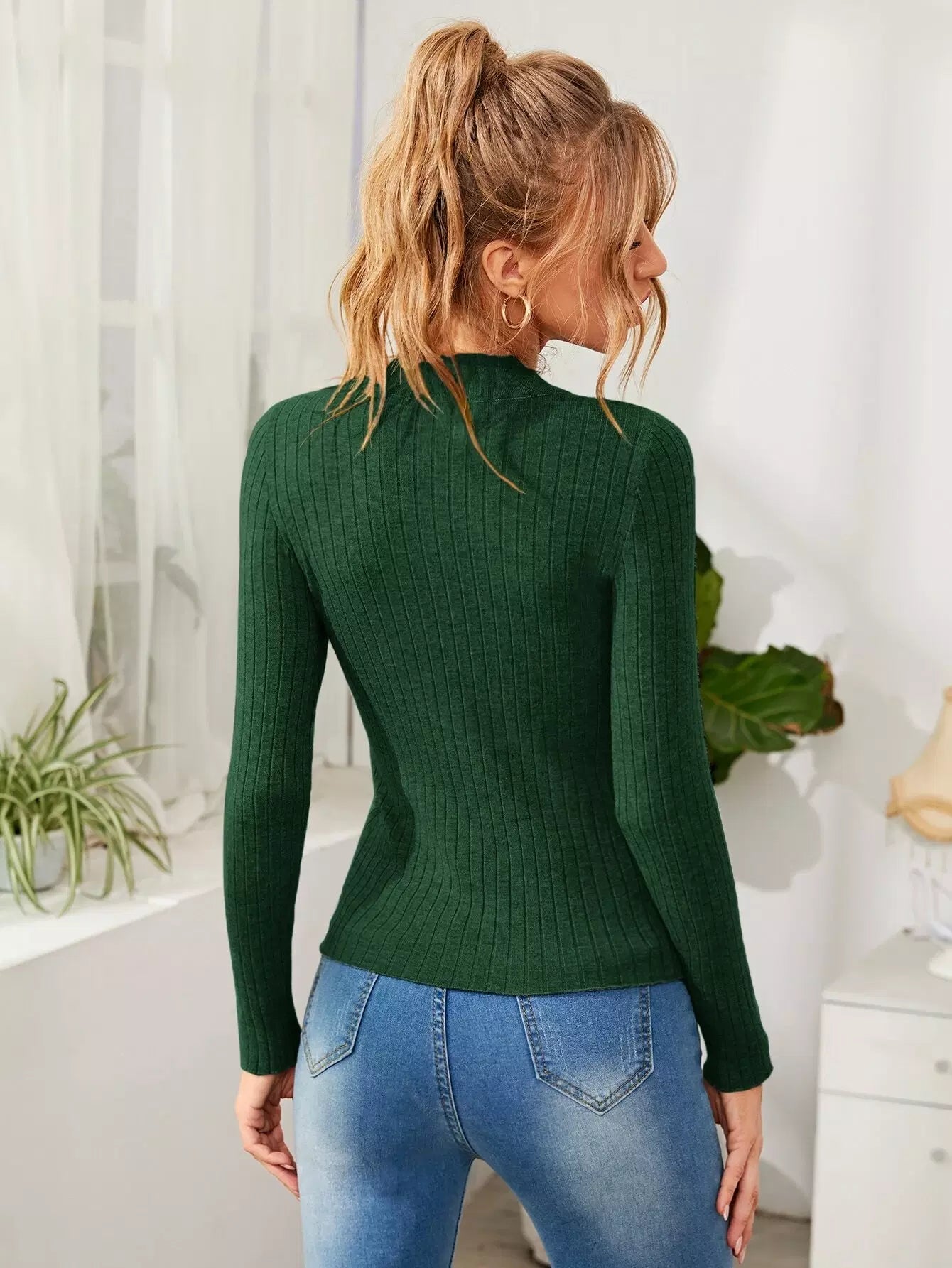 سترة سادة برقبة ضلع محبوكة على شكل ضلع محبوكة