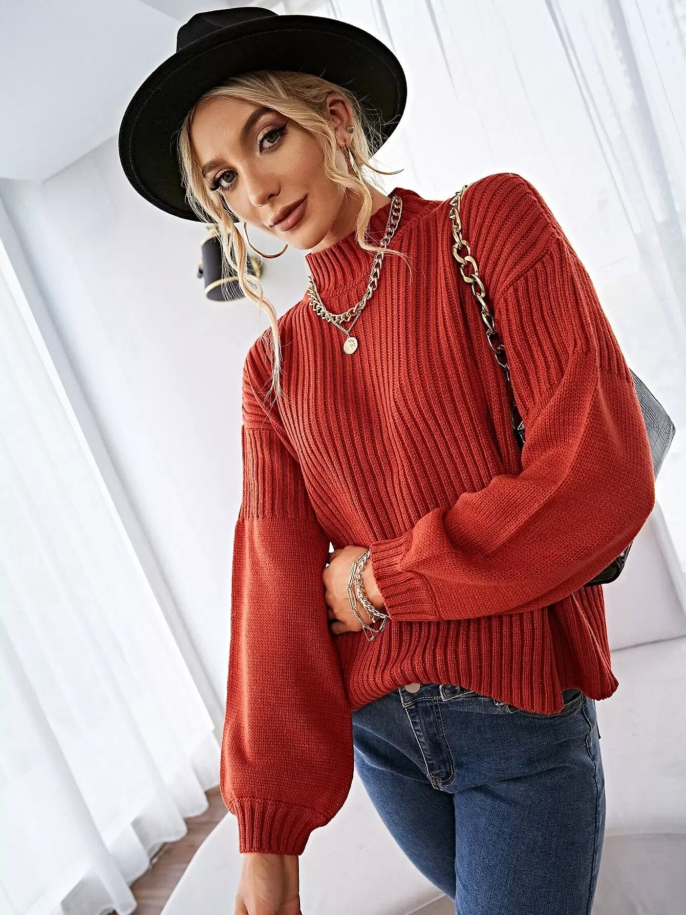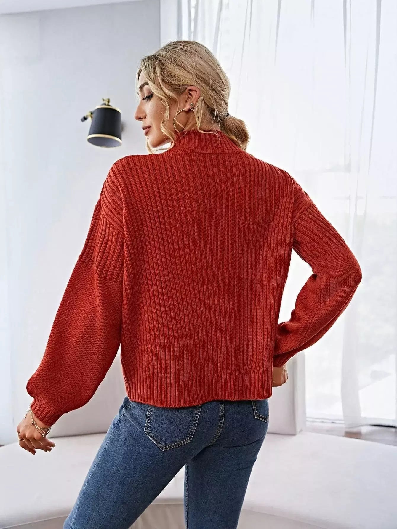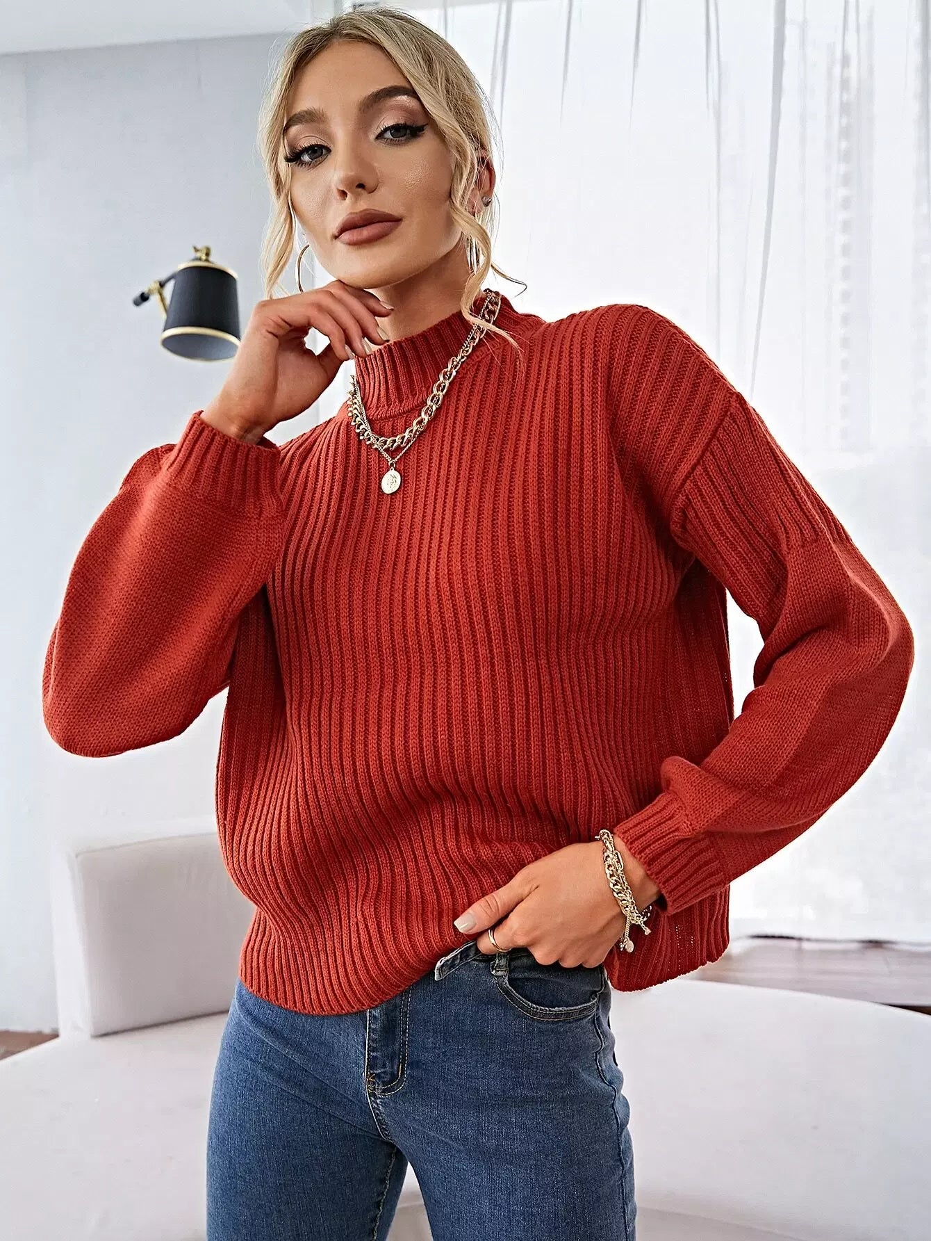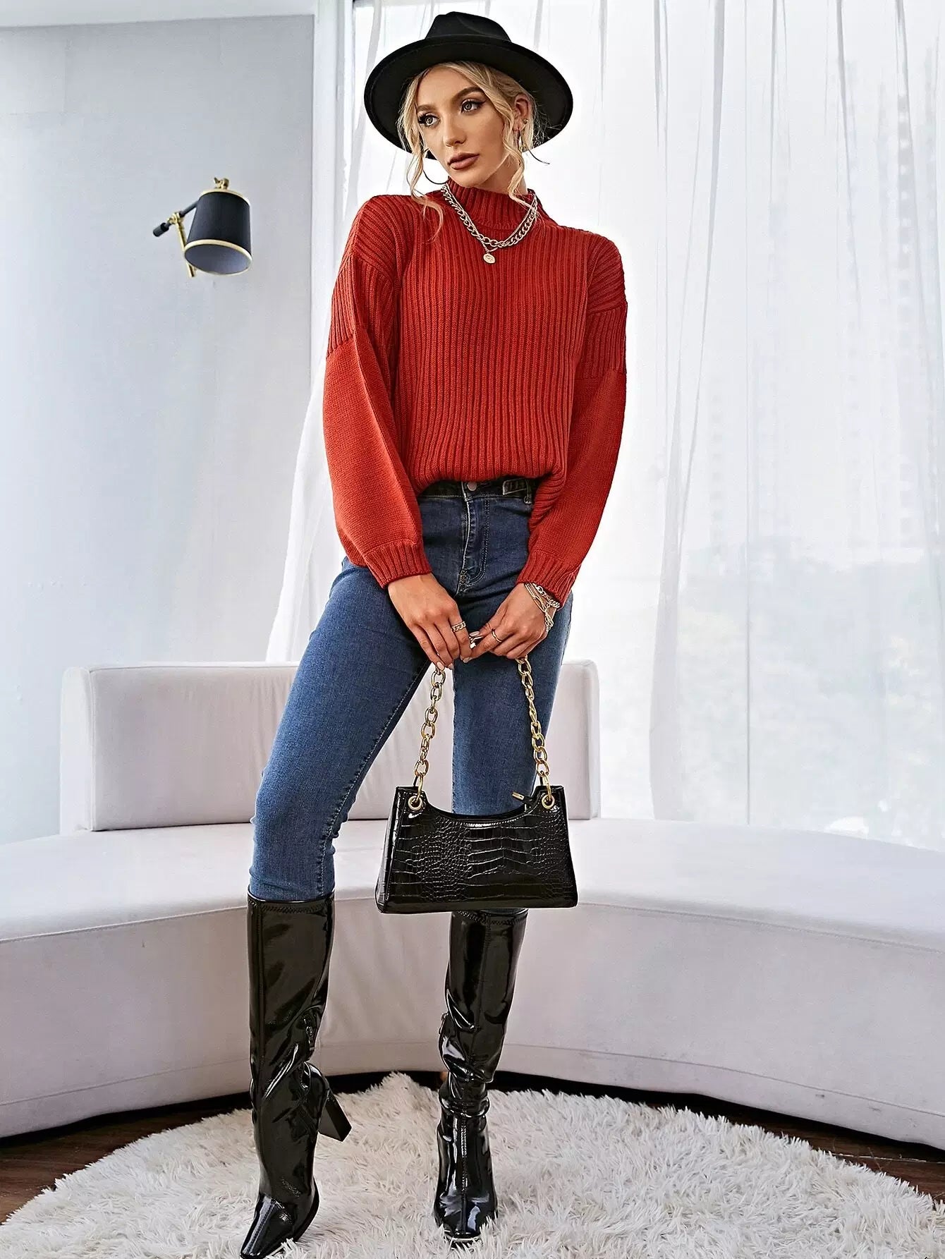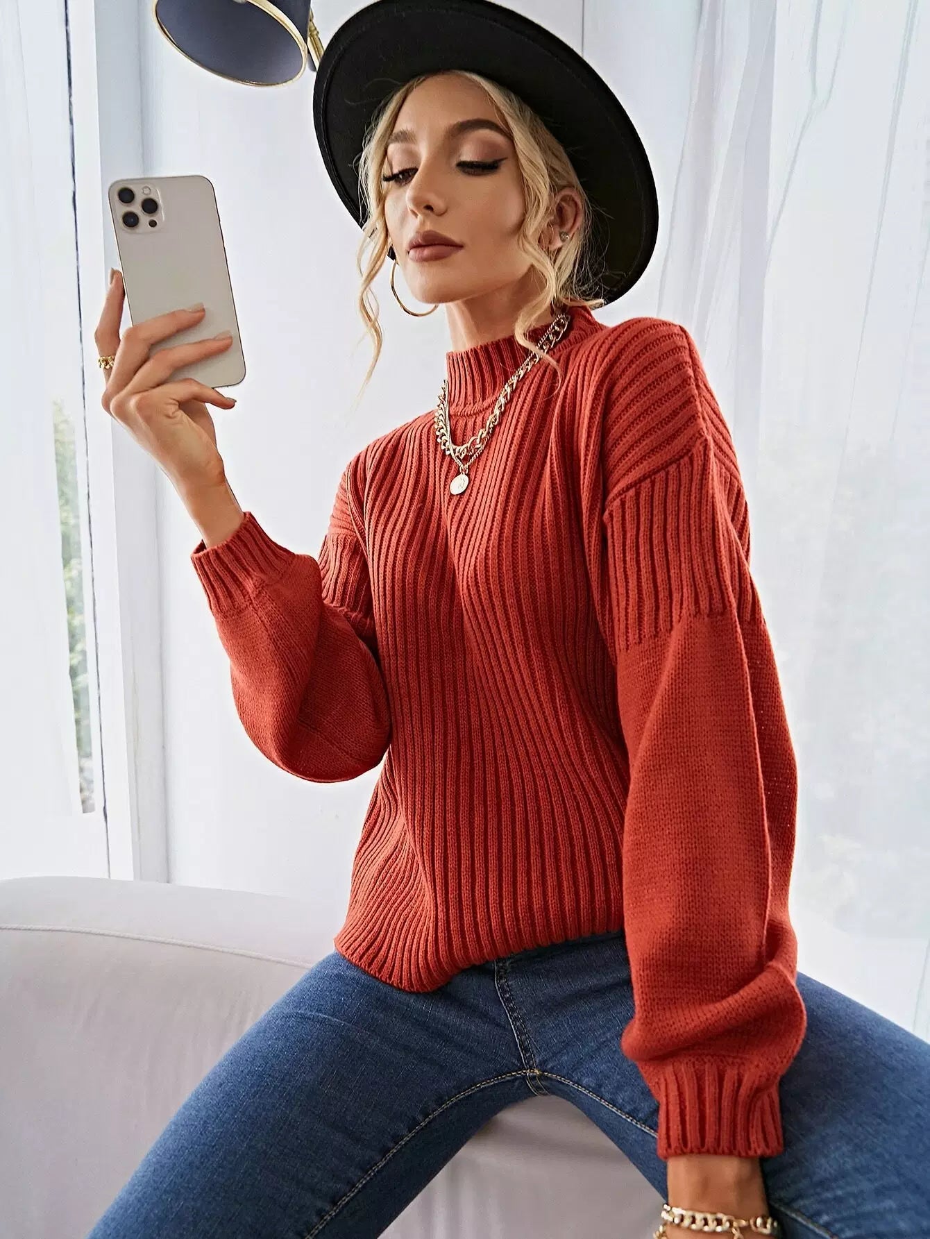 سترة برقبة جورب برقبة مضلعة محبوكة منسدلة الكتفين