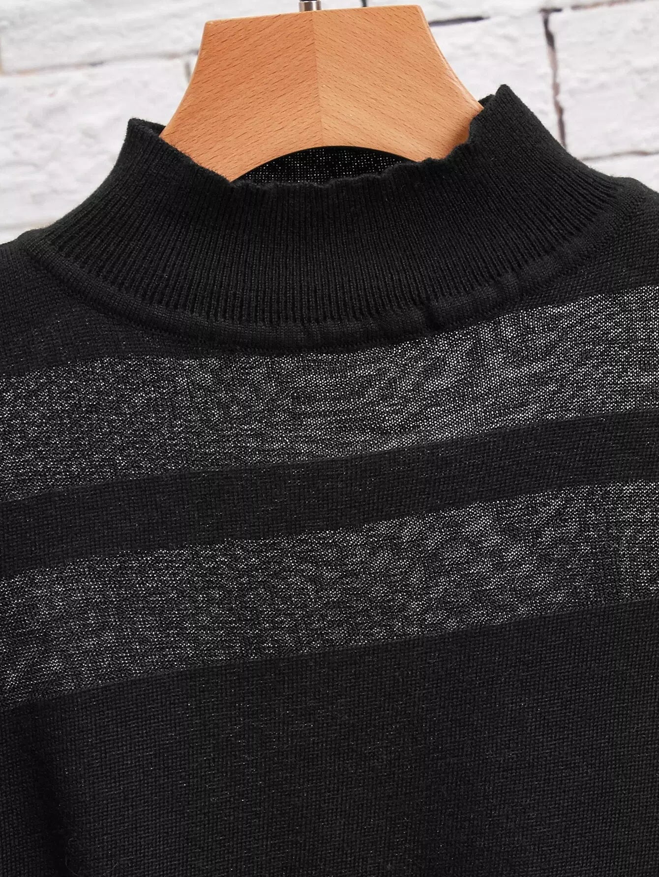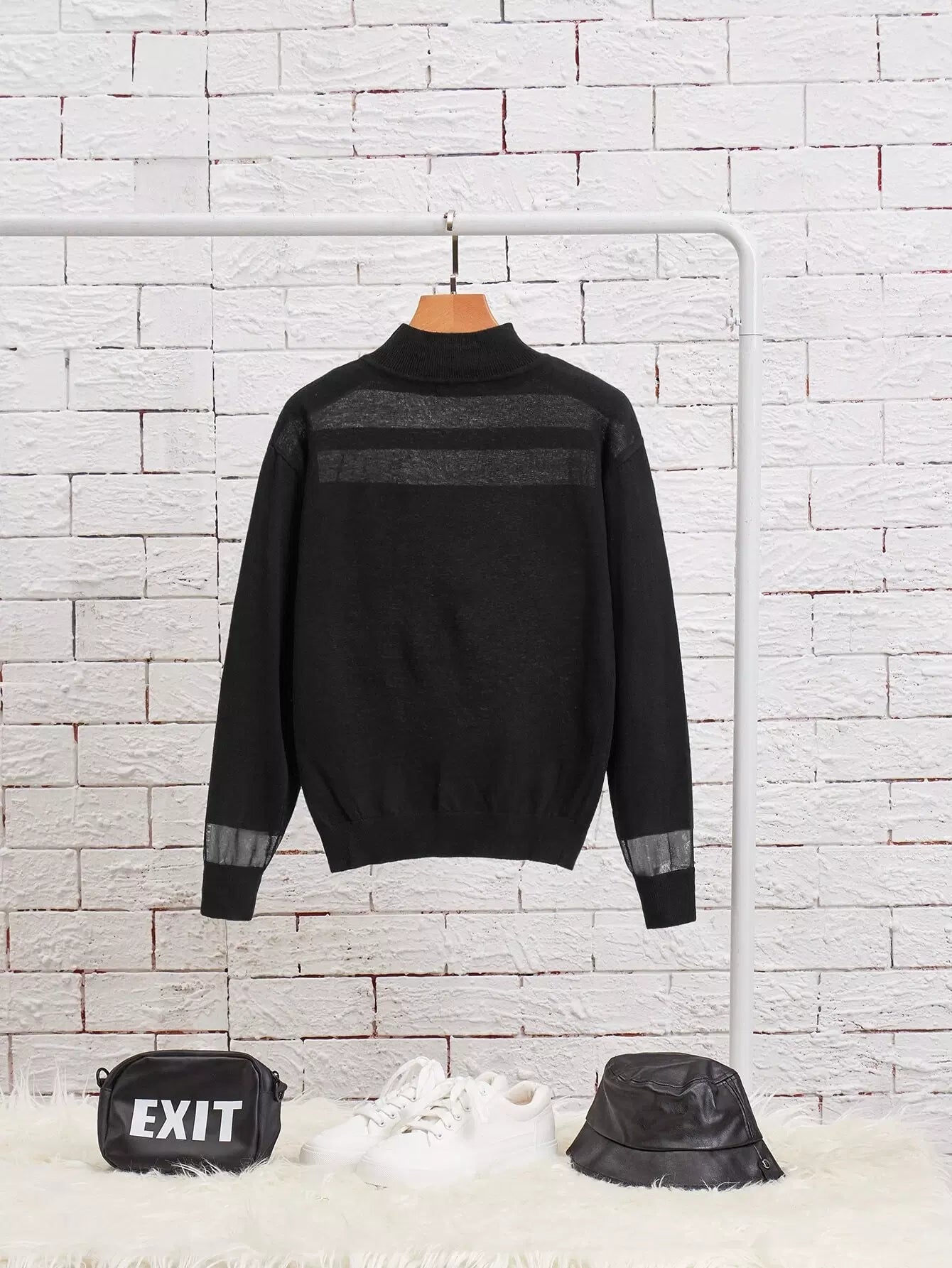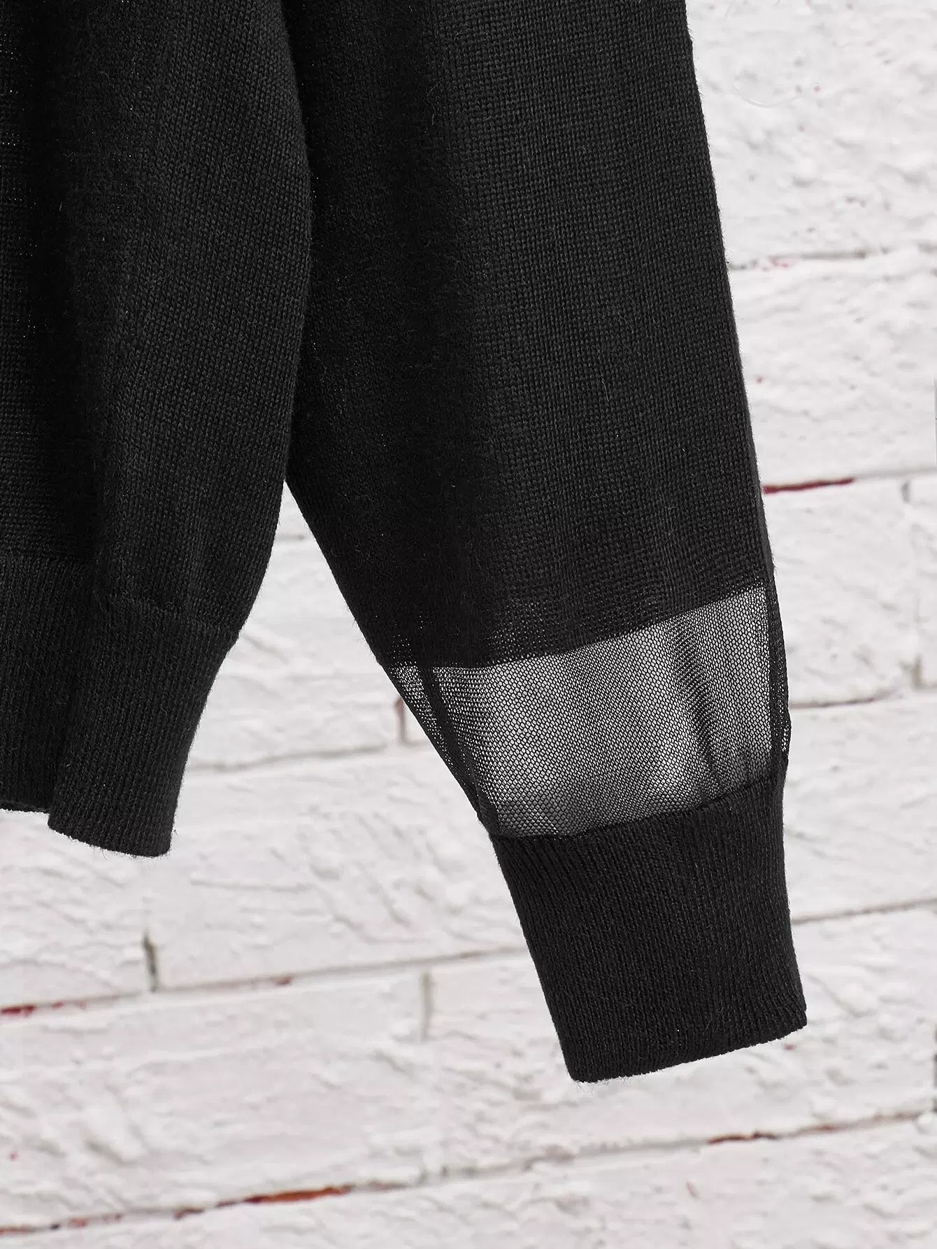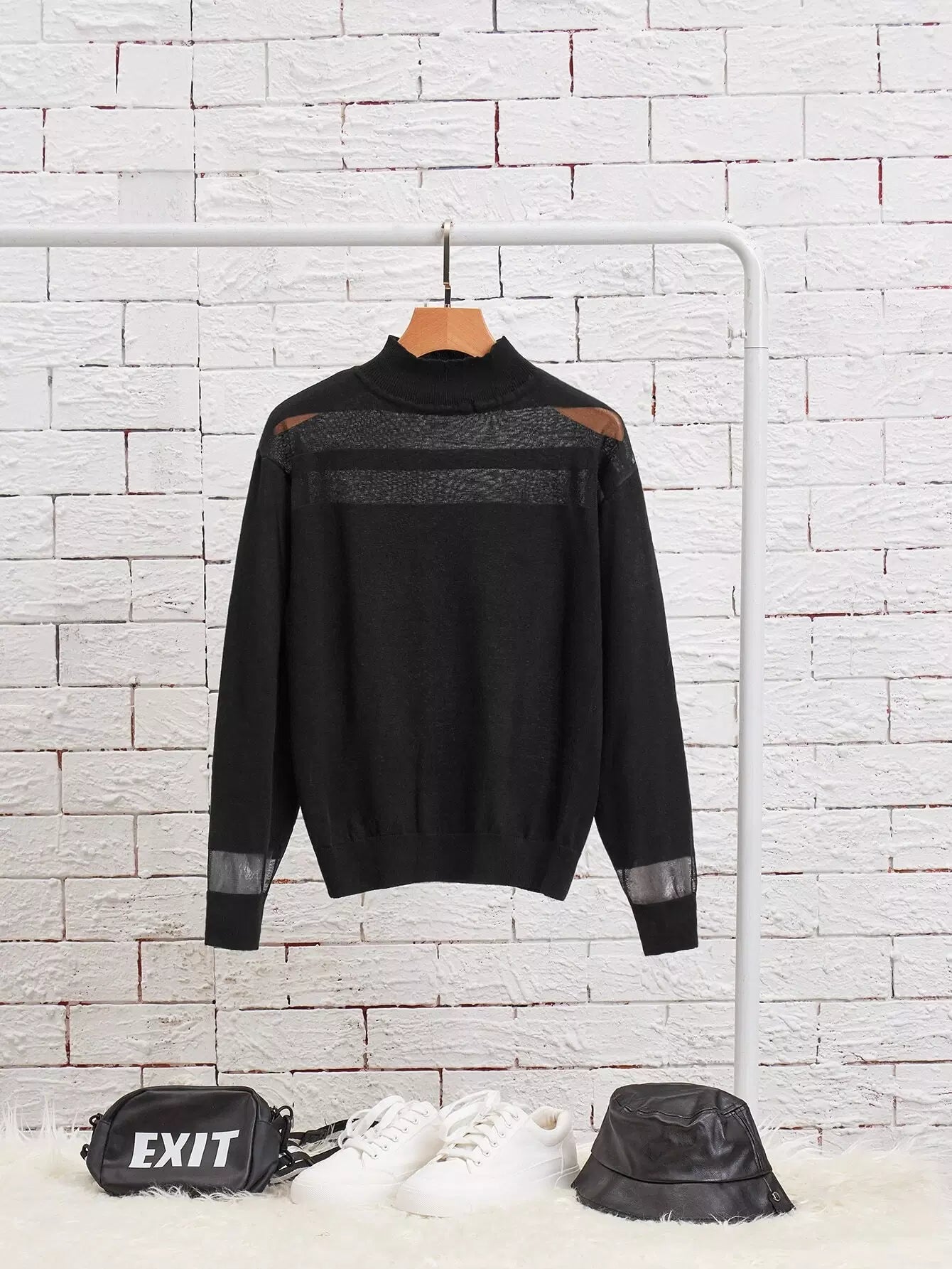 سترة برقبة جورب بفتحة رقبة شفافة، مغطاة بشبكة شفافة