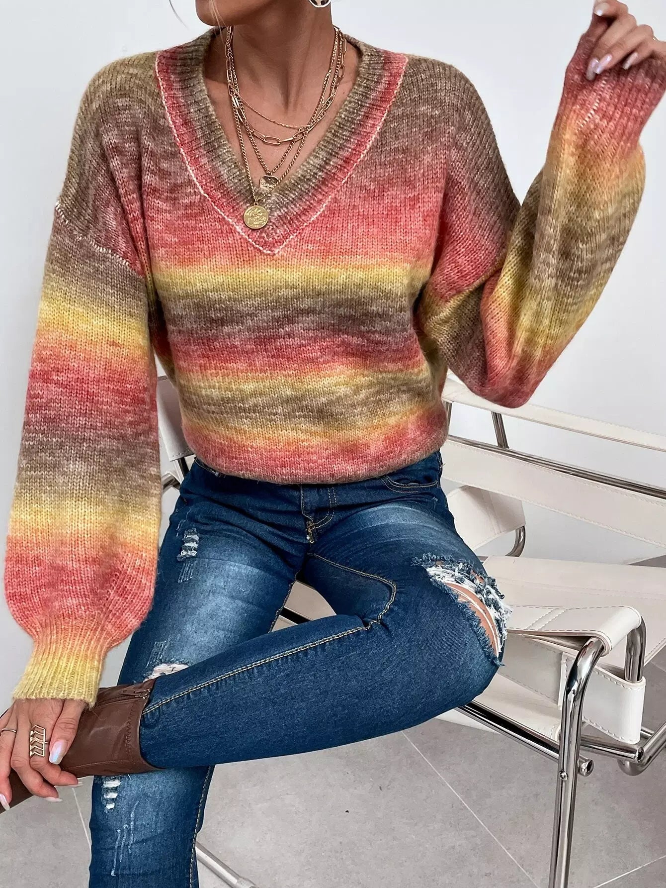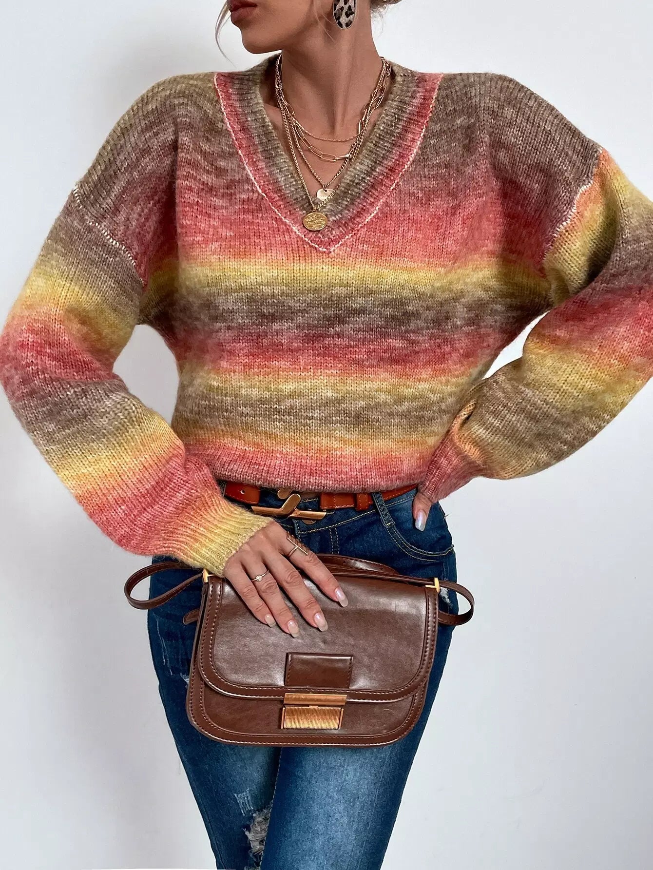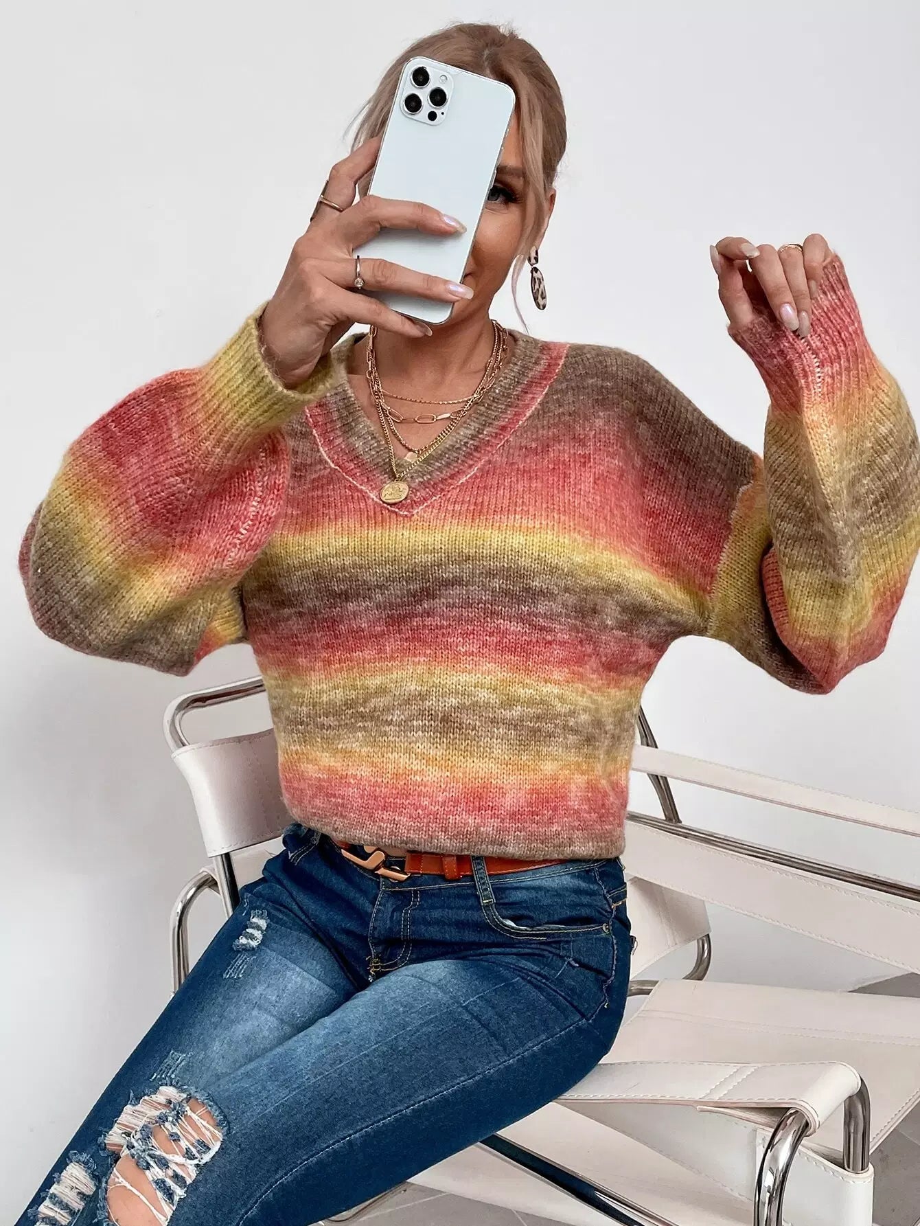 كنزة منسدلة الكتفين بياقة على شكل حرف V على شكل أومبير