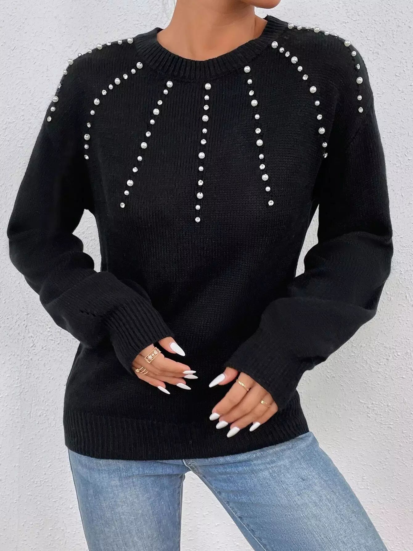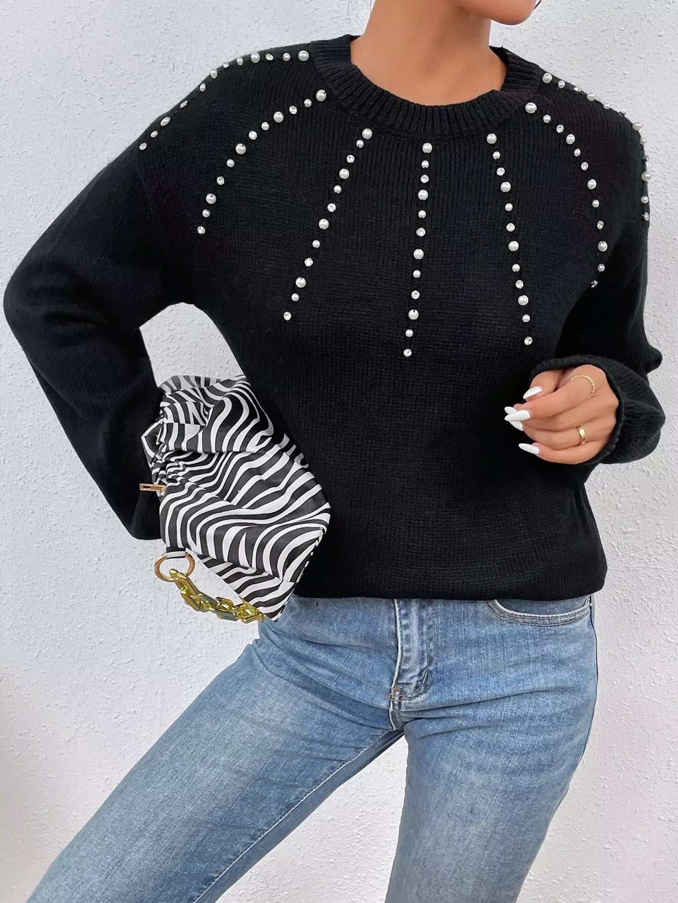 سترة منسدلة الأكتاف من اللؤلؤ