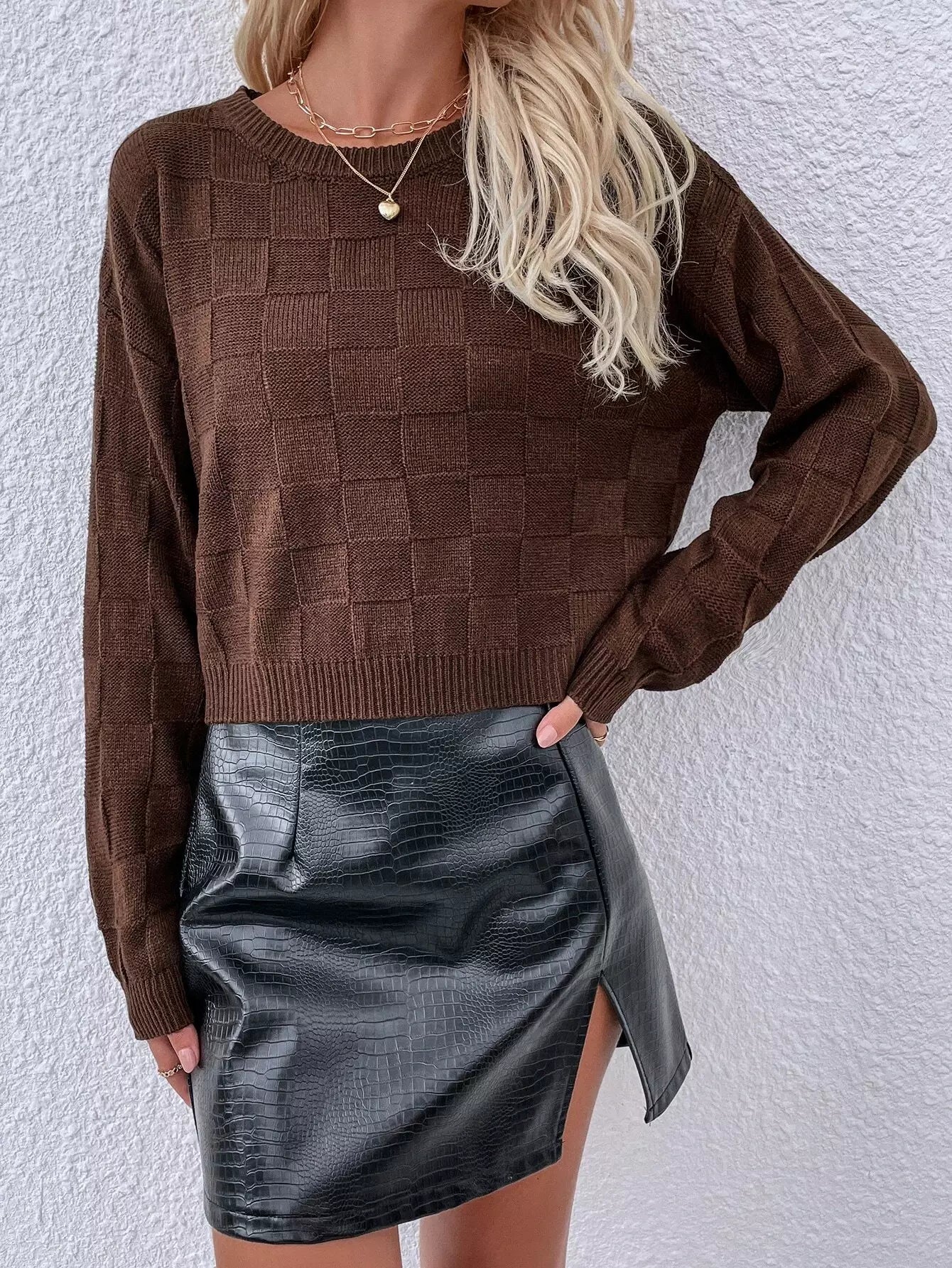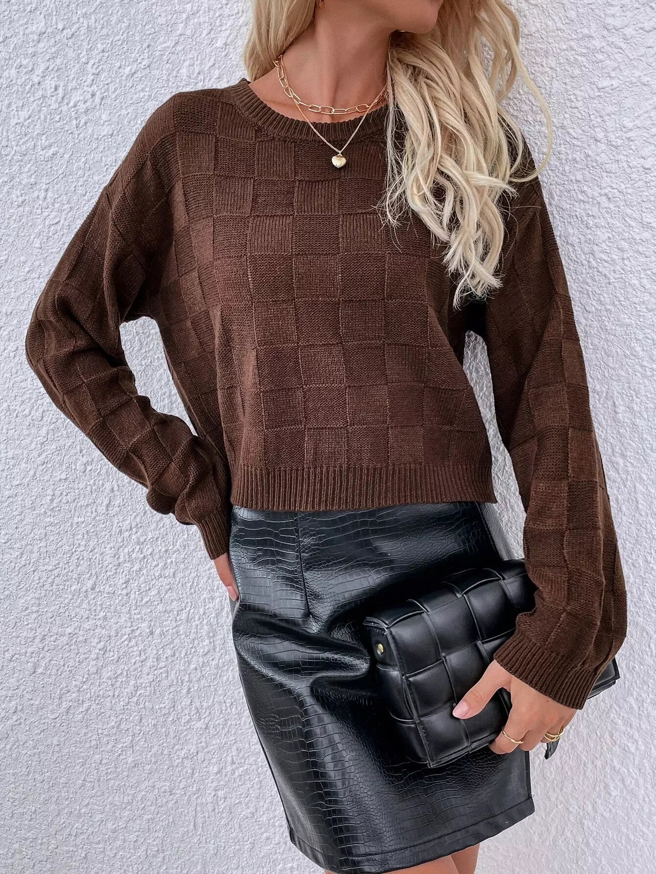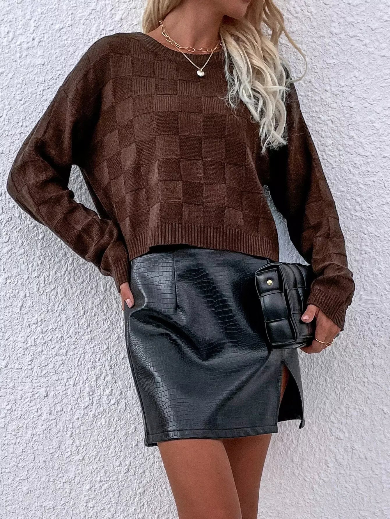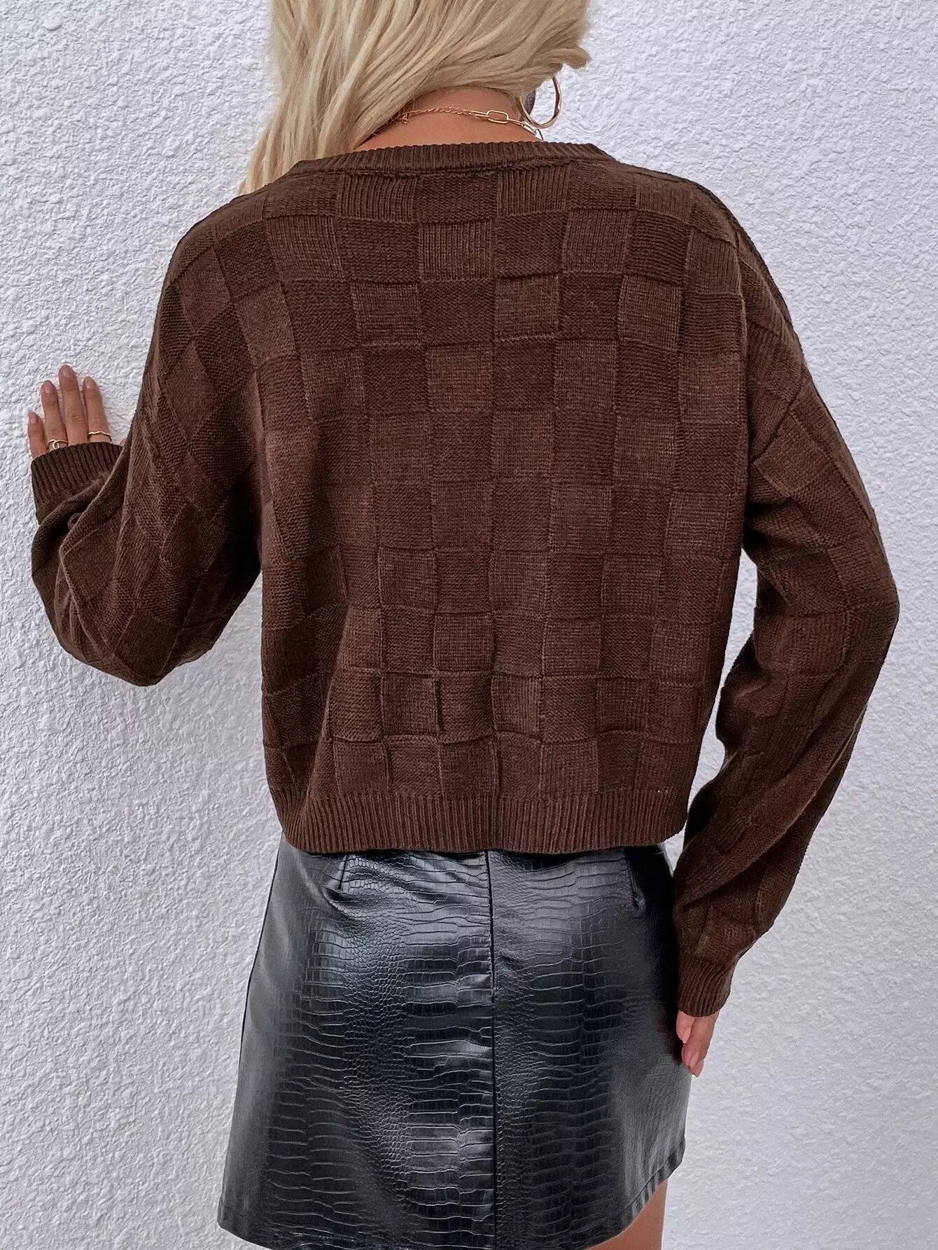 كنزة منقوشة منسدلة الكتفين منقوشة