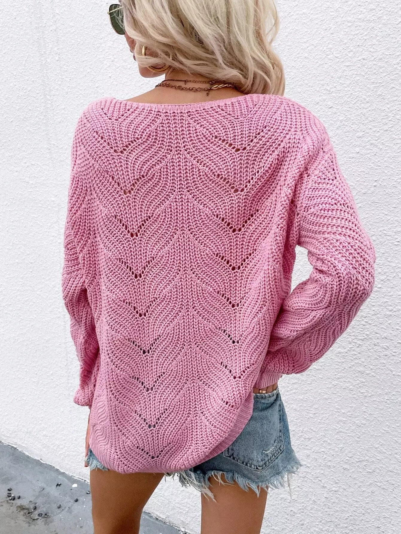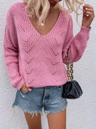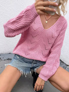 كنزة برقبة على شكل حرف V محبوكة على شكل بوينتيل