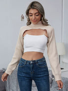 سترة قصيرة محبوكة على شكل ضلع محبوكة بدون قميص قصير