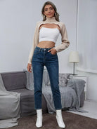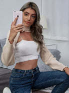 للنساء - سترة قصيرة متماسكة للغاية بدون قميص داخلي