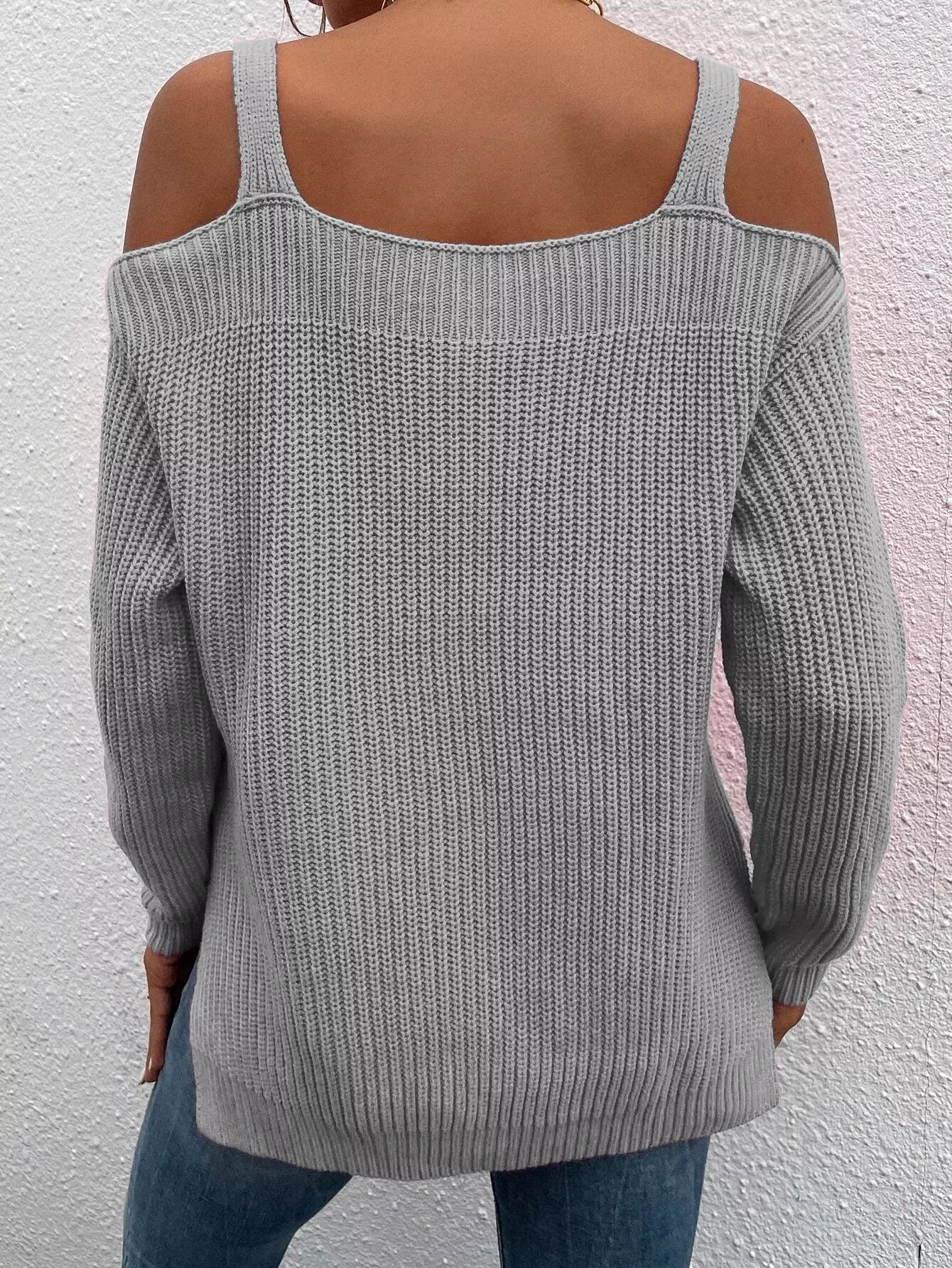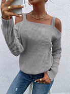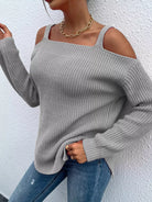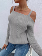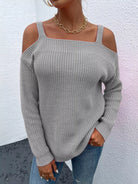 سترة ذات أكتاف باردة محبوكة مضلعة ومحبوكة على شكل ضلوع