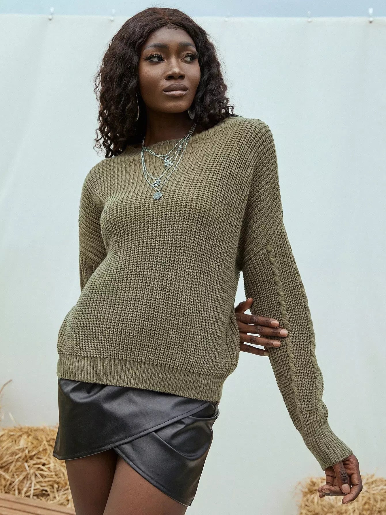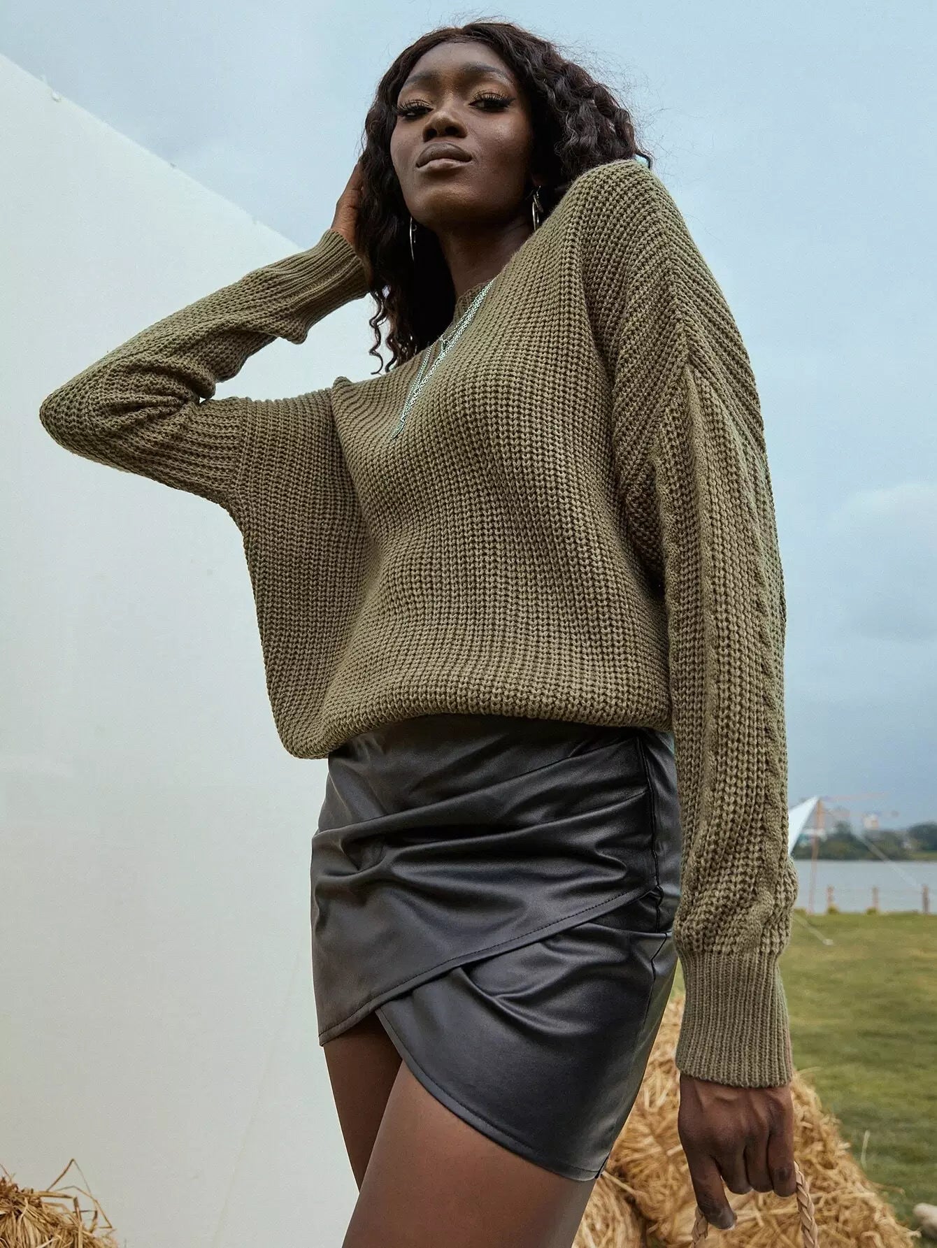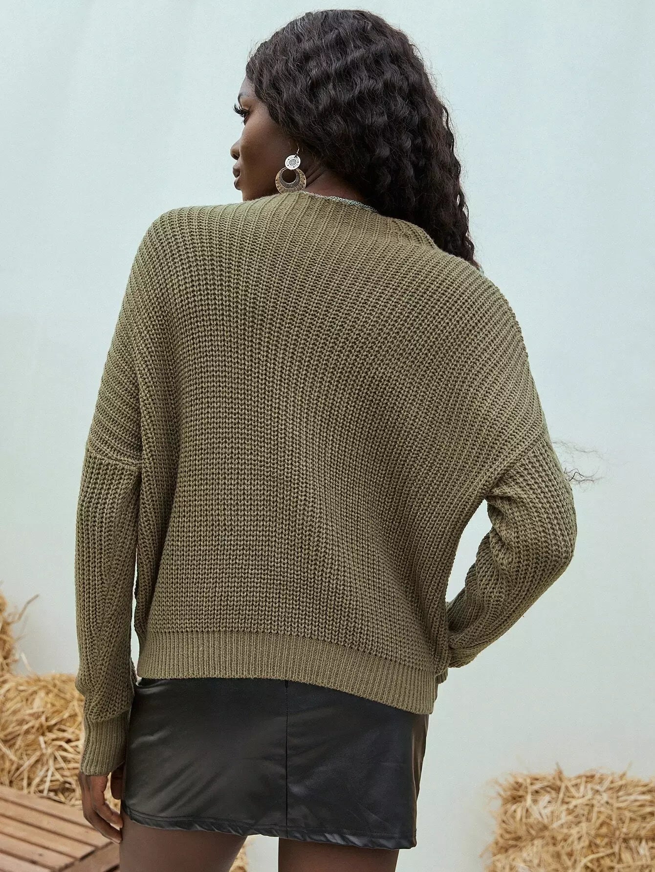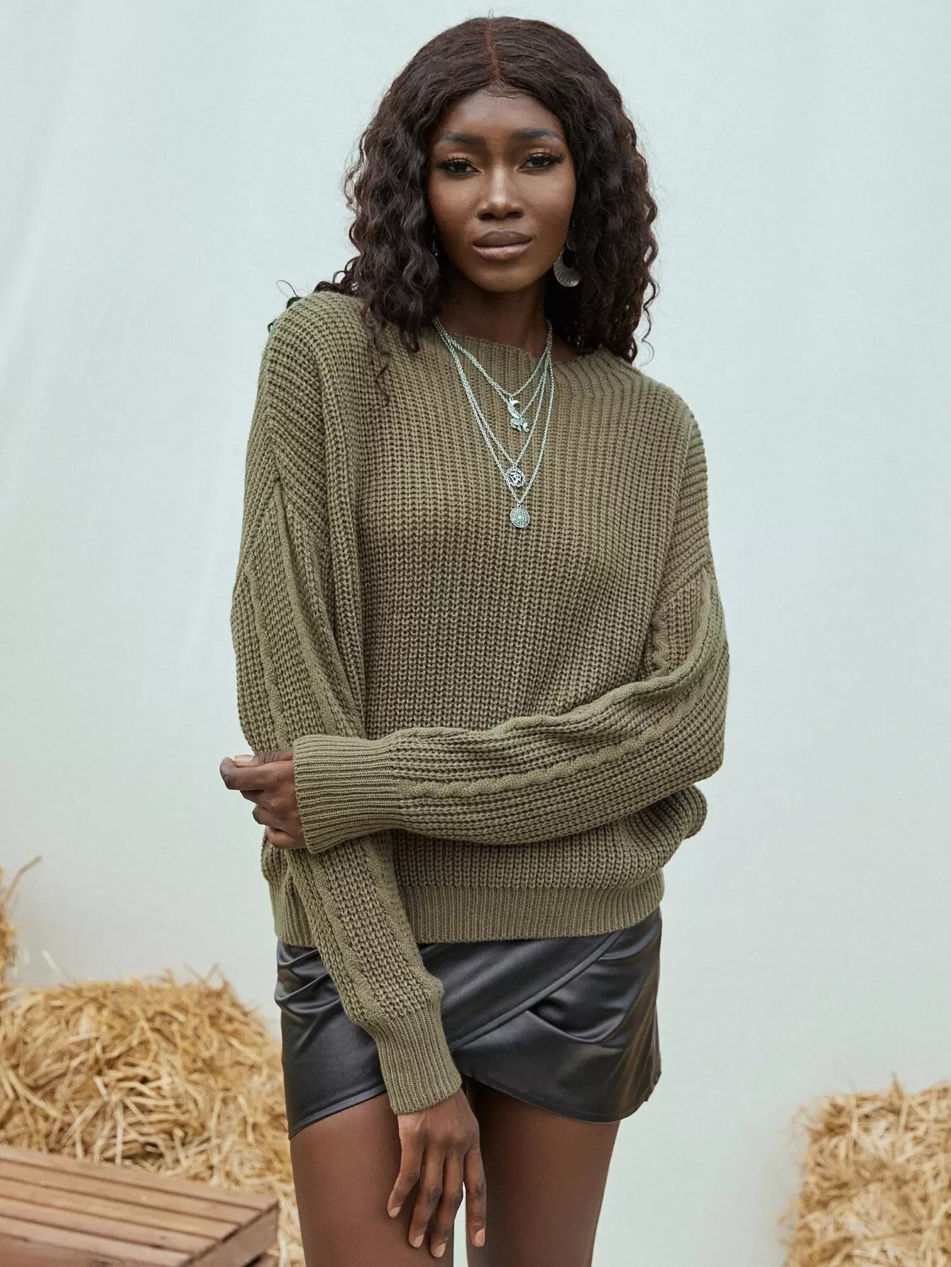 سترة مضلعة محبوكة منسدلة الكتف مضلعة