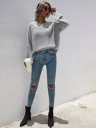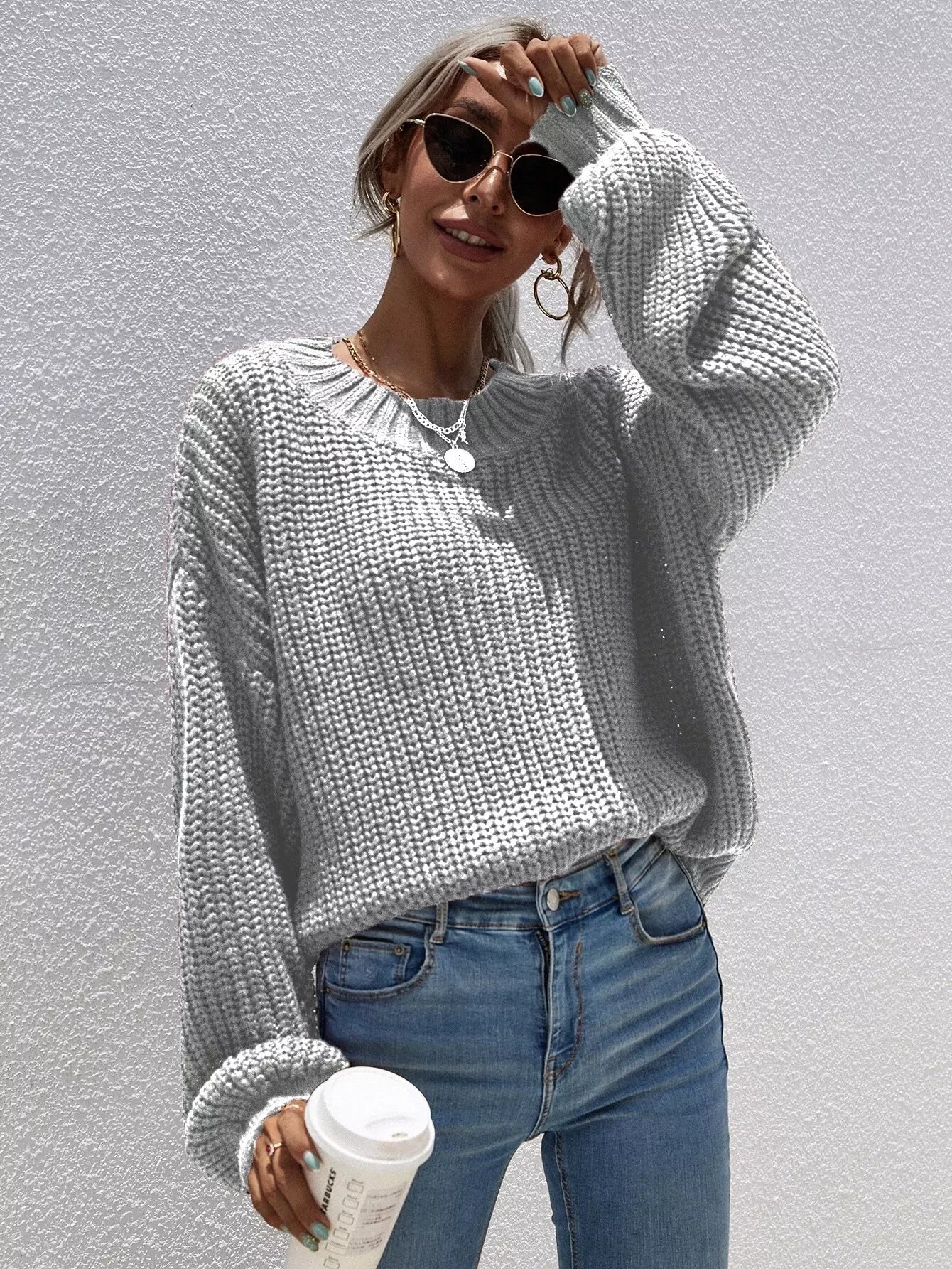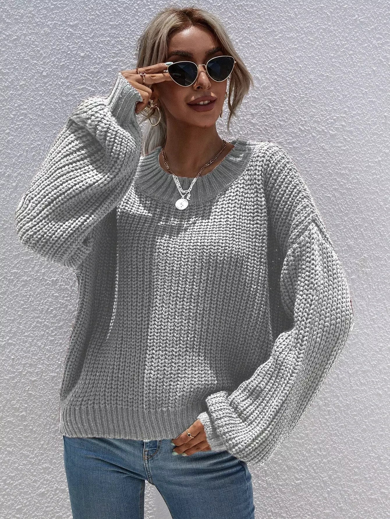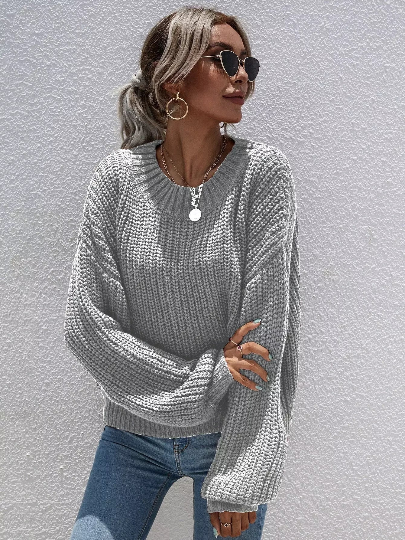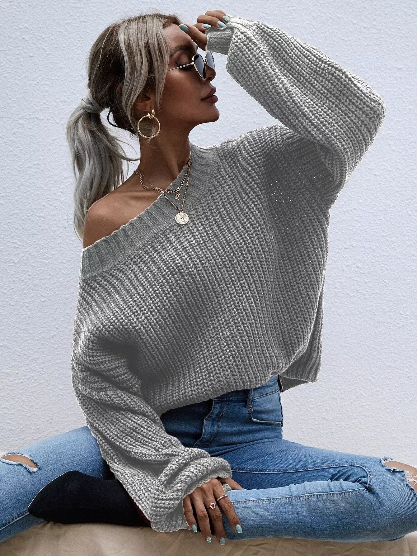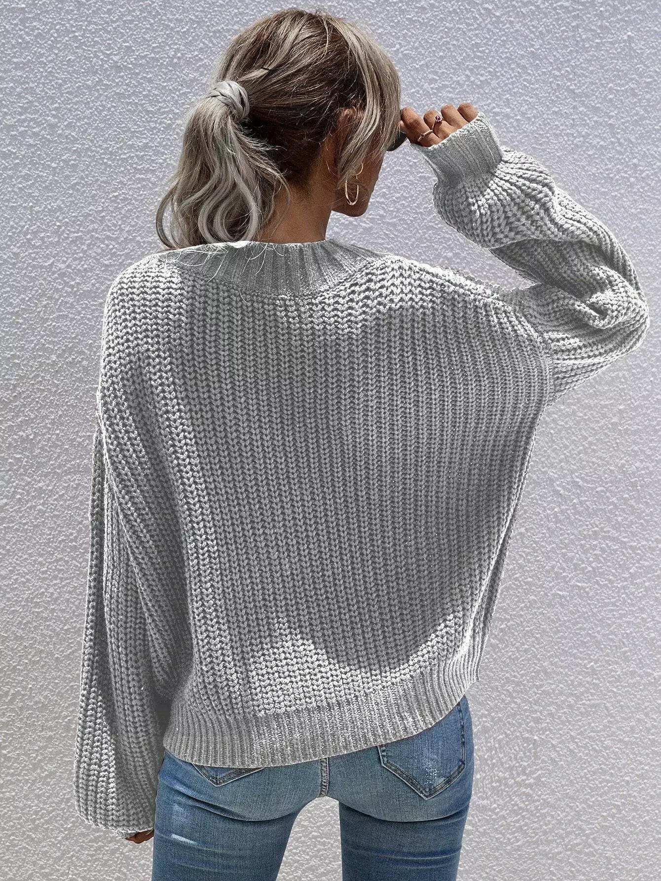 كنزة ذات أكمام مضلعة ذات أكتاف منسدلة بأكمام مضلعة
