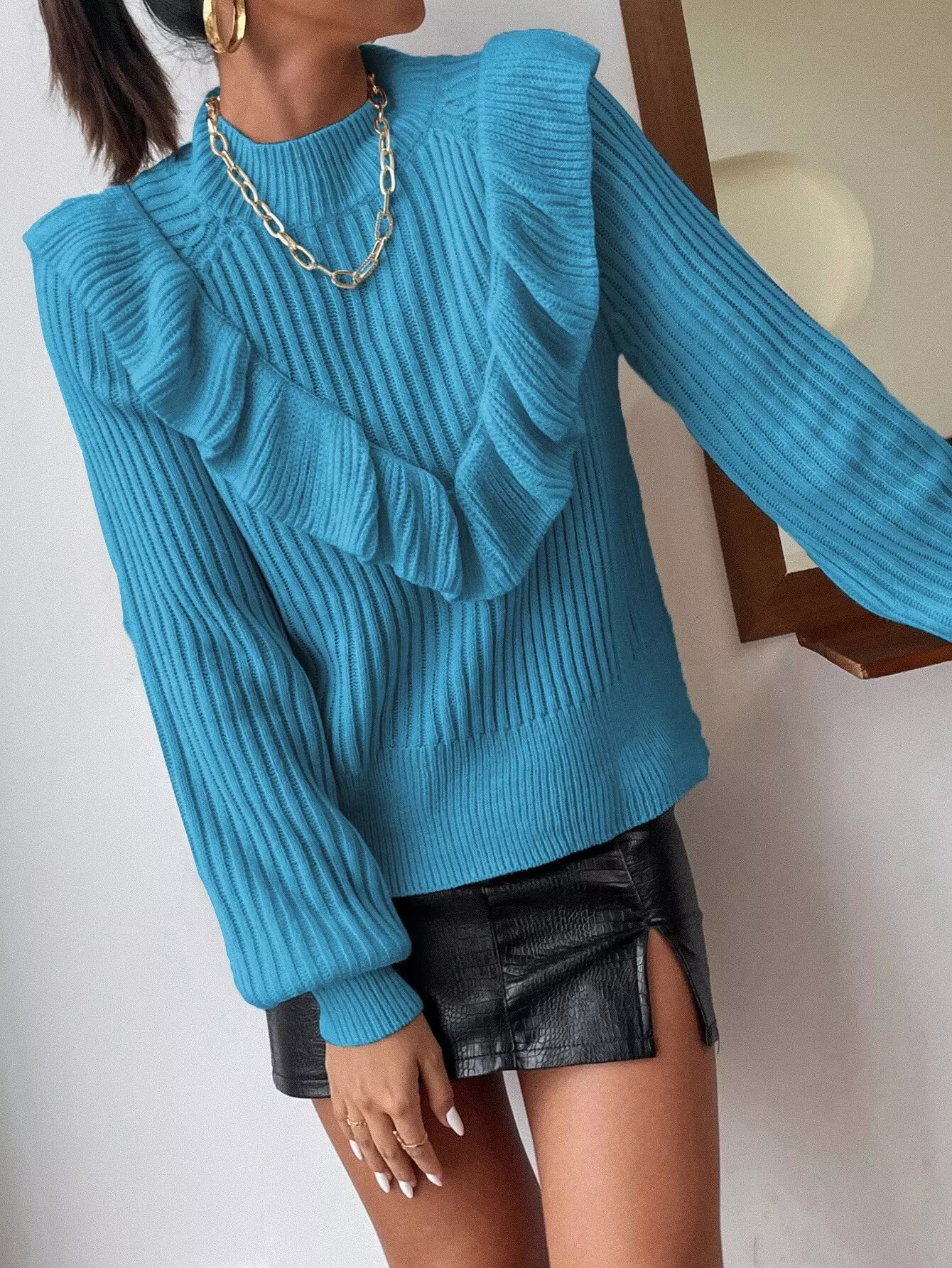 كنزة بحياكة مضلعة مكشكشة مضلعة
