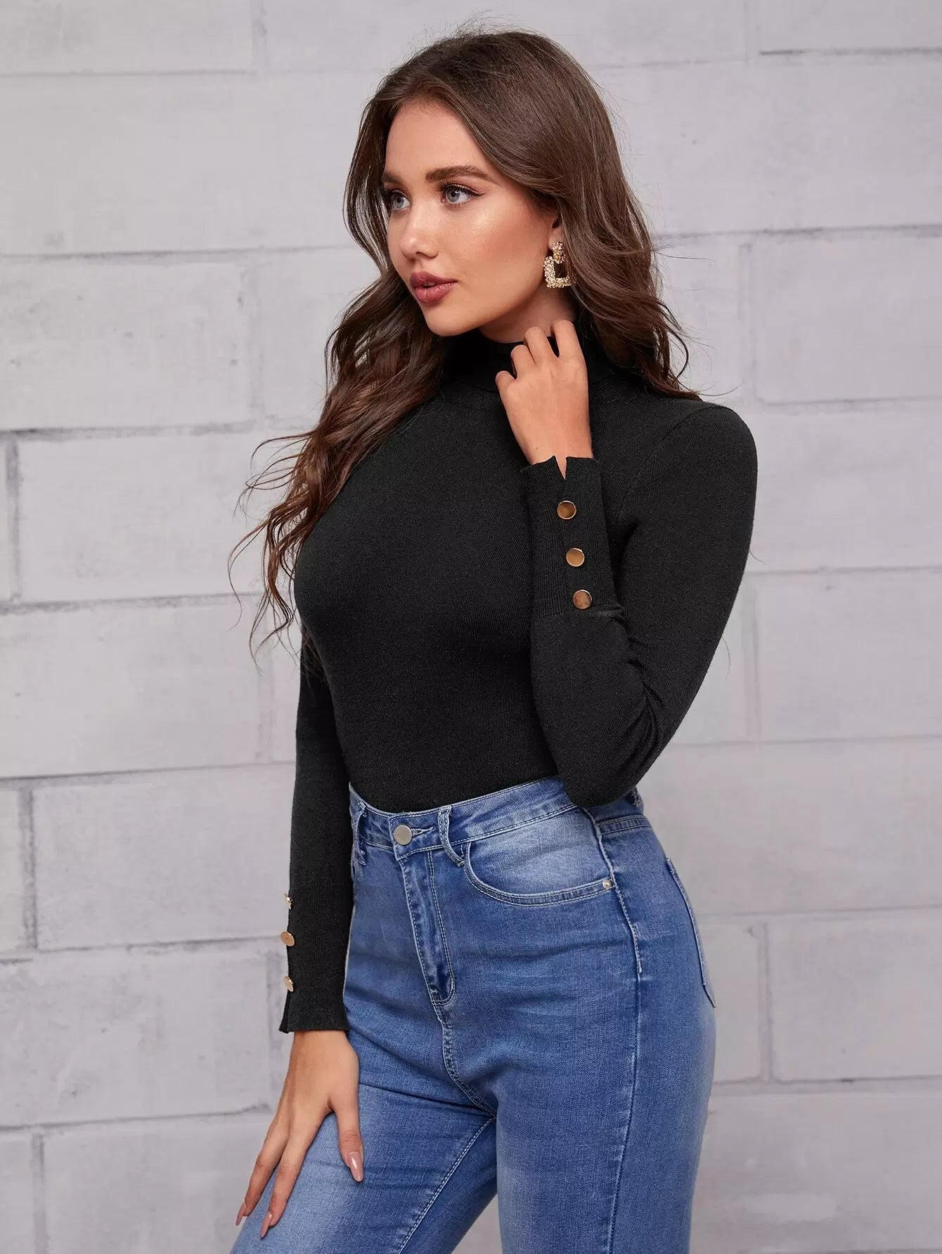 سترة سادة برقبة ملفوفة برقبة ملفوفة
