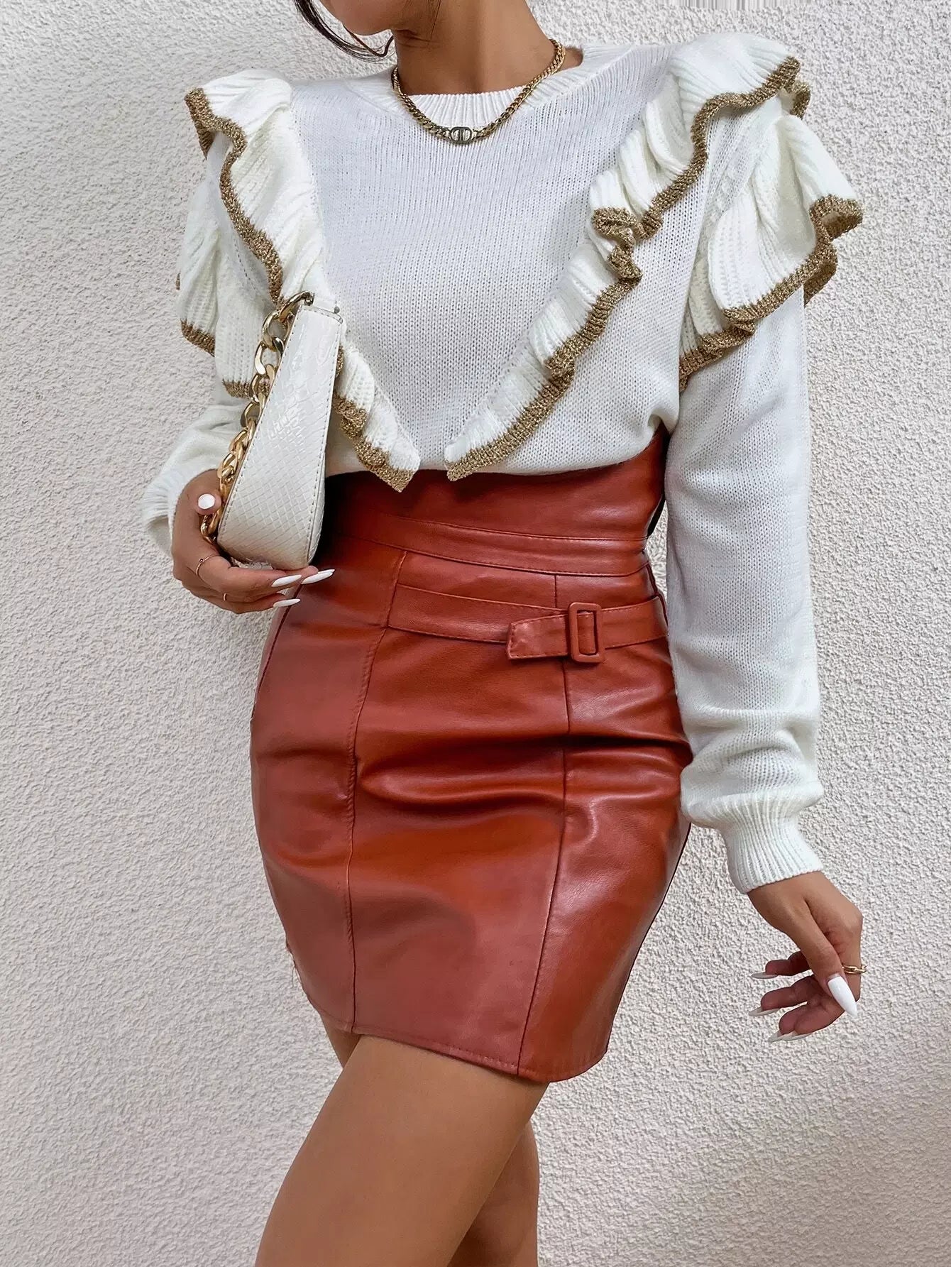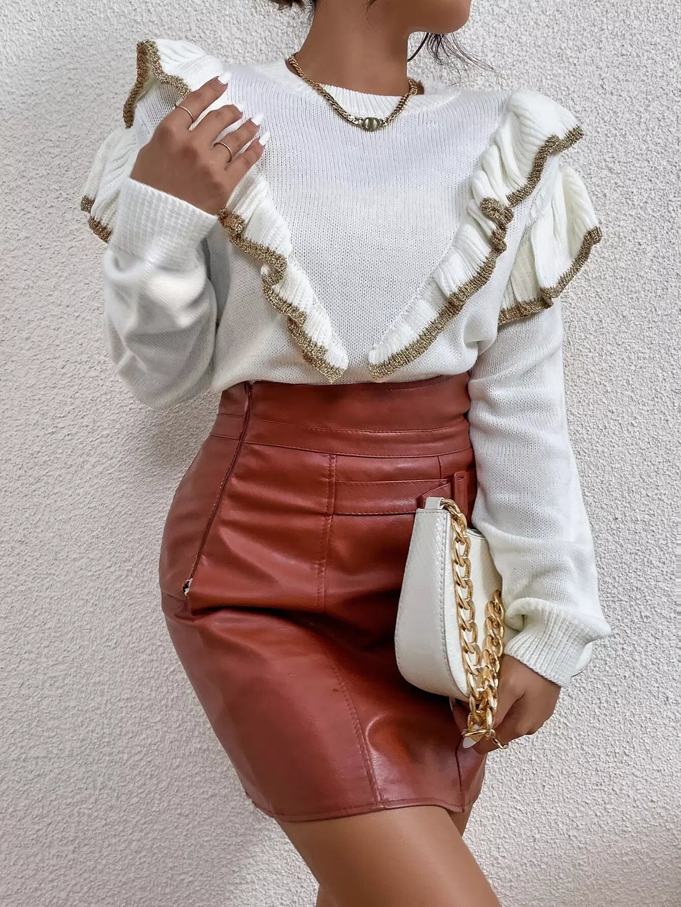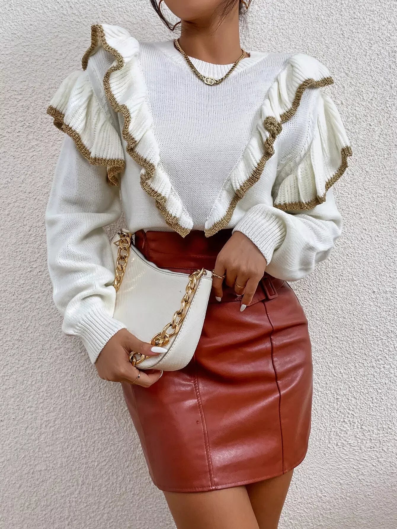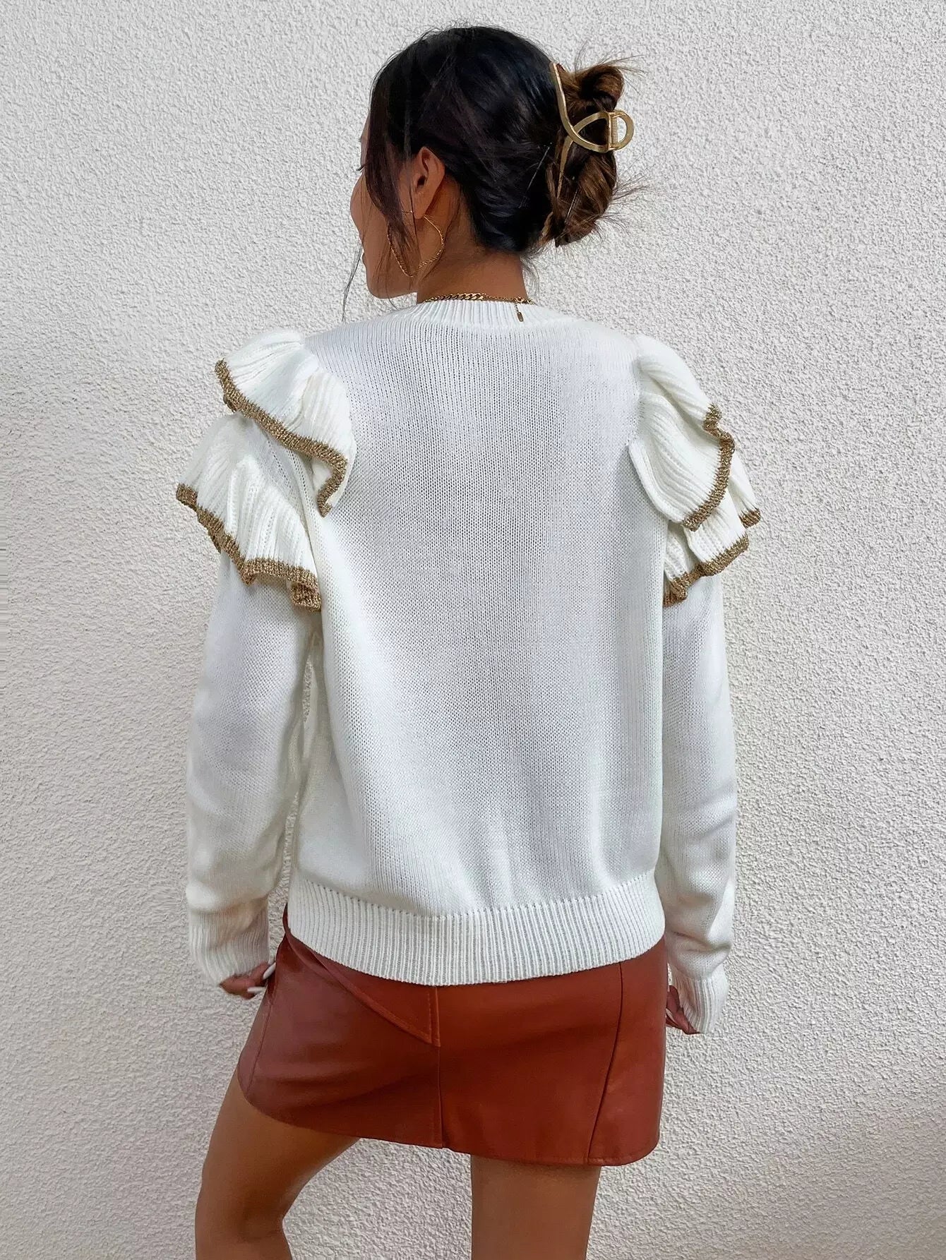 سترة بحواف مكشكشة محبوكة على شكل ضلع مكشكش