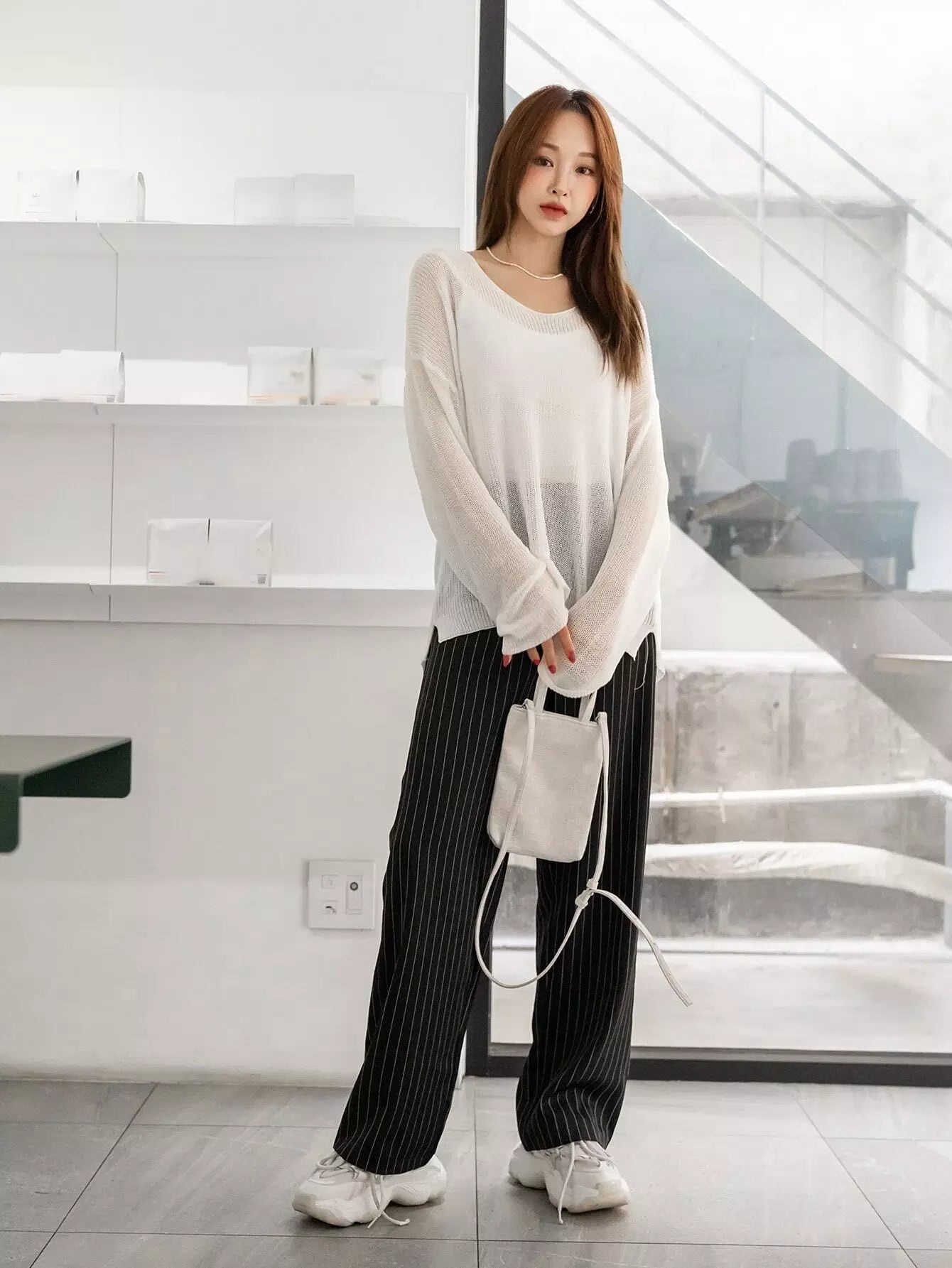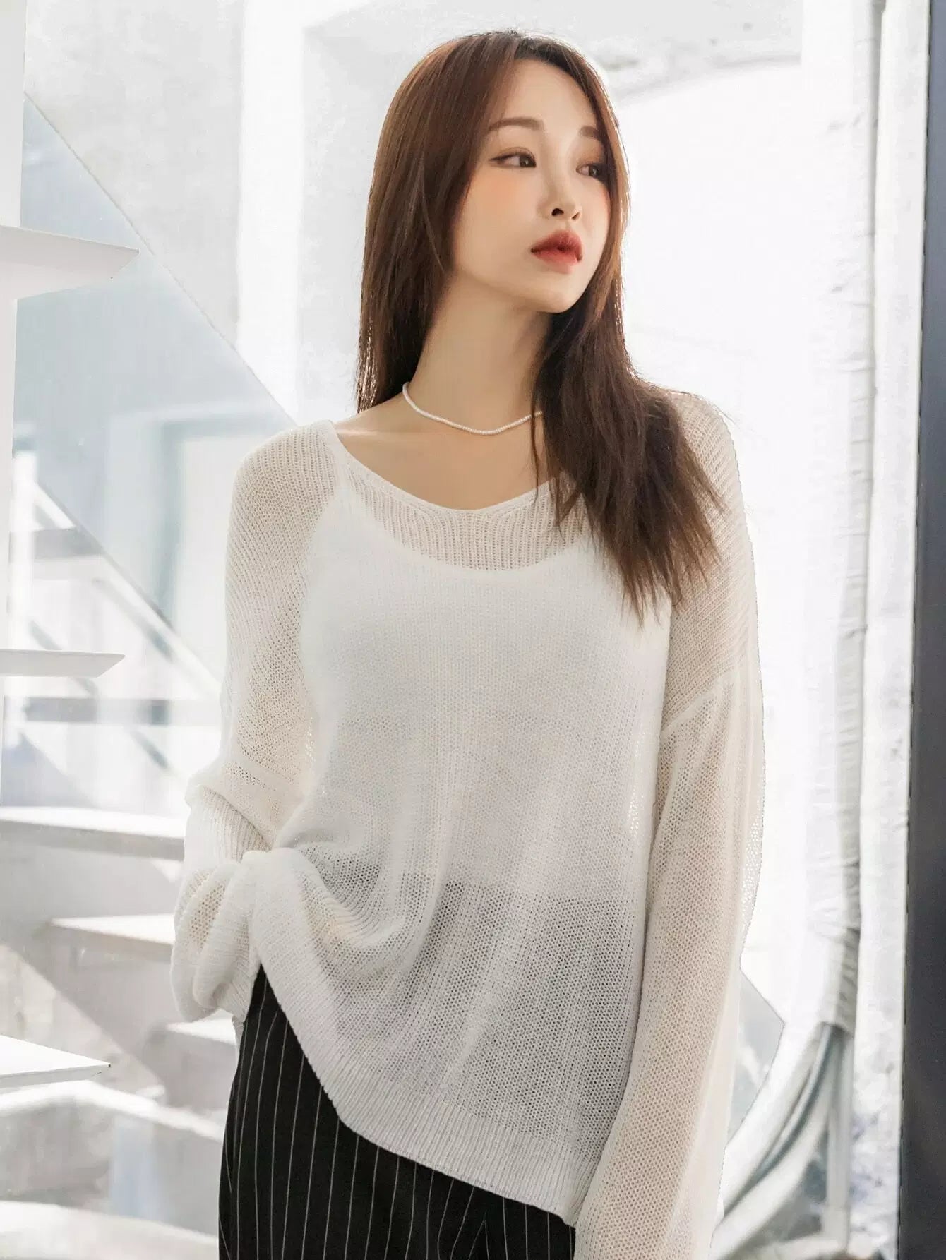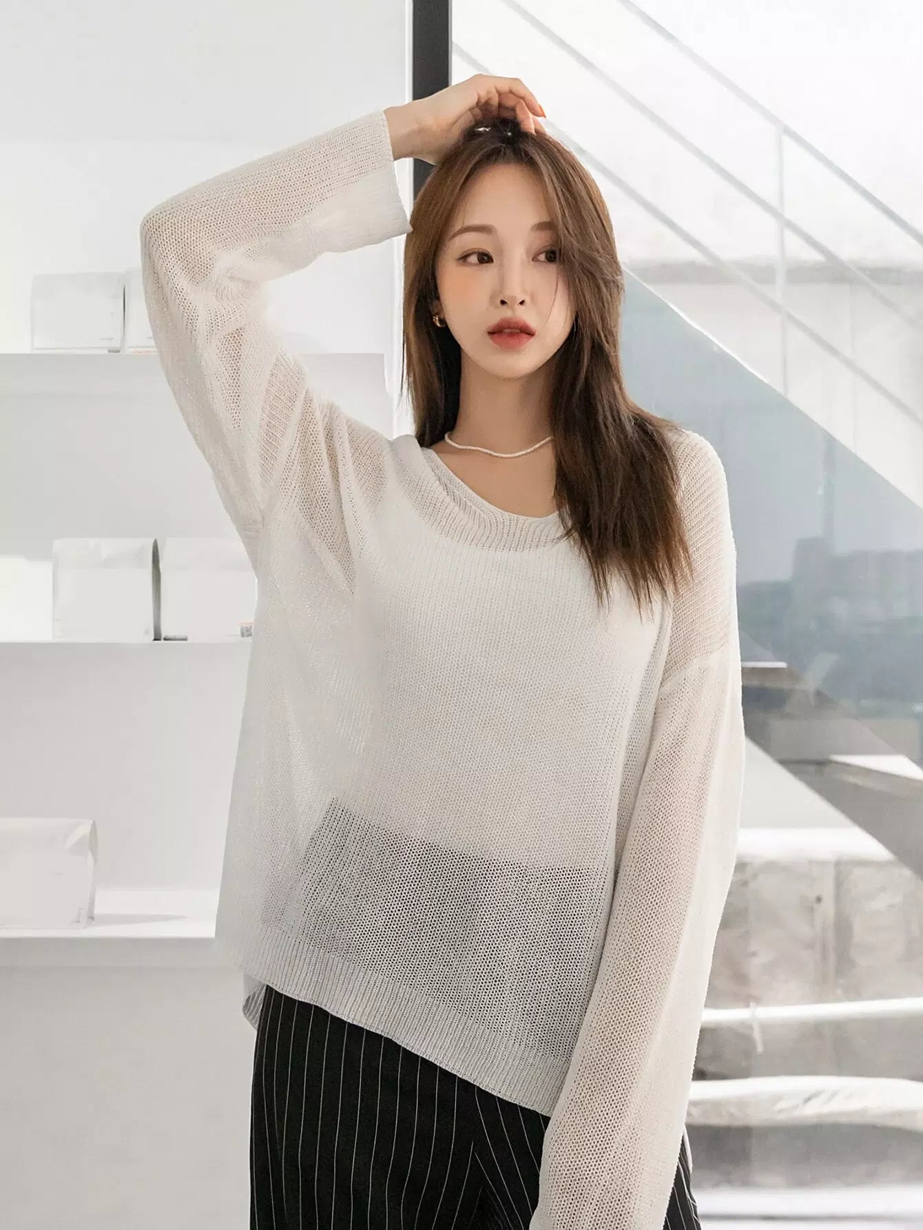 سترة شفافة محبوكة مضلعة مضلعة كبيرة الحجم