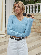 سترة سادة محبوكة بكابل محبوكة قصيرة