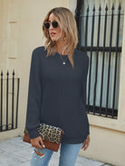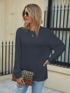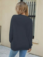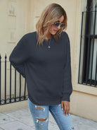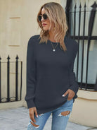 كنزة سادة بياقة كرو برقبة طويلة أكمام طويلة ضبابية